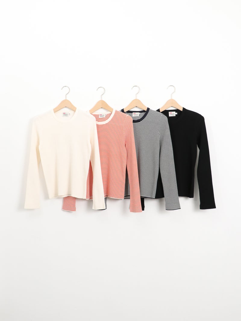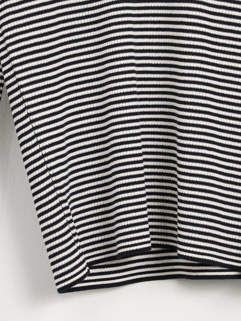 伸縮性のあるコンパクトなシルエットのクルーネックプルオーバーニット、BORNEMOUTH(ボーンマス)。 細番手のコットン糸を丁寧に編み上げたこちらのニットは、カジュアルなデニムから、キレイ目なウールパンツまで、どんなスタイルでもキマる、着る人を選ばない万能ニットです。天然素材ならではのナチュラルさと、清涼感のあるドライなタッチを併せ持つ夏に最適なニットです。総針と呼ばれる目の詰まった編み方なので、伸縮性もありながら伸びだれしにくい便利な一着です。ご家庭での手洗いも可能です。