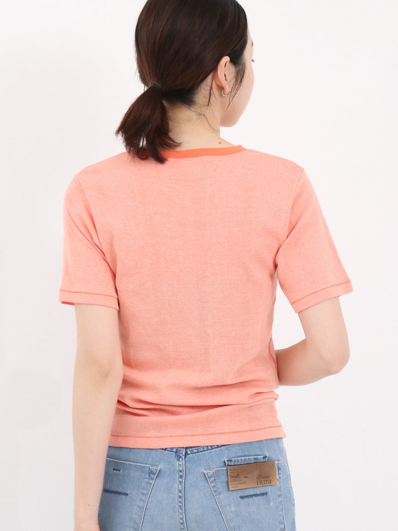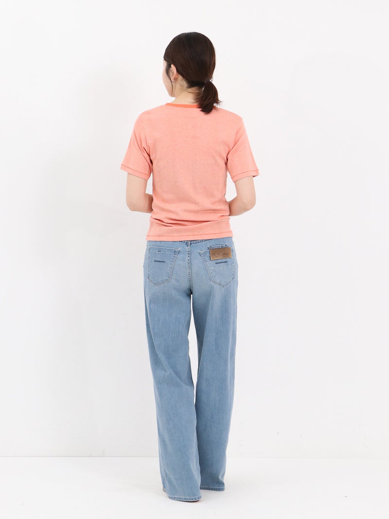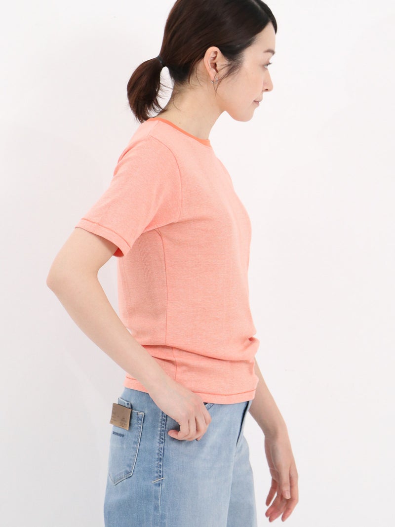 やわらかな着心地が魅力のMILLERのパネルリブTシャツ。 独自の針抜き仕様によるリブ編みで、伸縮性に優れた快適なフィット感を実現します。コンパクトなクルーネックとすっきりとしたシルエットで、一枚でもインナーとしても使いやすいデザイン。カーディガンやシャツとのレイヤードにも馴染み、デイリーに活躍する定番アイテムです。