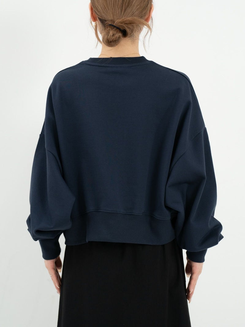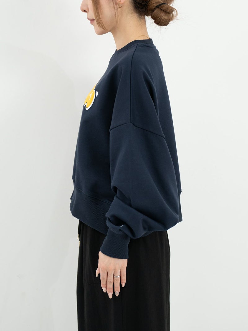コーマ糸を使用したきれい目でしっかり度目の詰まった裏毛プルオーバー。 ゆったりとした身幅とクロップド丈で、こなれ感のあるシルエット。胸元には今季のテーマ「Trip,Travel,Journey」をイメージしたグラフィック。デイリーに使いやすいアイテムです。