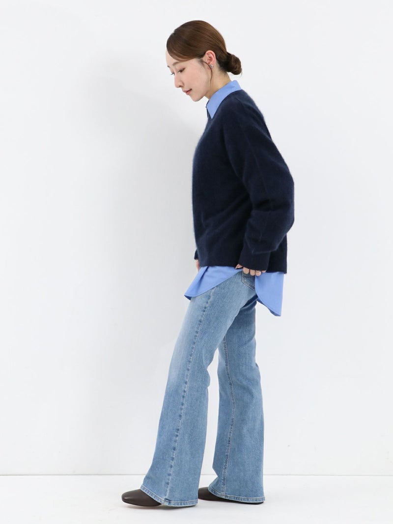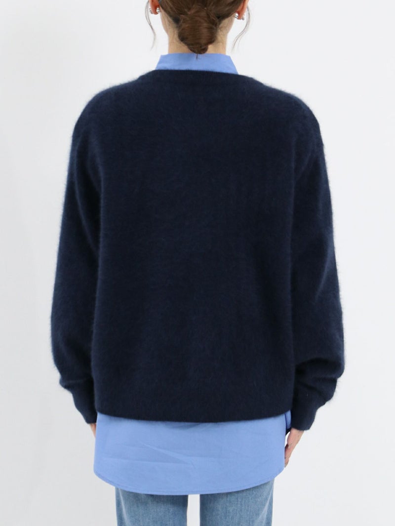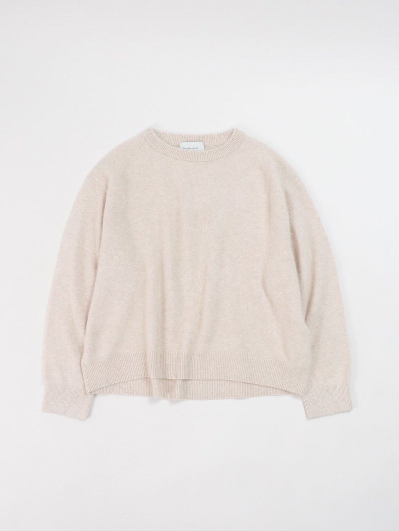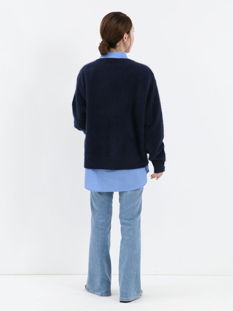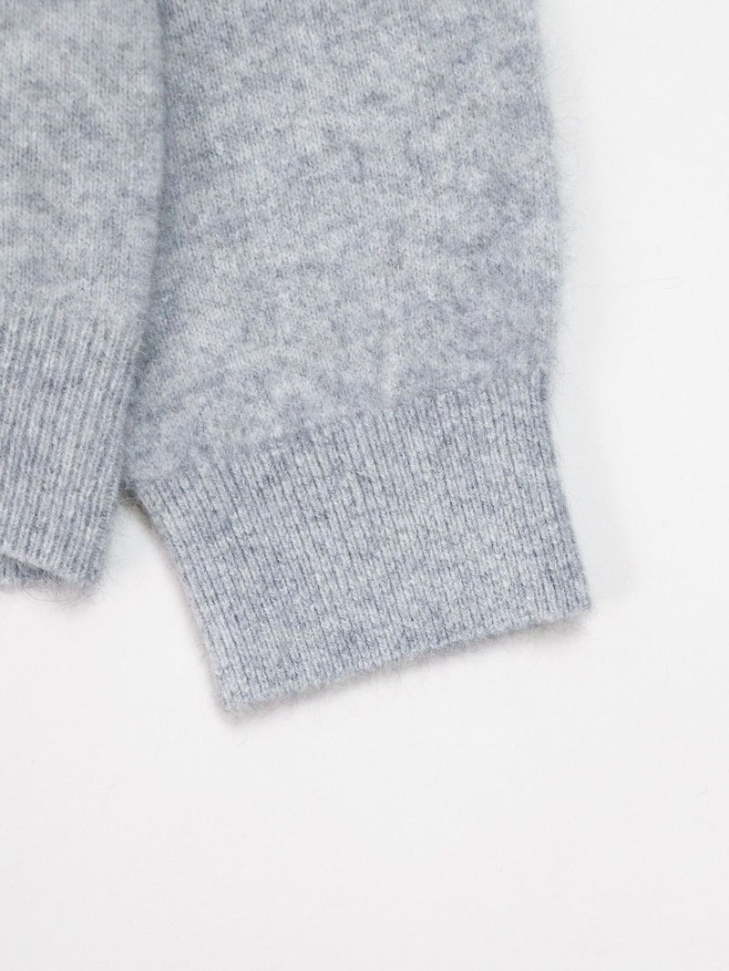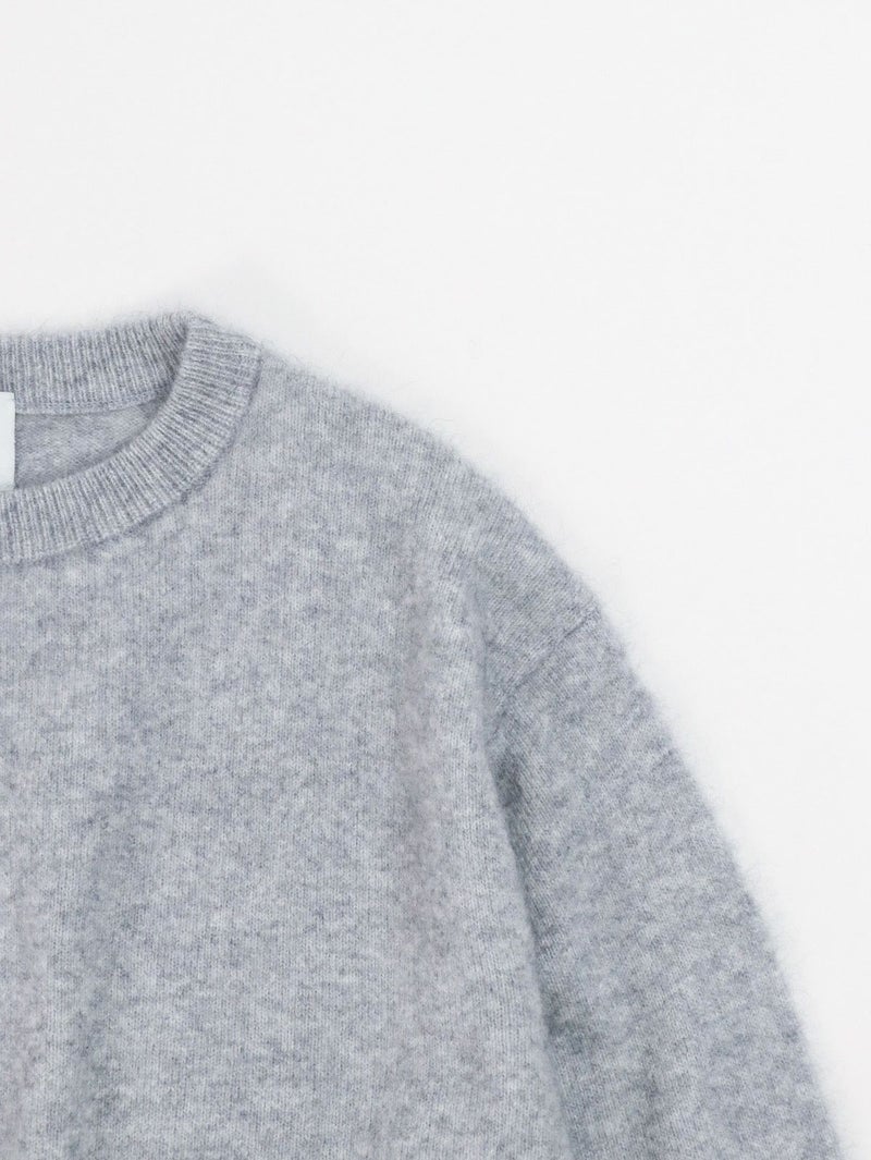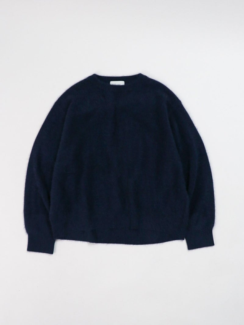 高品質のラクーン糸を使用した贅沢なニット。 ふんわりと柔らかな肌触りで、とても暖かく、軽やかな着心地です。また、ナイロン糸をブレーディングすることで毛が抜けにくく、もっちりとした風合いに仕上げています。秋冬のカジュアルスタイルを格上げする、シンプルで洗練されたタイムレスに愛用していただける一枚となっています。