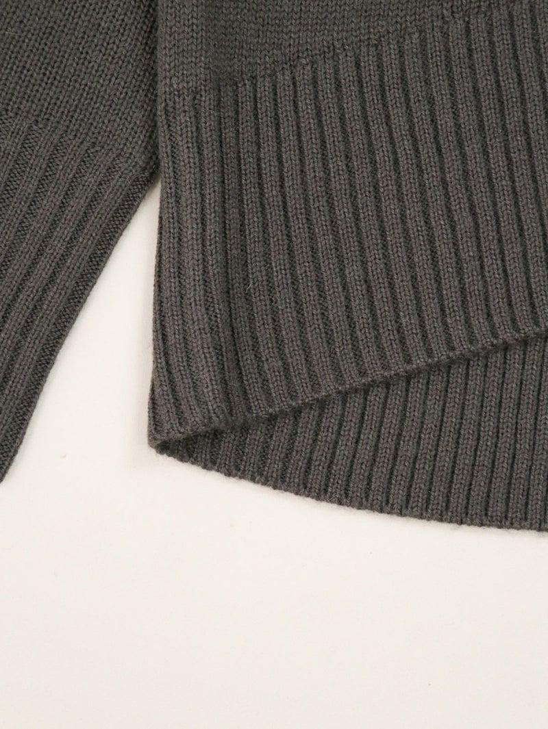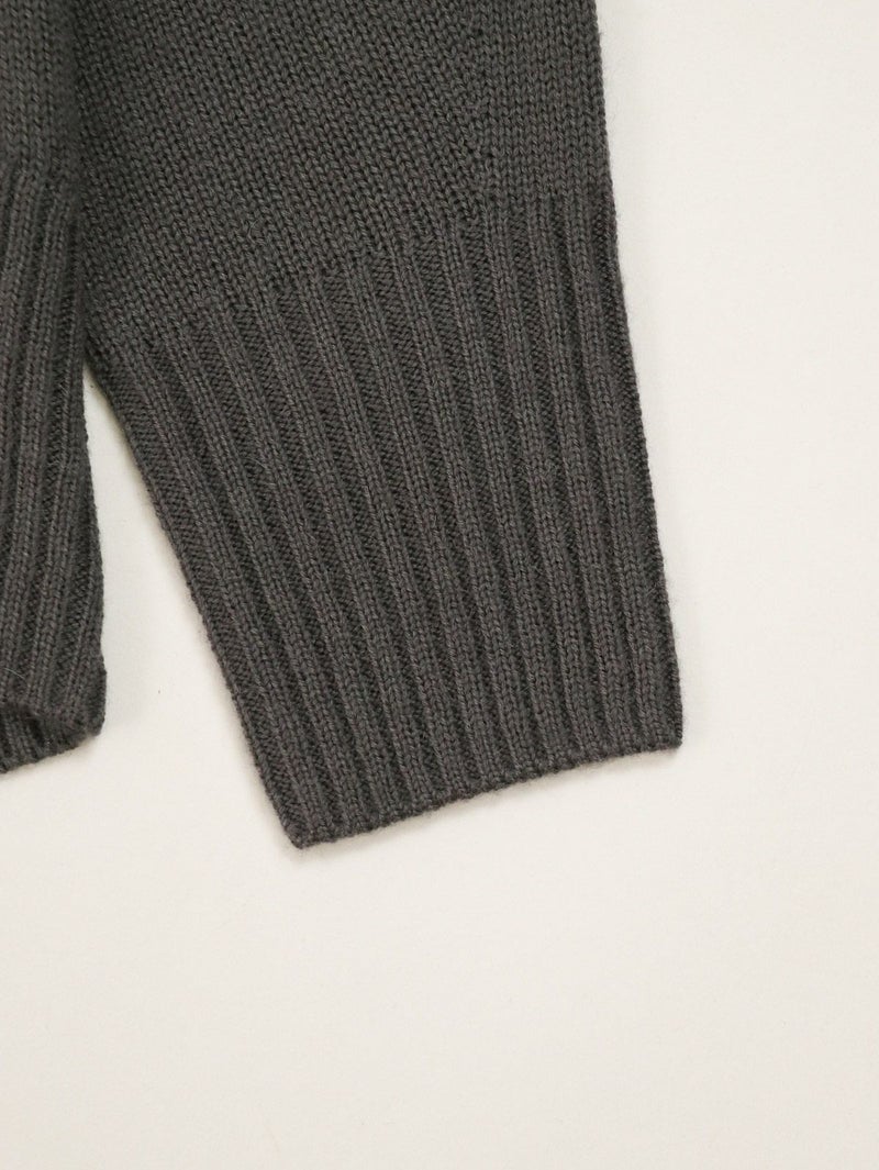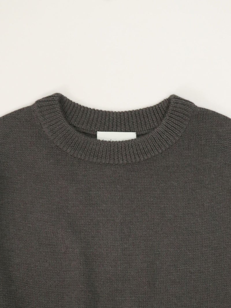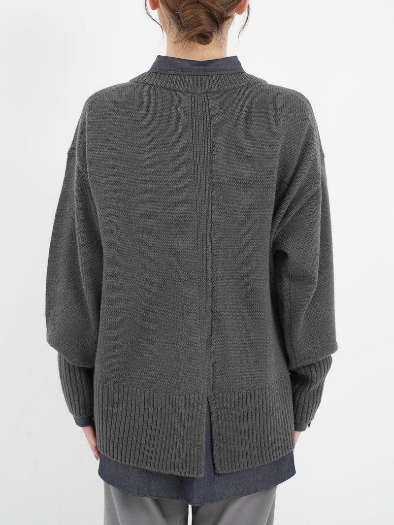 柔らかな風合いのウール混ニットプルオーバー。 ウールの暖かさとアクリルの軽さをバランスよく組み合わせたバルキー糸を使用。袖口と裾の長めのリブと、後ろのスリットがデザインポイントに。