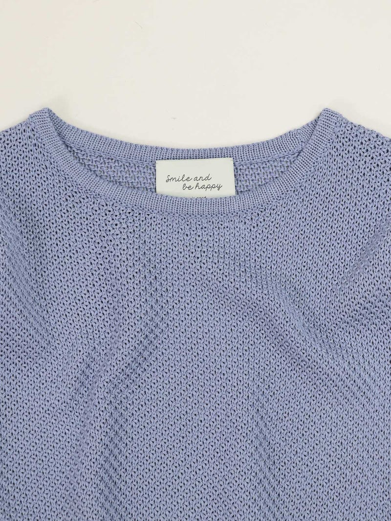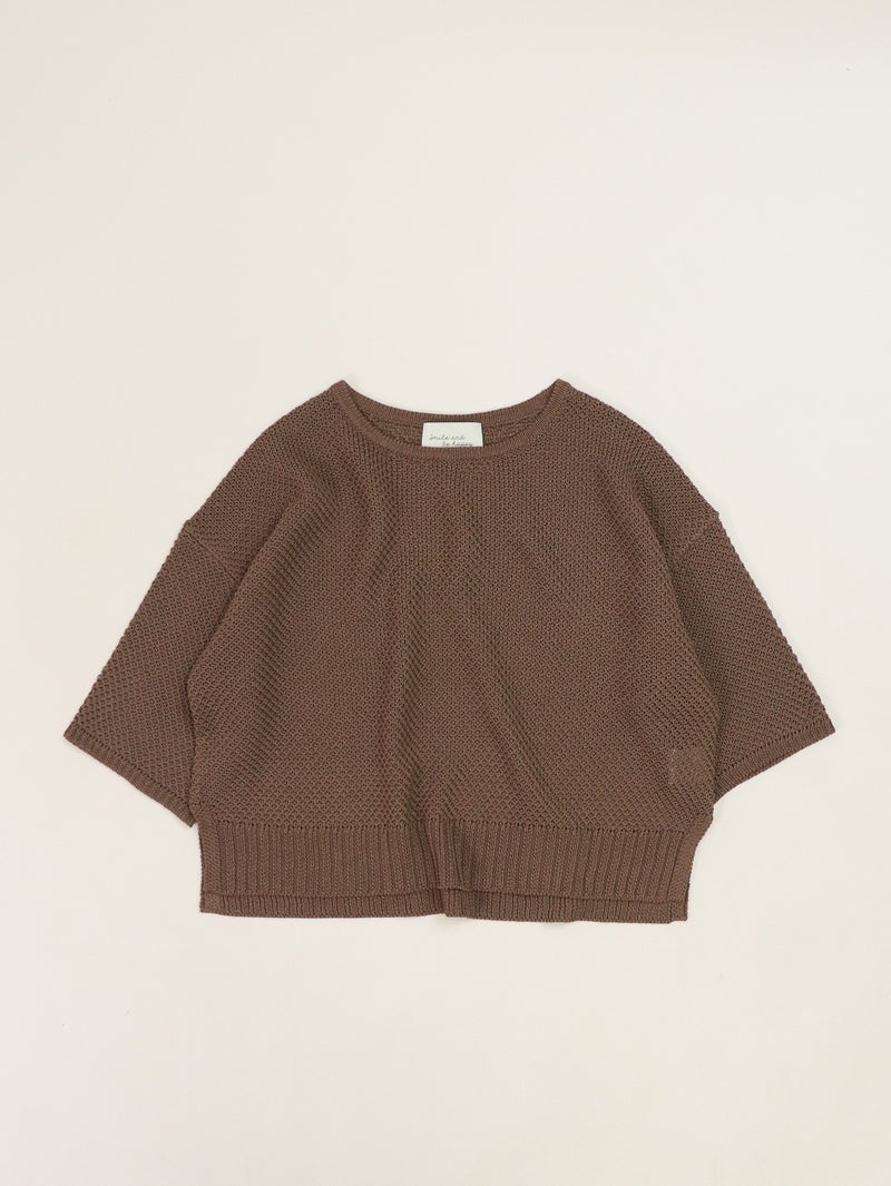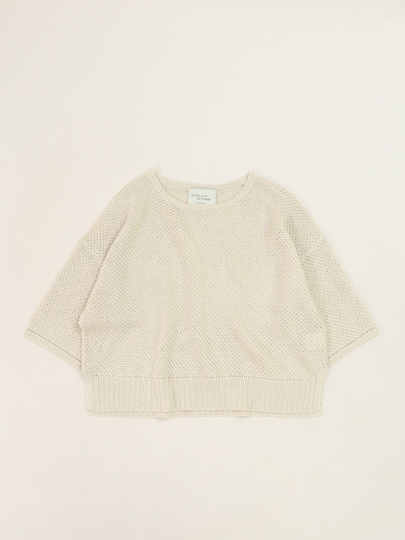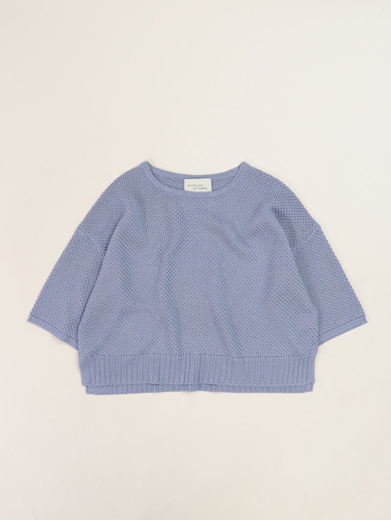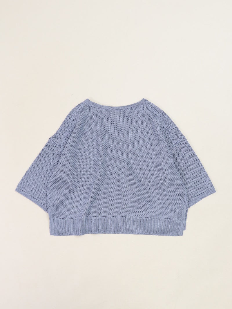 麻のようなドライタッチと清涼感が特徴のレーヨン混鹿の子編みニット。 凹凸感のある編地が肌離れをよくしサラッと着ていただけます。ワイドパンツやボリュームのあるスカートと合わせると◎