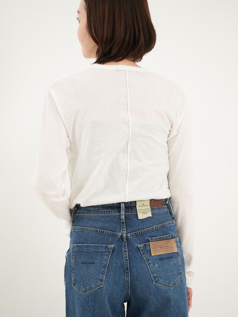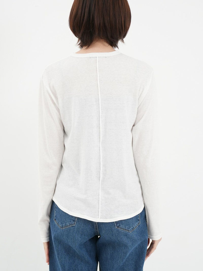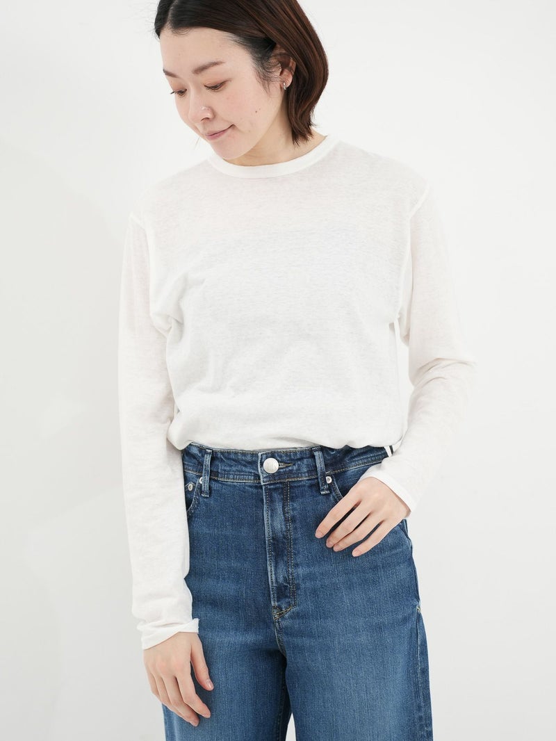 肌当たり滑らかで着心地抜群のカットソープルオーバー。 コットンリネン素材で吸湿性、速乾性に優れているため、ロングシーズン使えます。程よい透け感でいつもと違うスタイルを楽しめます。