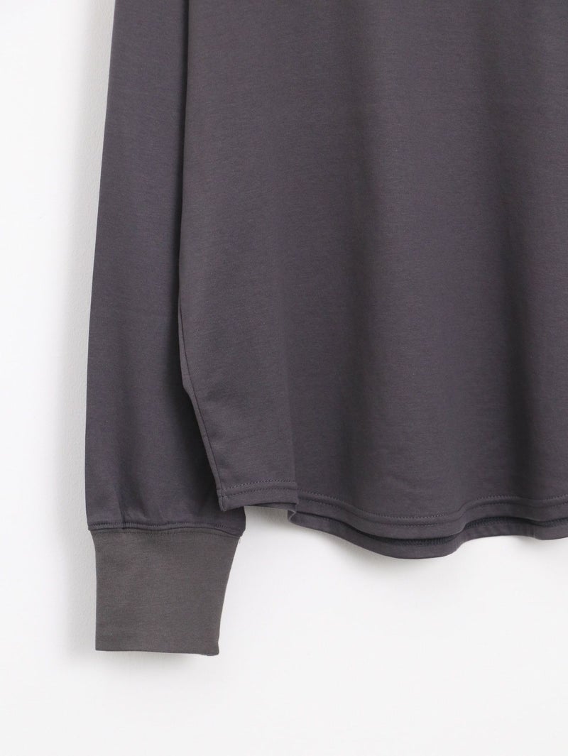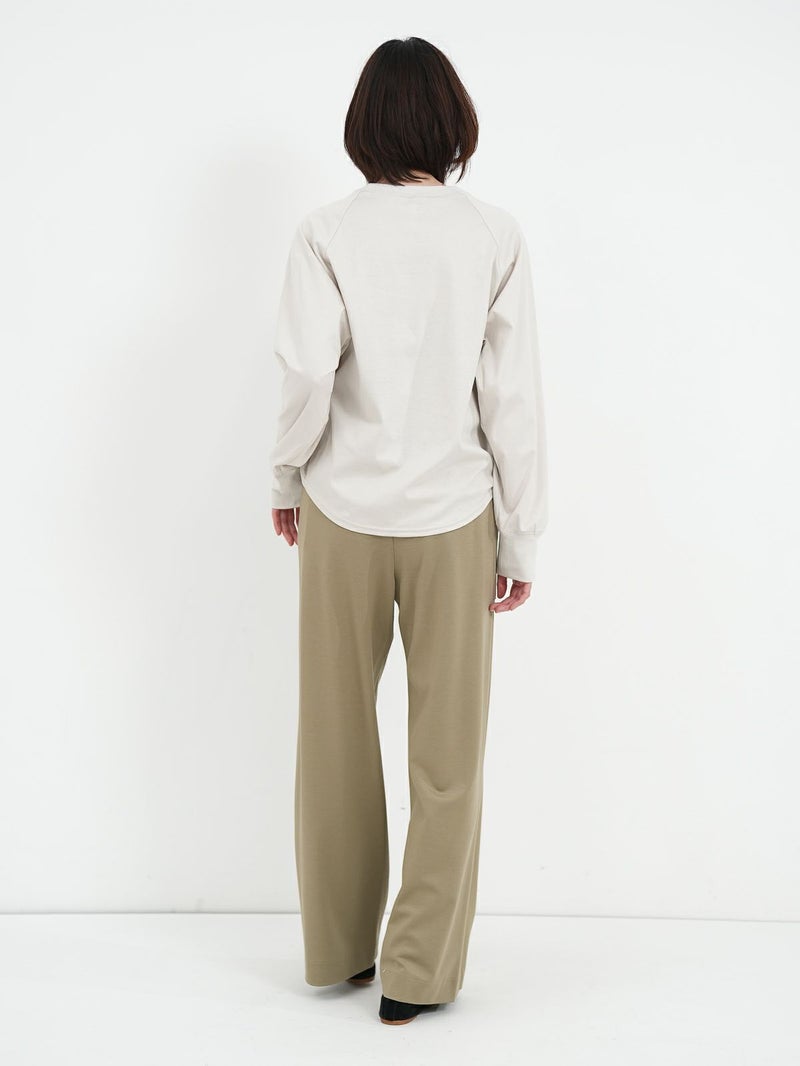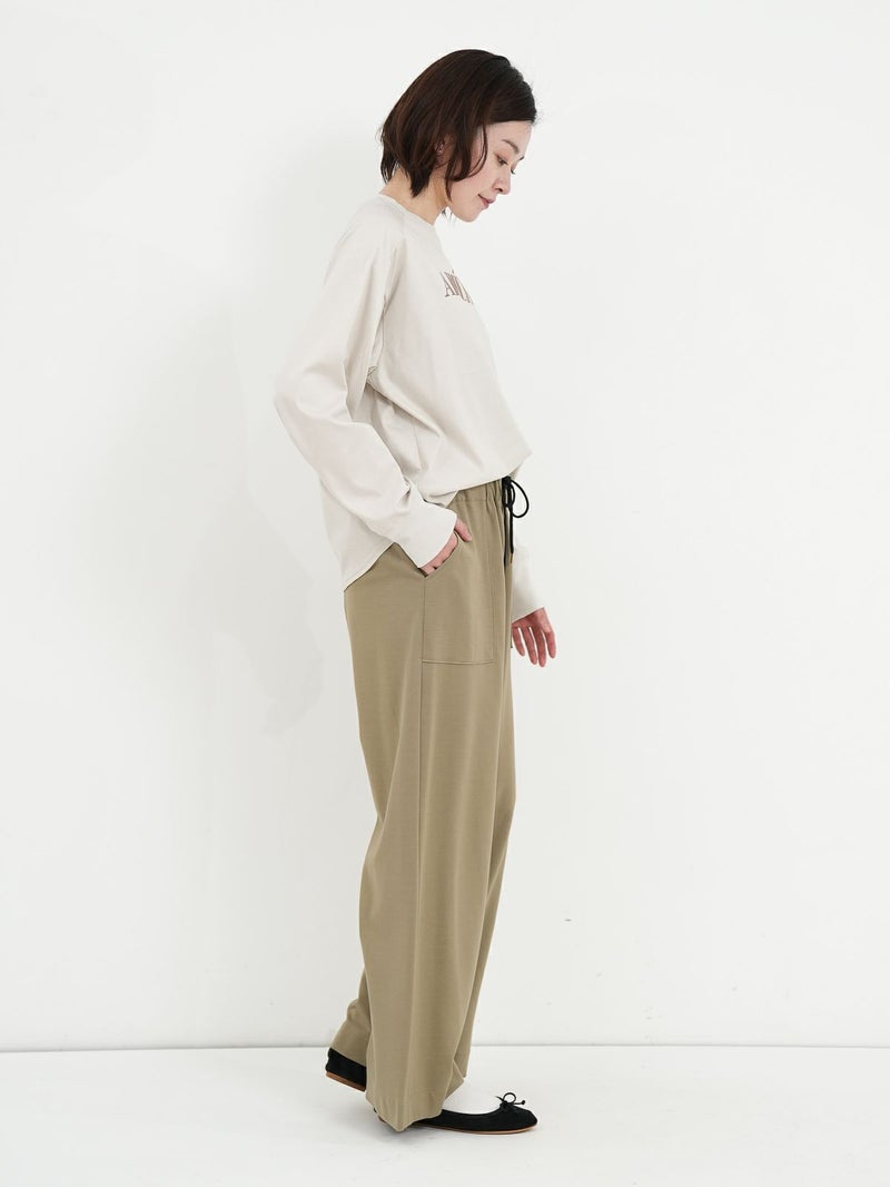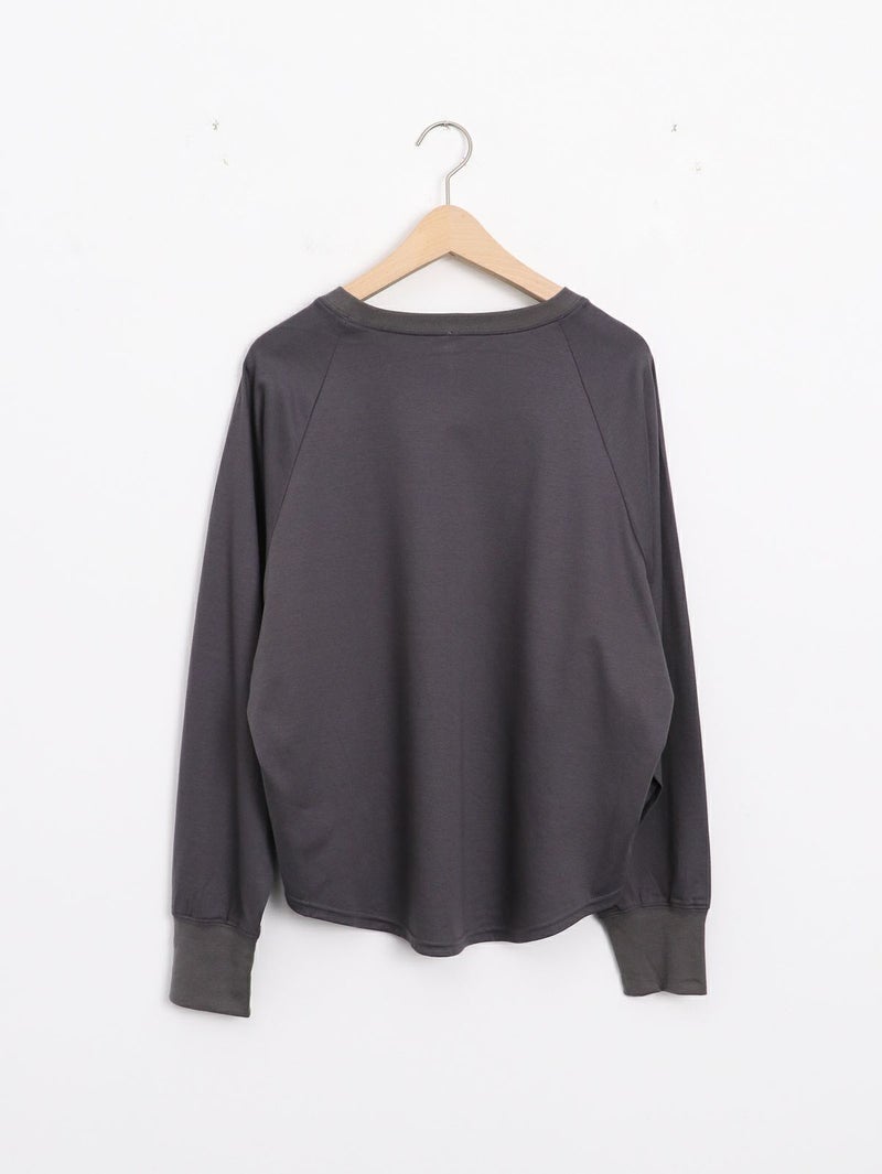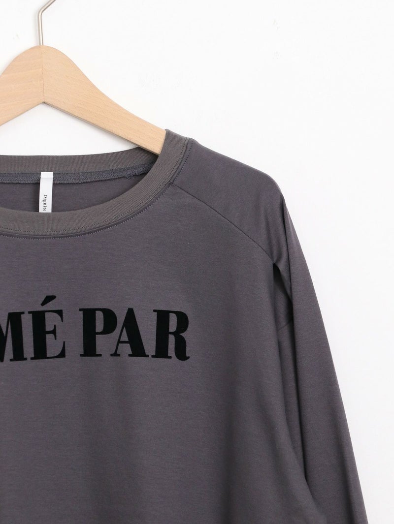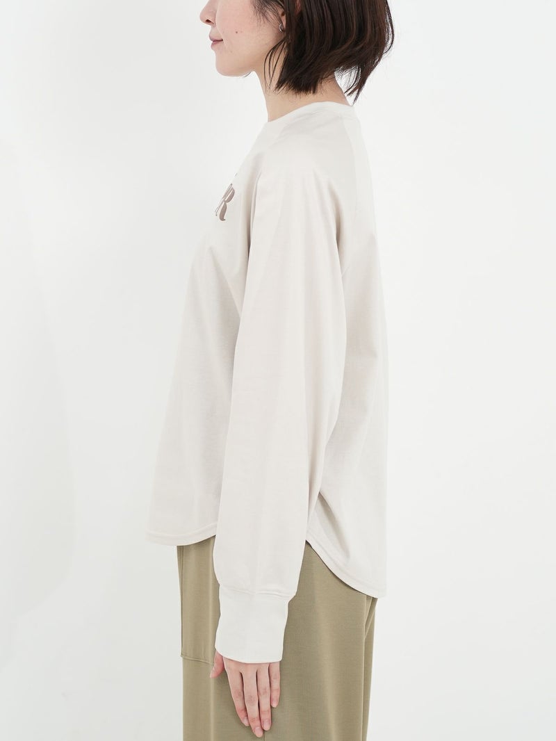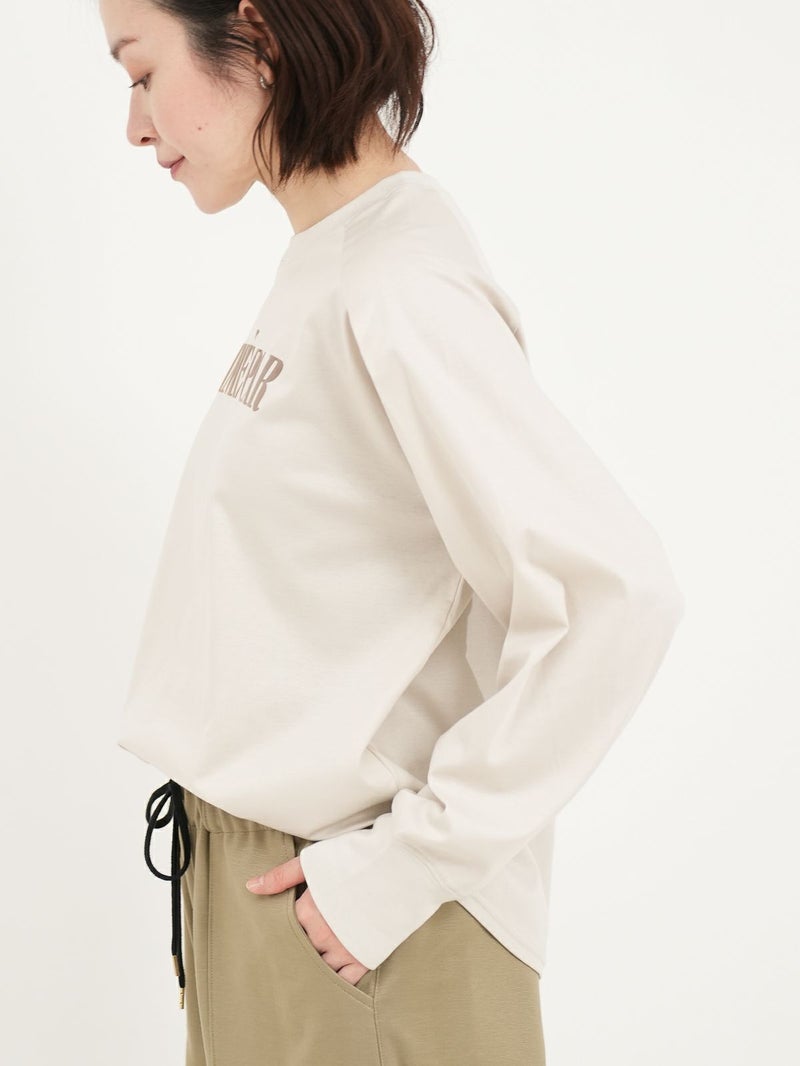 フロッキープリントを施したロングスリーブTシャツ。 ボディはややゆったり、ヒップトップ丈にデザイン。タックインでもアウトでもバランス良く着用できます。大人っぽい抜け感でロングシーズン活躍します。
