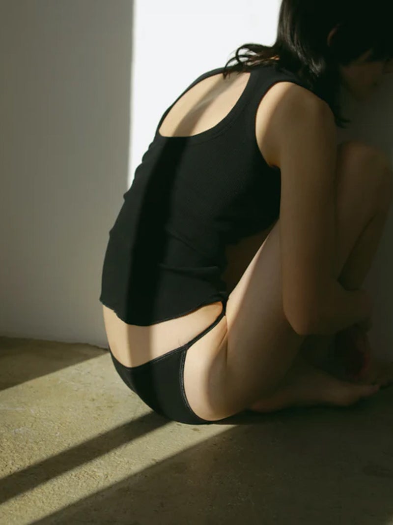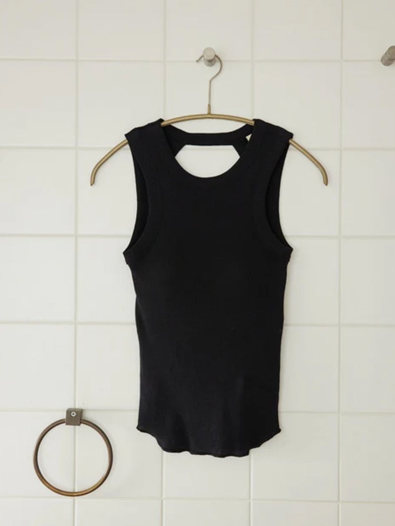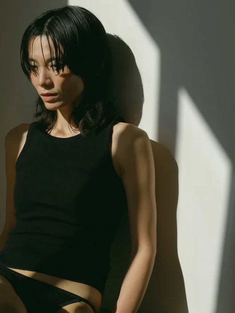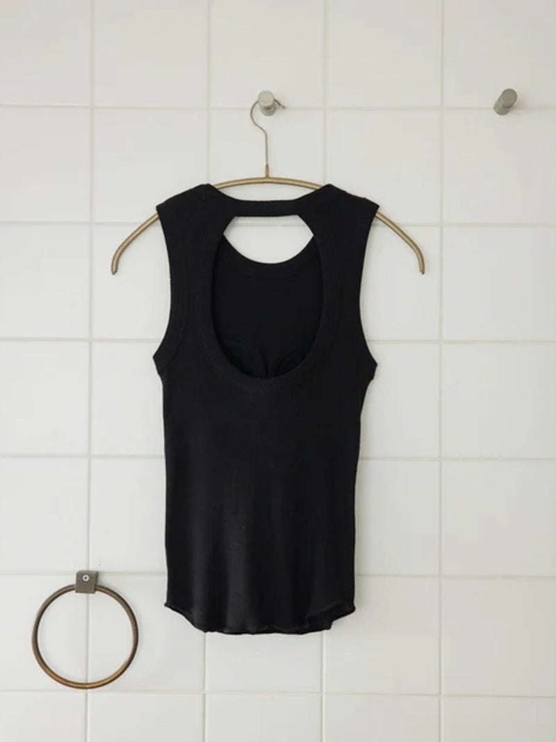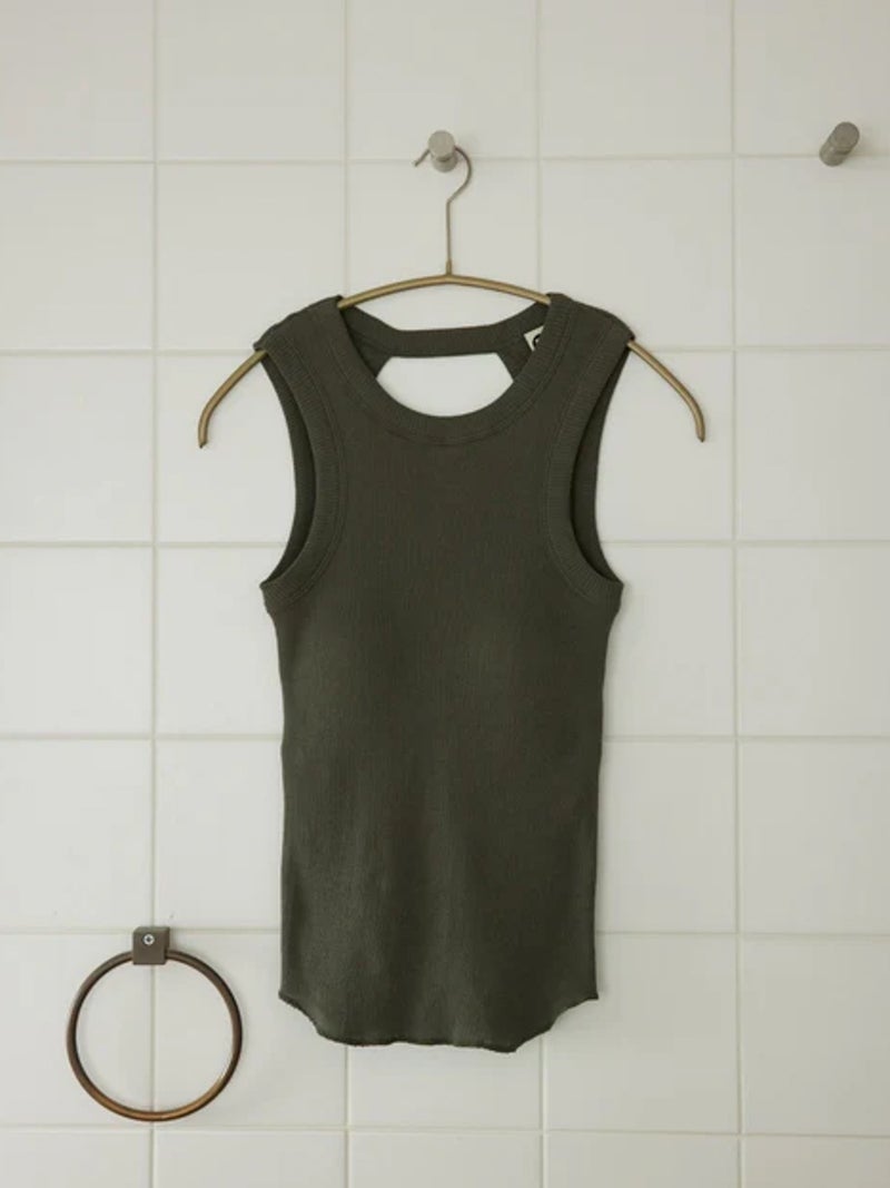 バックデザインが映えるカップ付きタンクトップ。 風合いの良いコットン100%のリブ素材を使用し、やわらかな肌触りで快適な着心地に仕上げた一枚です。安心感のある太めのショルダーデザインに、縦長のバックカットで後ろ姿もすっきりと美しく演出。縫い付けの丸型カップ付きで、一枚でも着用できる実用性の高さも魅力です。