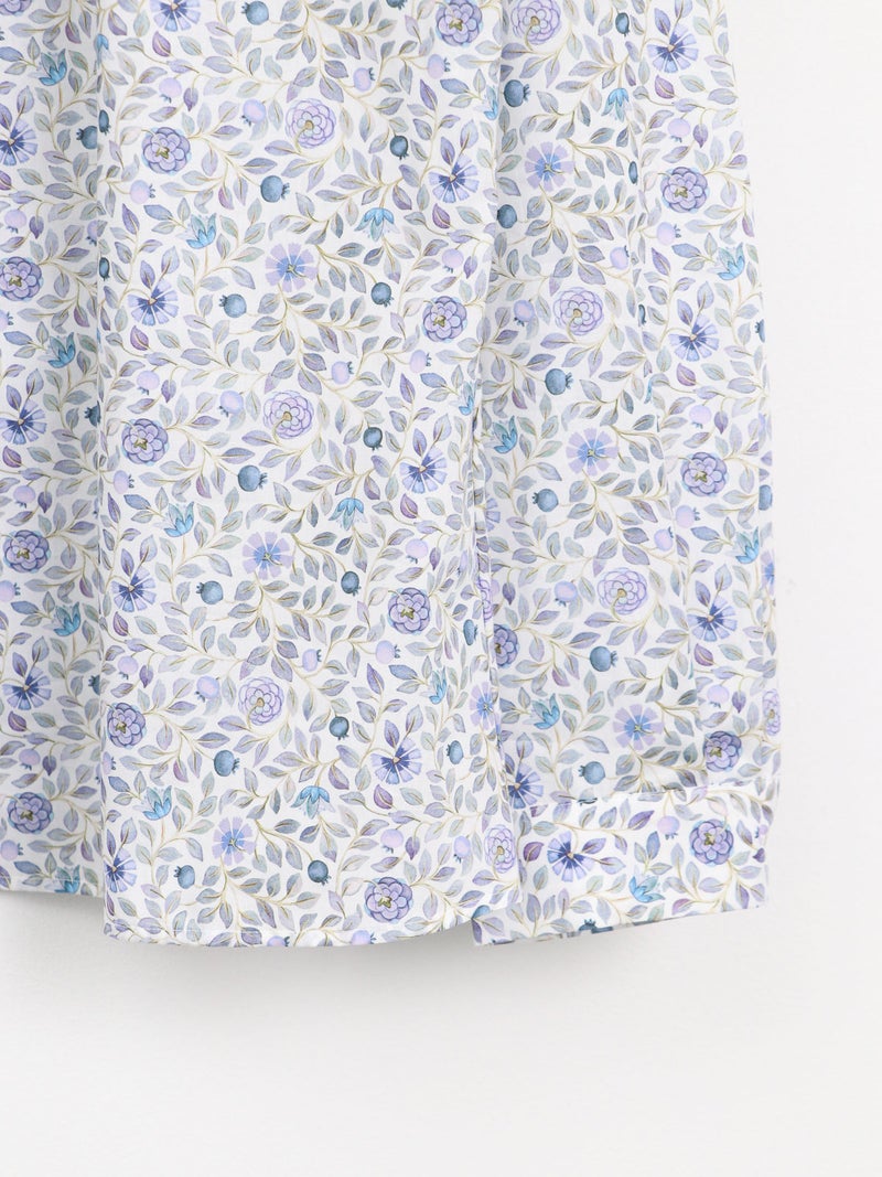 リバティのローズ柄プリントを使用したクレリック衿ブラウス。 クレリック仕立ての衿は、さりげなくアクセントになりながらも主張しすぎない絶妙なバランス。 オンにもオフにも、すっと馴染むところが魅力です。 パイピング部分のホワイトが効いていて、顔周りを明るく見せてくれるのもポイントです。