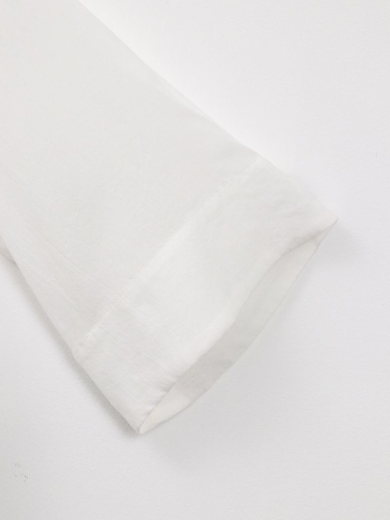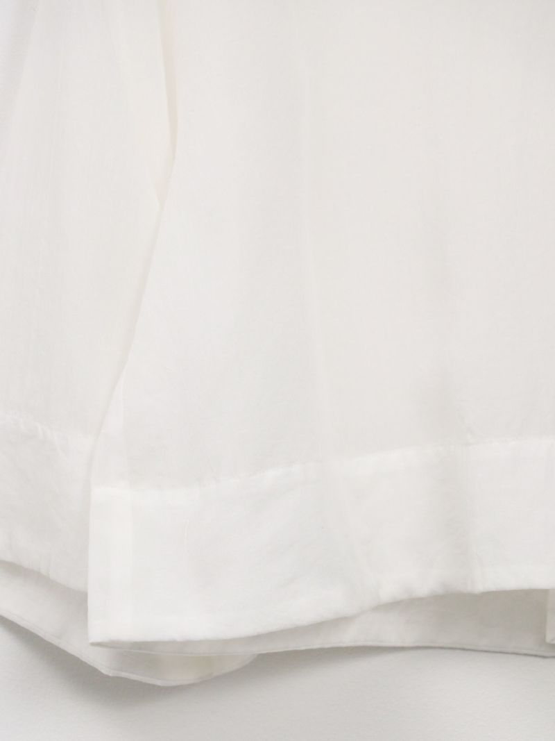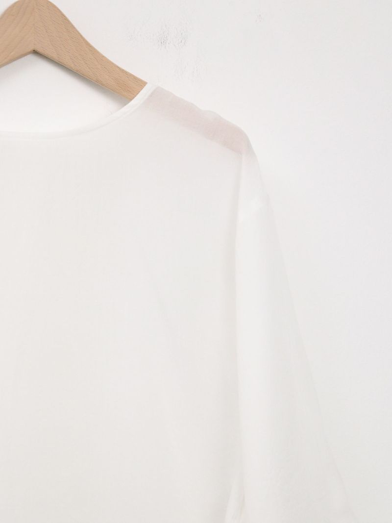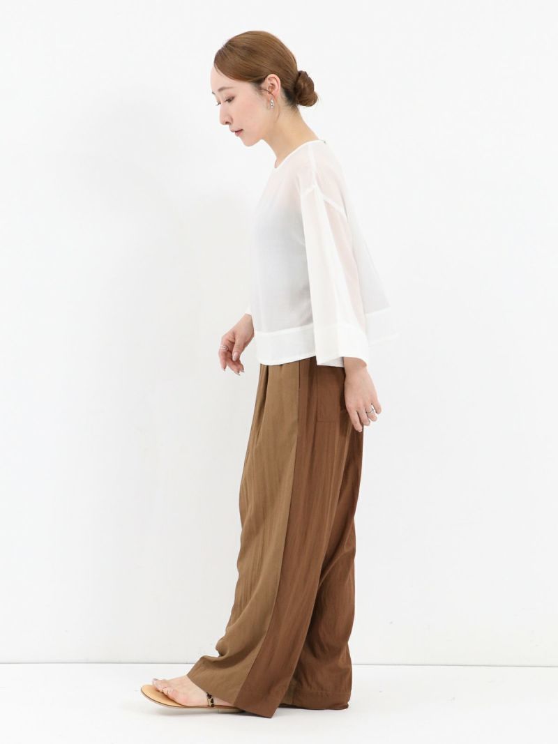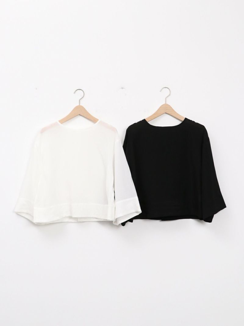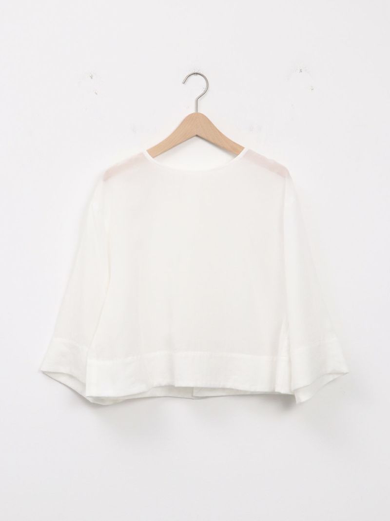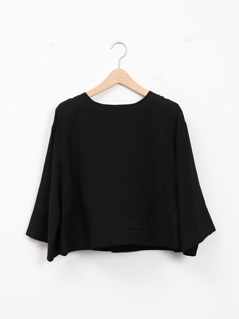 しなやかで肌なじみが良く、通気性にも優れたプルオーバータイプのブラウス。 シンプルながら、ワイドスリーブとバックスリットがモードなアクセントに。後ろはスナップボタン仕様で、着脱がしやすくなっています。トレンドのクロップド丈は、ワイドパンツやロングスカートとのコーデがおすすめです。