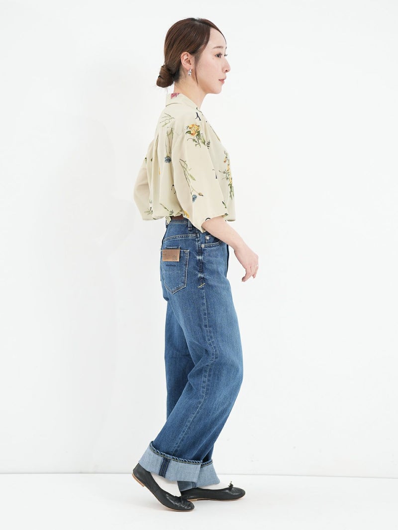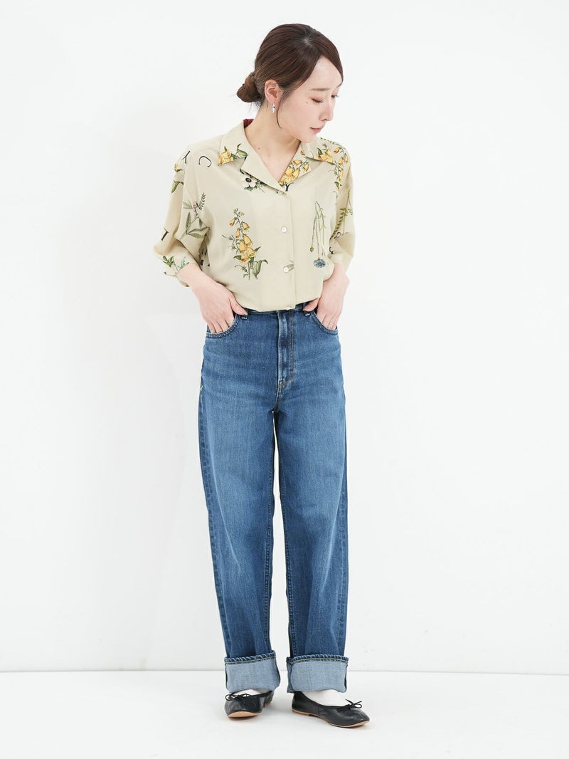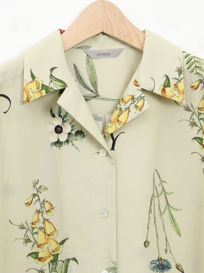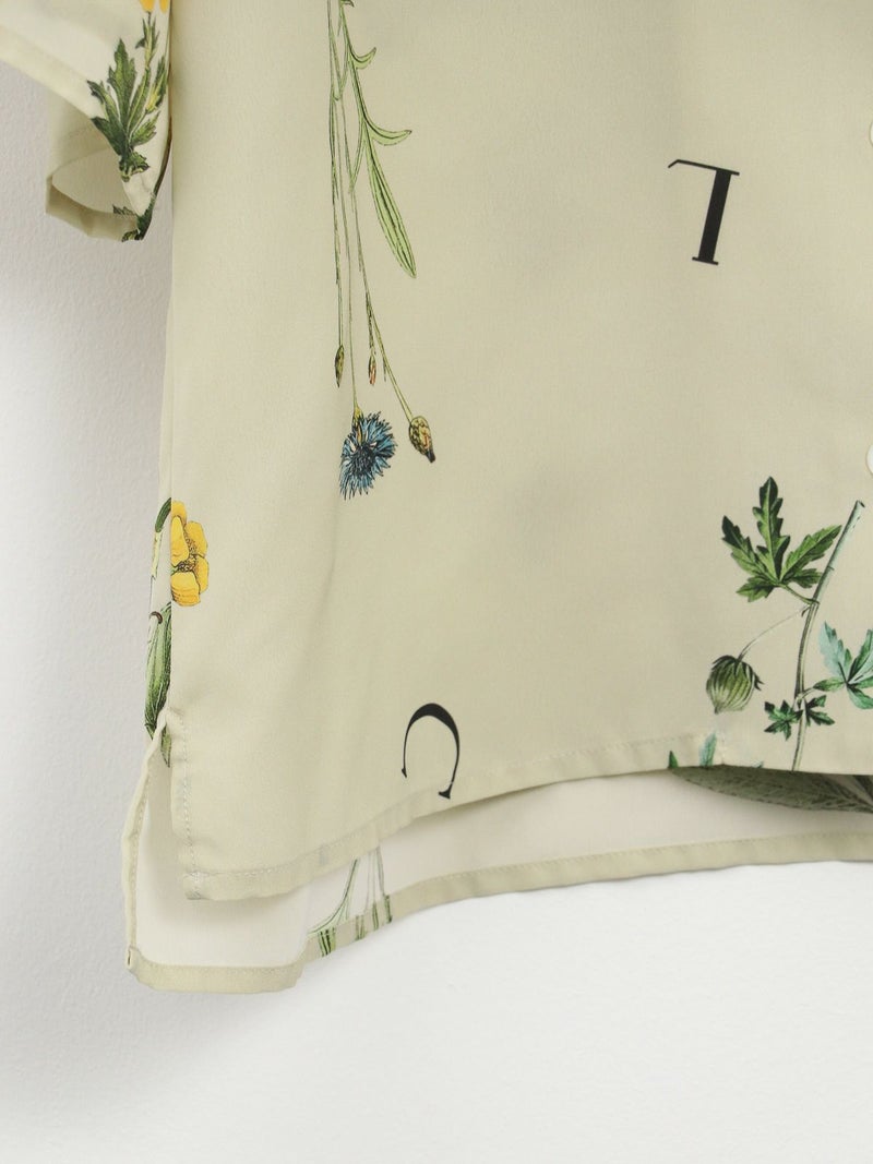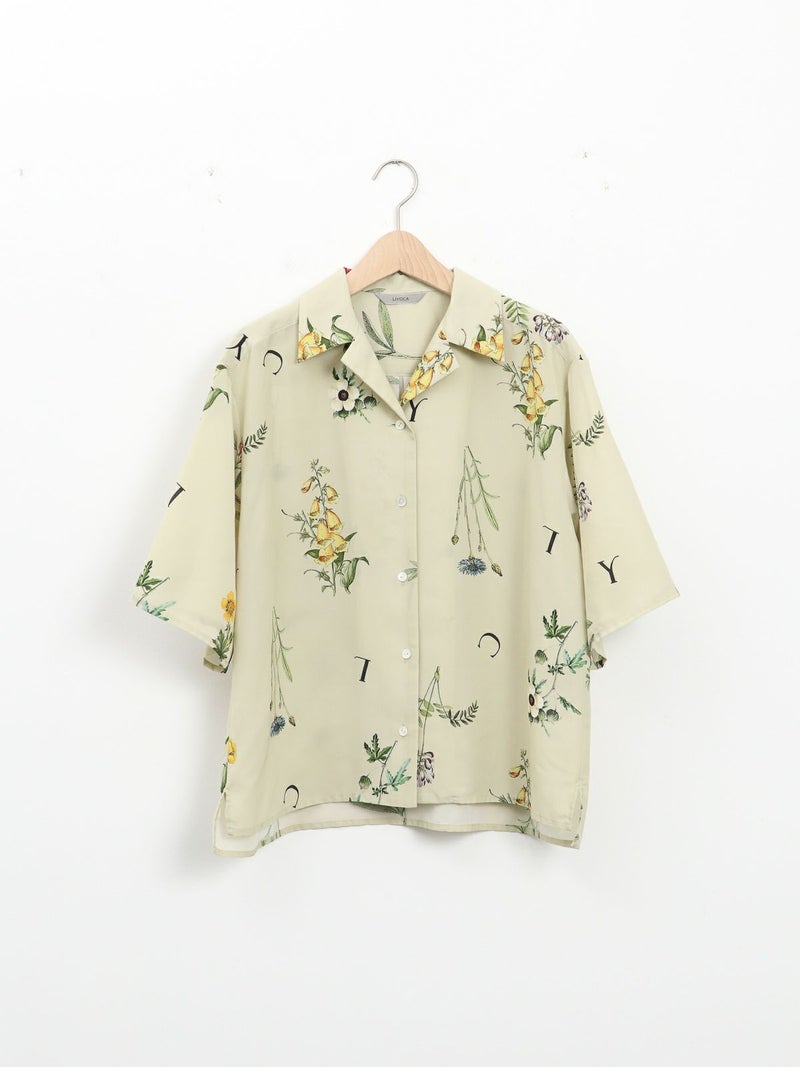 カラフルなボタニカル柄が目を惹くオープンカラーシャツ。 表面に細かい縮みじわを持った軽さとしなやかさのあるデシン素材を使用。インナーに長袖を重ねたり、ジャケットやカーディガンを羽織れば、ロングシーズンで活躍できます。
