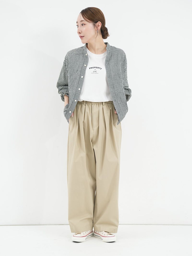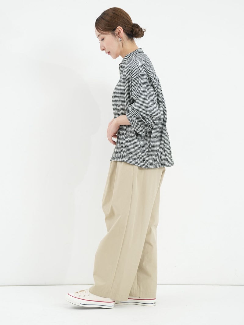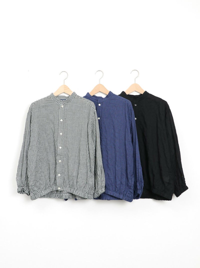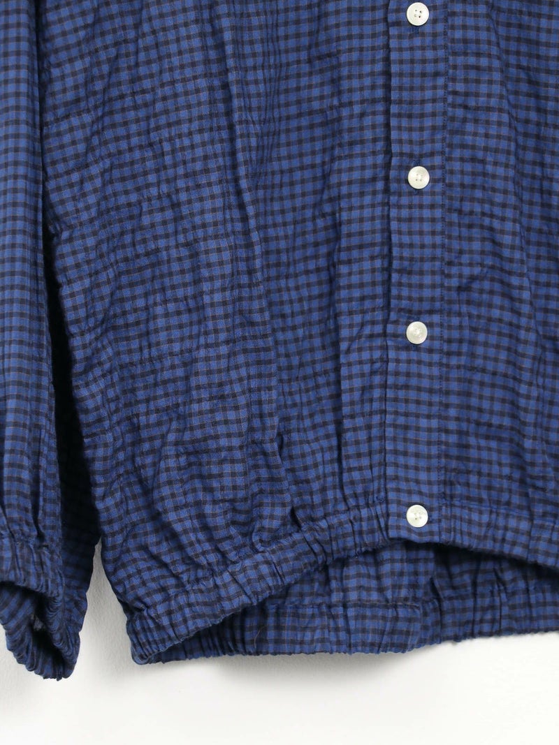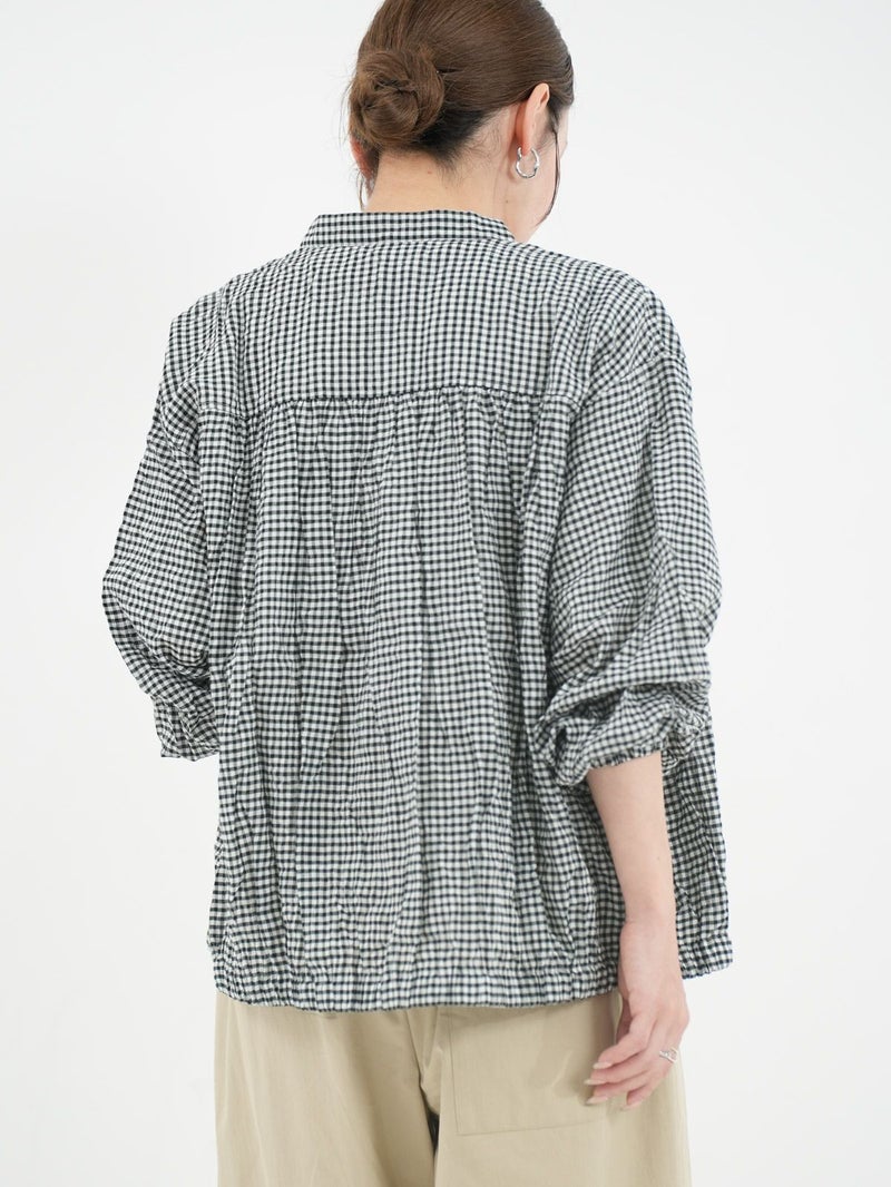 シャーリングが魅力のチェックシャツ。 さらっとした着心地で肌離れもよく◎裾はゴム仕様になっているのでブルゾン風にも着用していただけます。アイロンがけ不要なのもうれしいポイントです。