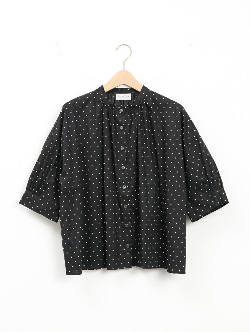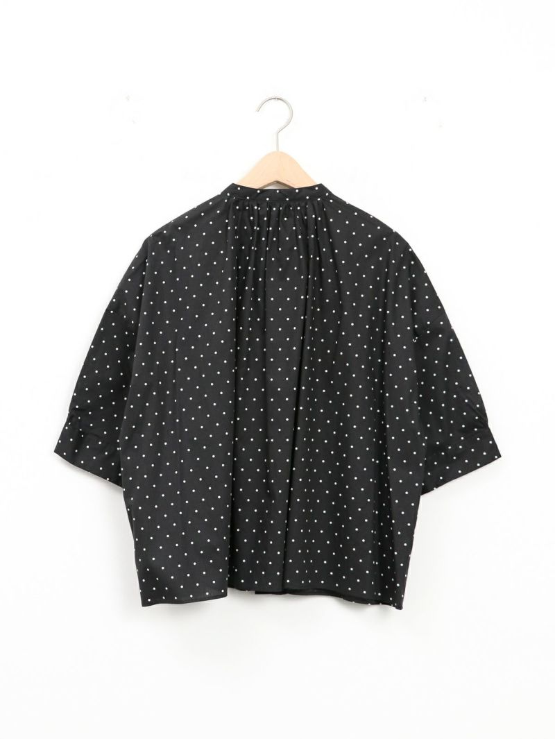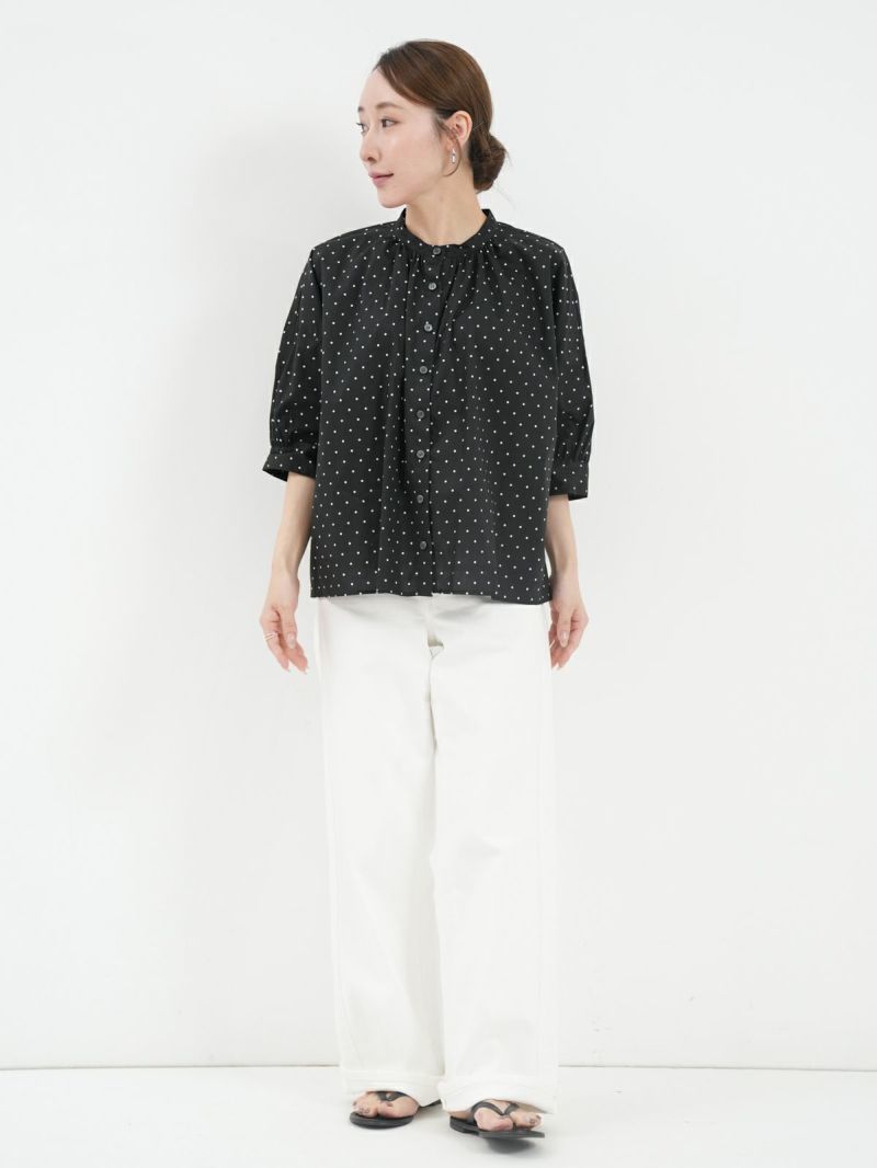 高密度に織り上げられたコットン生地を使用したギャザーブラウス。 薄手でさらっとしたなめらかな肌触りが、暑い夏の時期にも涼しく着ていただけます。 たっぷりとした身幅に首元と袖口のギャザーでふんわりとしたシルエットです。