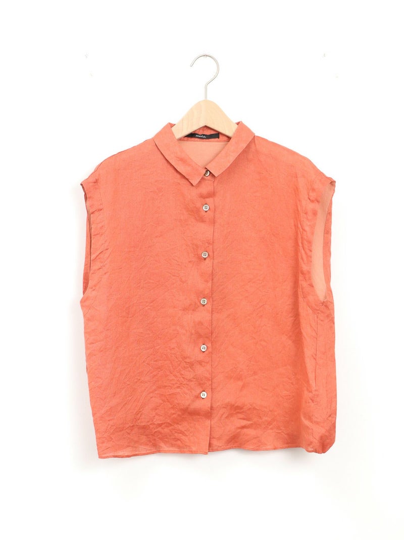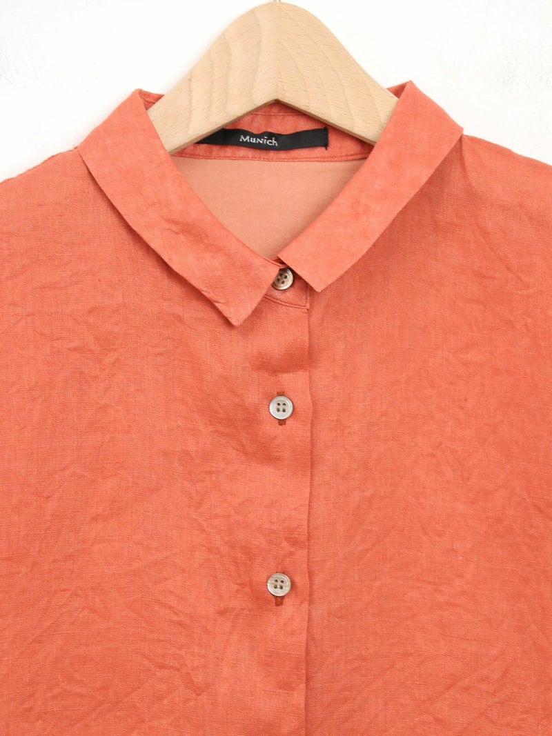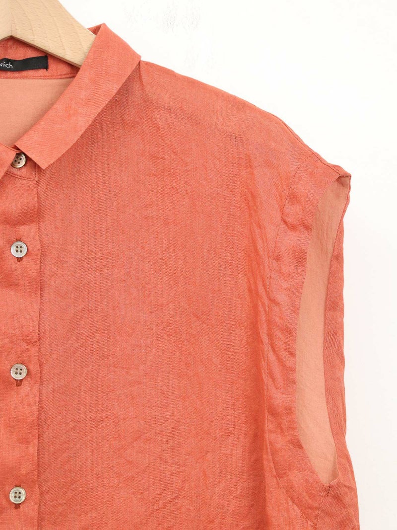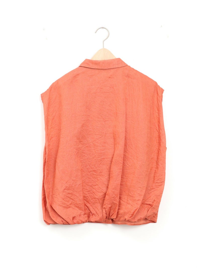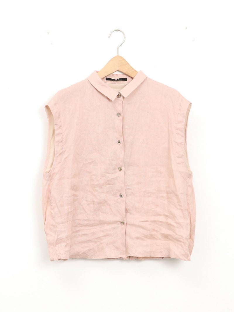 上品で涼し気な印象の60sリネンのバルーンシャツ。 後ろ見頃のみ2枚仕立てのバルーンシルエットにしており、ギャザーとタックで立体感を出しています。少し甘めのバックスタイルに対して、フロントはシンプルしてバランスの取れた1枚です。