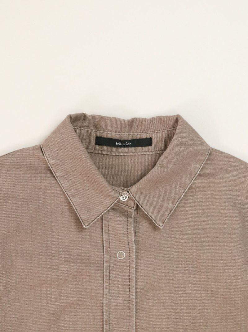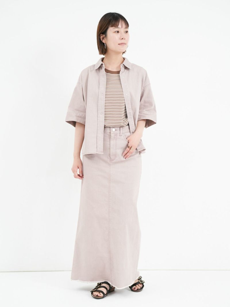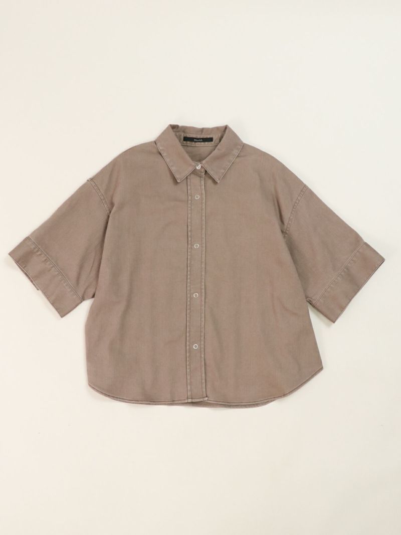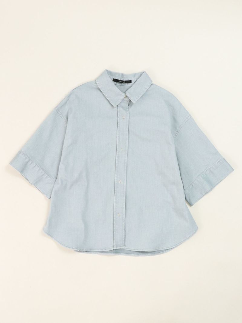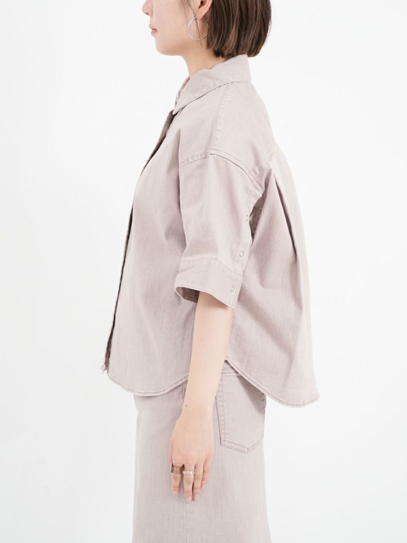 -カラーデニムシリーズ- 独特な風合いが特徴のハーフスリーブシャツ。袖のボタン開きや立体感のあるフォルムデザインがポイント。 同素材のマキシスカートと合わせてセットアップコーデもおすすめです。