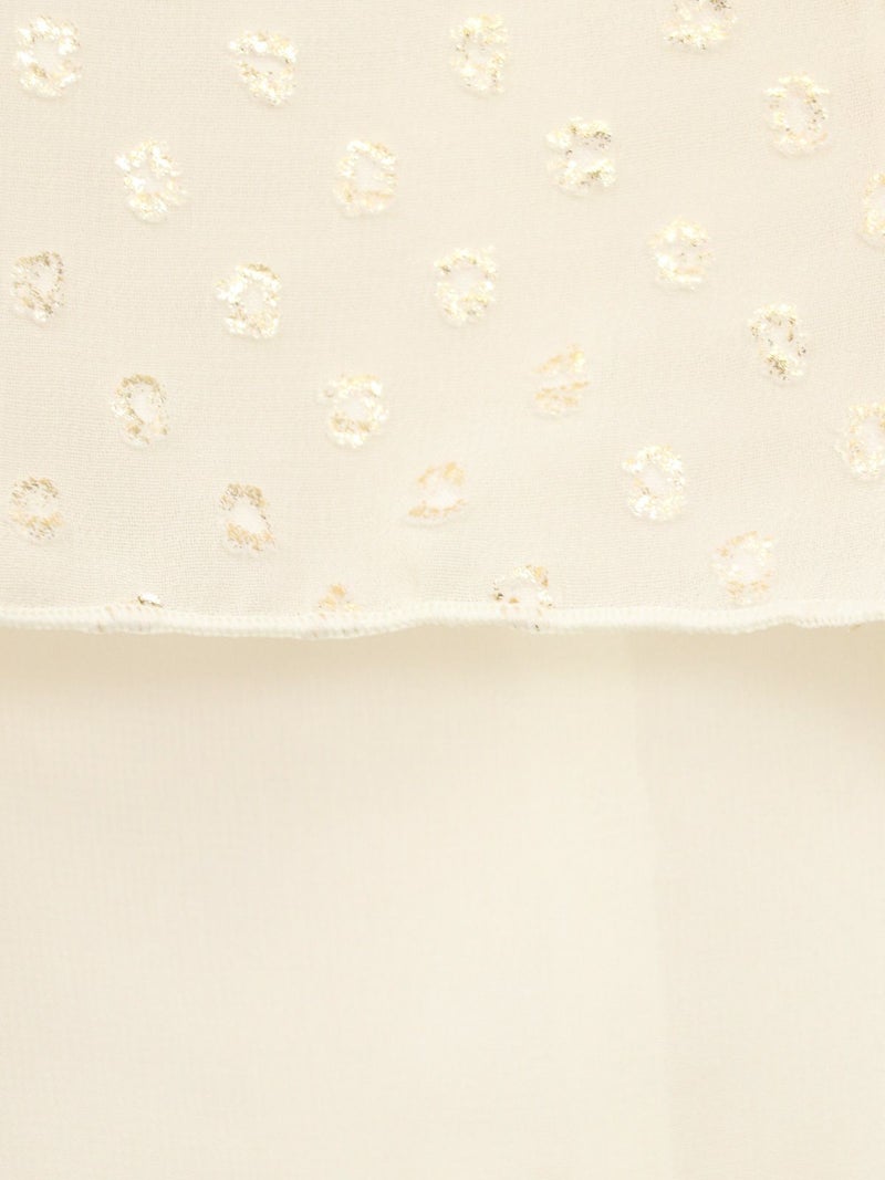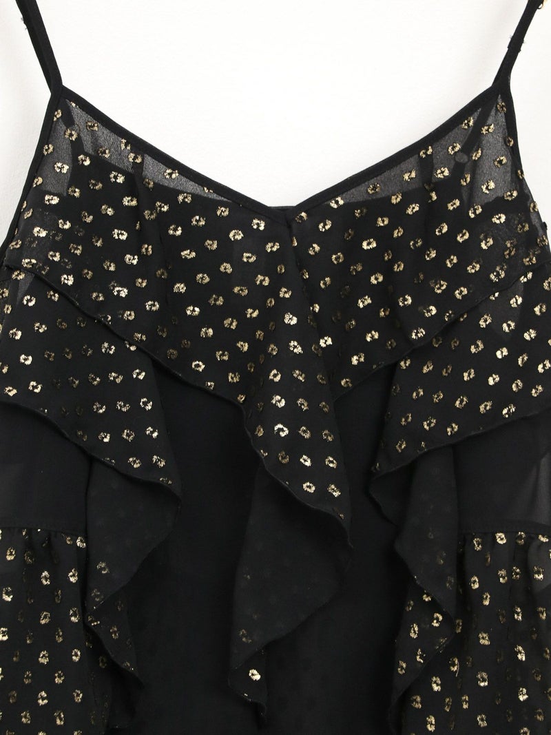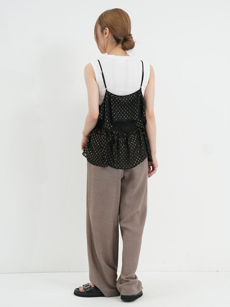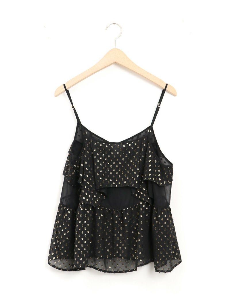 薄く柔らかいドット柄のジャガードと無地のシフォンを使ったキャミソール。 Tシャツなどのカットソーに重ねてシンプルすぎる着こなしにアクセントの1枚です。