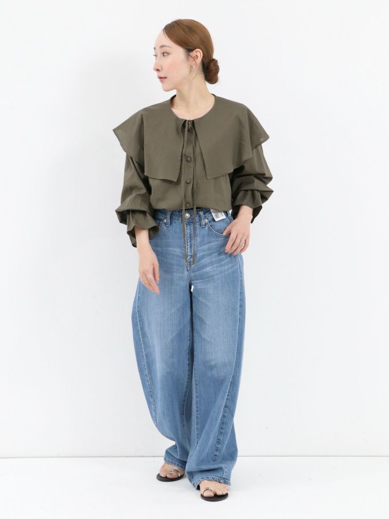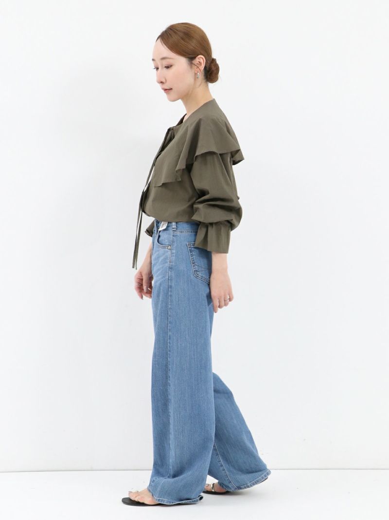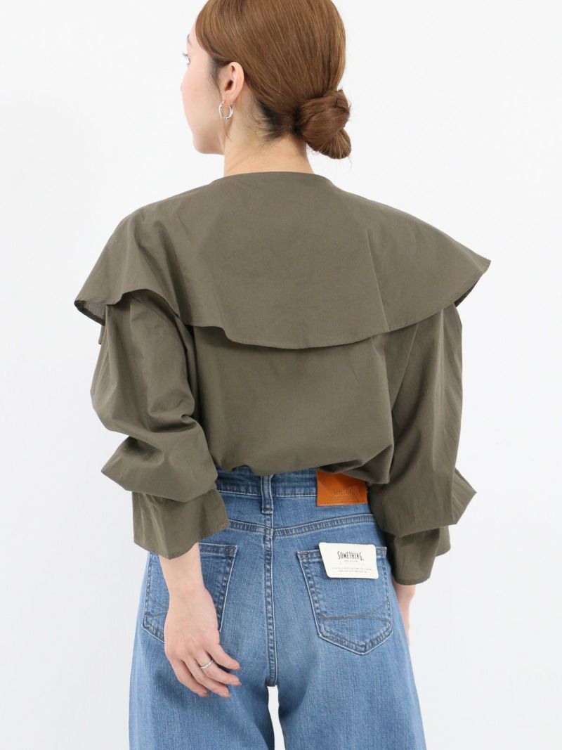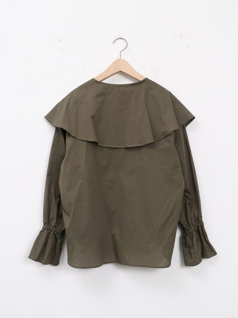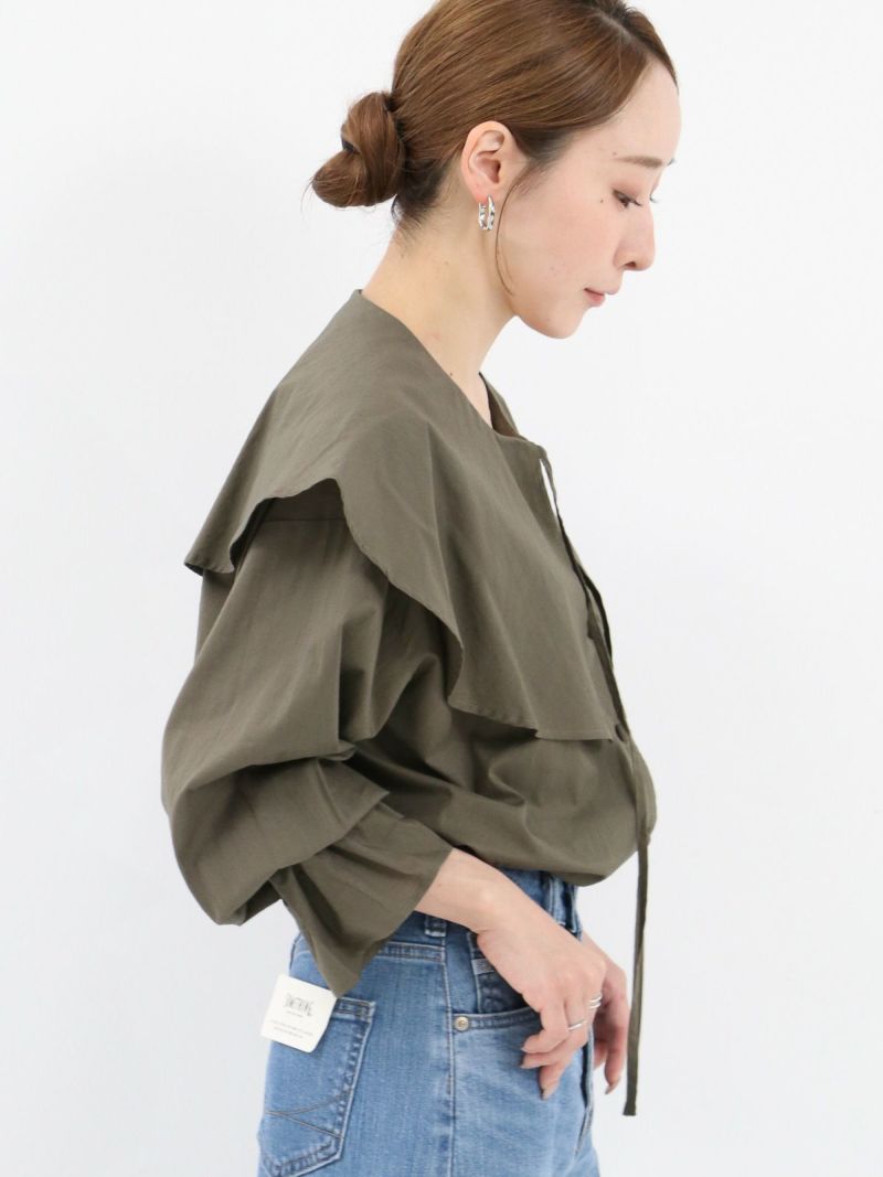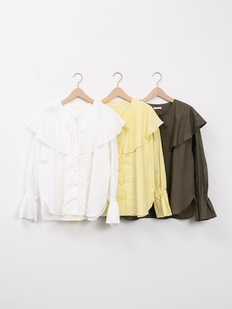 トレンドに左右されないデザインブラウス。 素材はコットン100%の柔らかな肌触りで、フリル部分も広がりすぎず程よいボリュームに。フロントボタンのころっとしたデザインもポイントです。