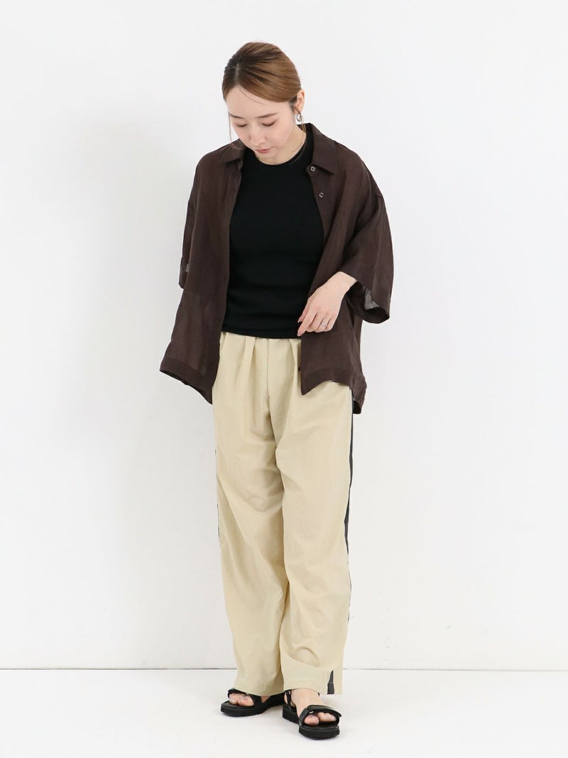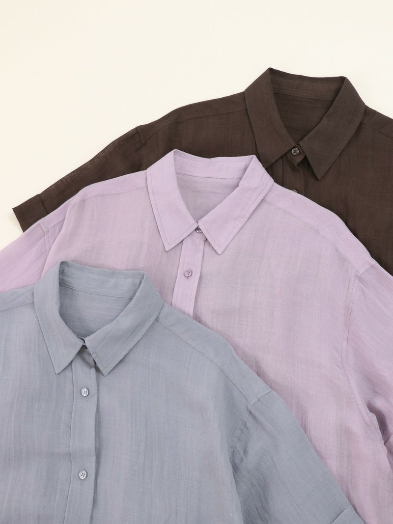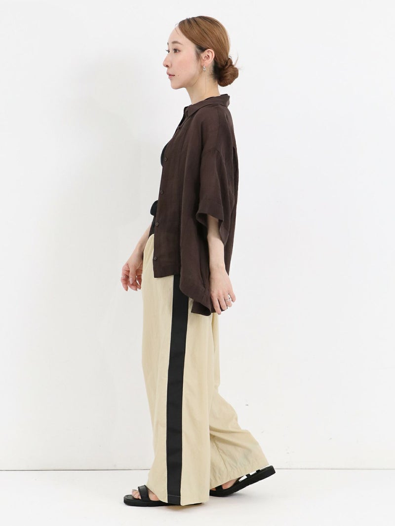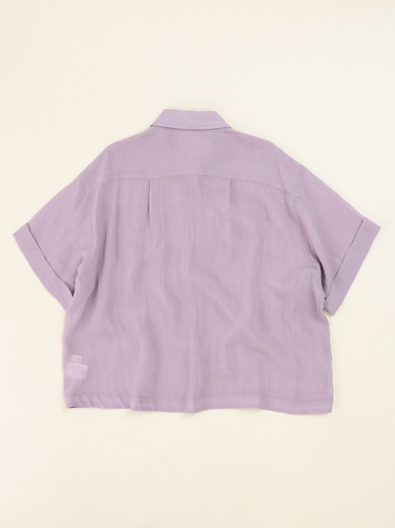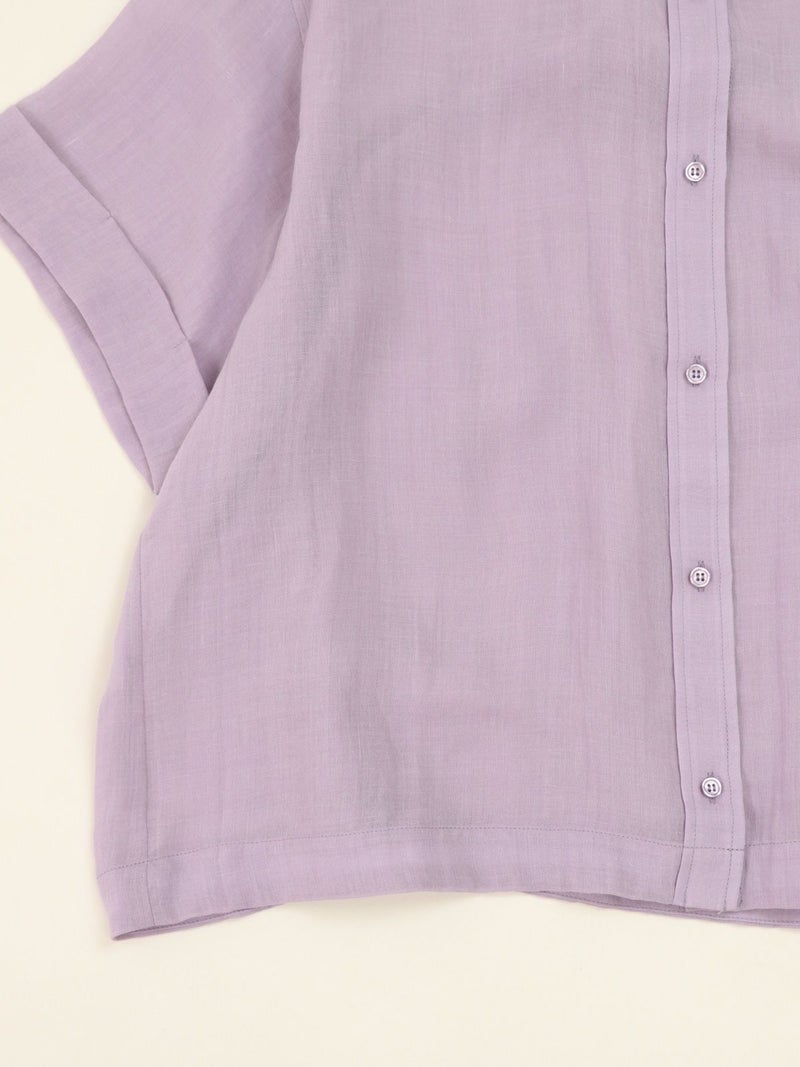 リネンの入ったシアー感のあるハーフスリーブシャツ。 少し透ける感じが涼し気な印象に。ゆとりのあるサイジングで1枚でも羽織でもサマになります。