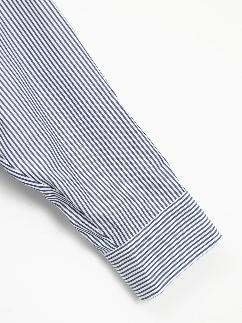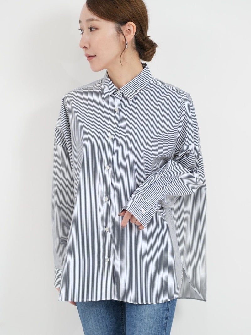 定番のストライプレギュラーカラーシャツ。 コットン100%で程よくハリ感があり、一枚着としてはもちろんニットやスウェットのインナーとしてレイヤードスタイルにも。今回はサイズ感はそのままで着丈の長さが違う2サイズ展開です。
