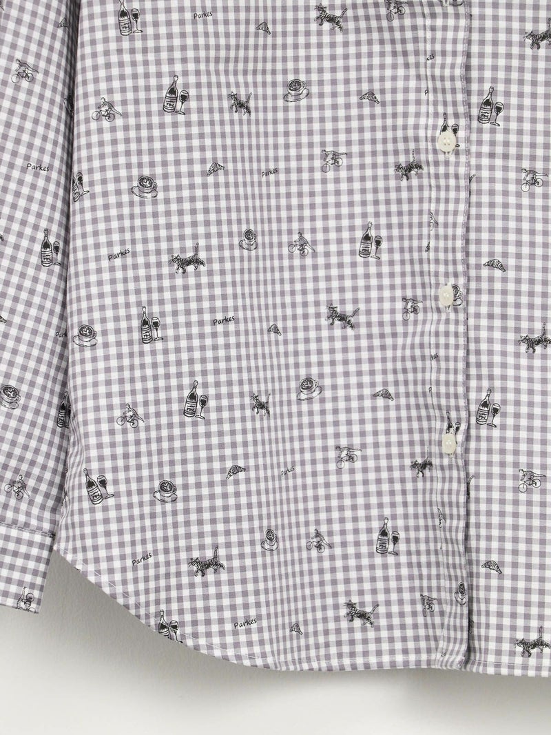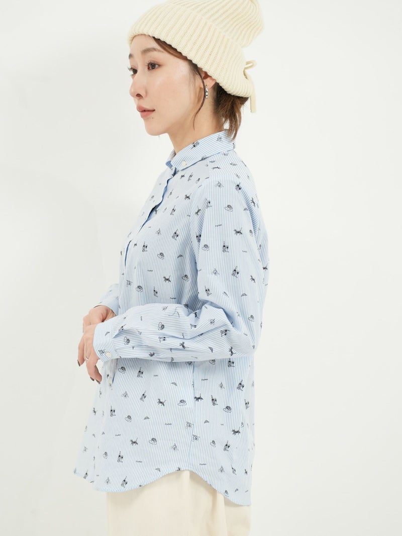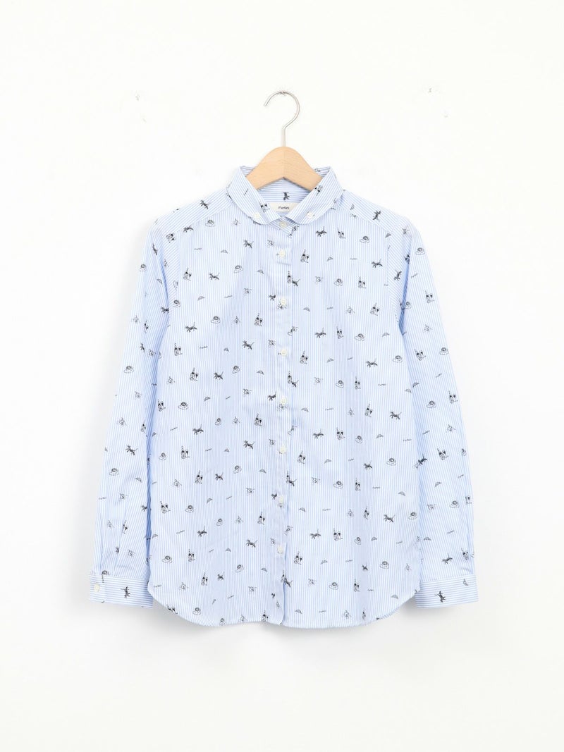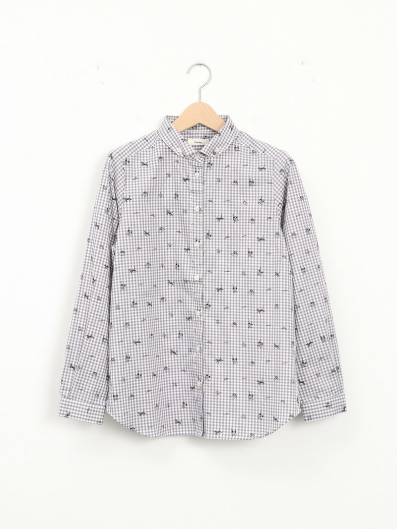 ボタンダウンなのに丸襟の珍しいシャツ。 これからのシーズン、カーディガンやベストのインナーにも。合わせやすい柔らかい素材です。ブルーはストライプ、グレーはギンガムに小さくプリントされた可愛い柄がおすすめのポイントです。