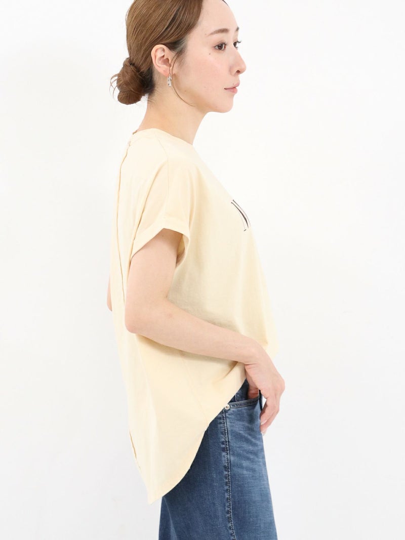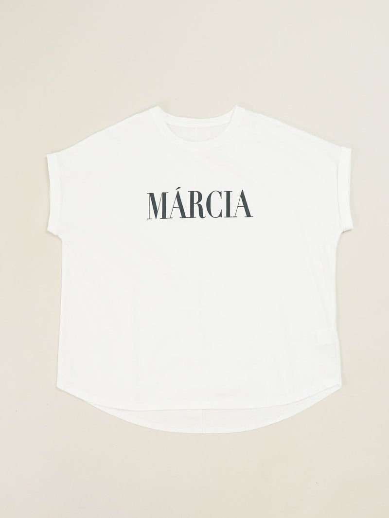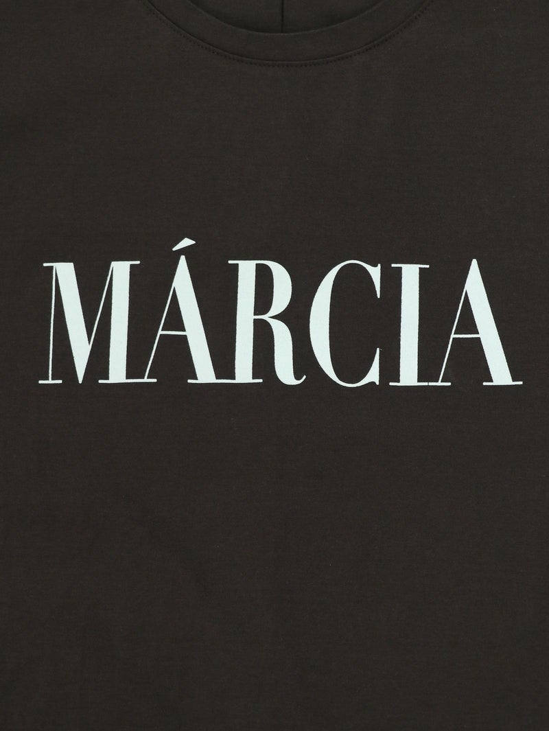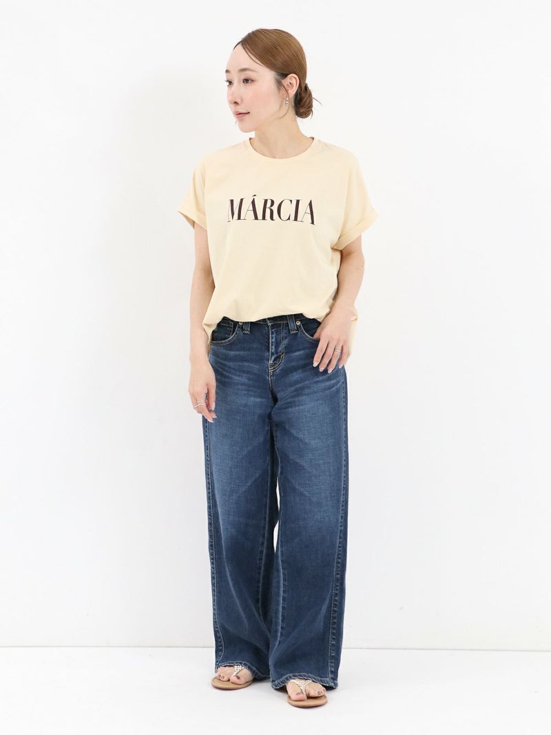 MICA人気のヘムラウンドTシャツ。 クリアな表面感が特徴の綿を使用。ロールアップした袖口やカーブしたヘムラインが1枚でもサマになります。今シーズンの雰囲気に合わせたカジュアル過ぎない印象で配色にもこだわった1枚です。 MARCIA(マーシャ)=人物の名前