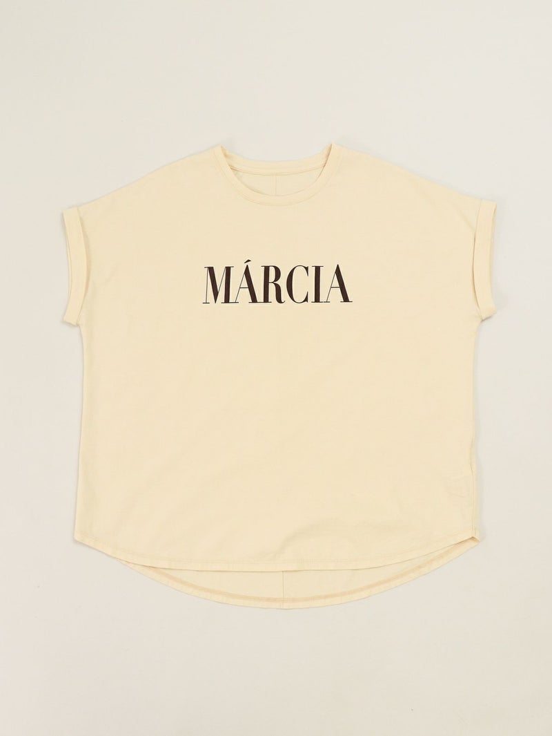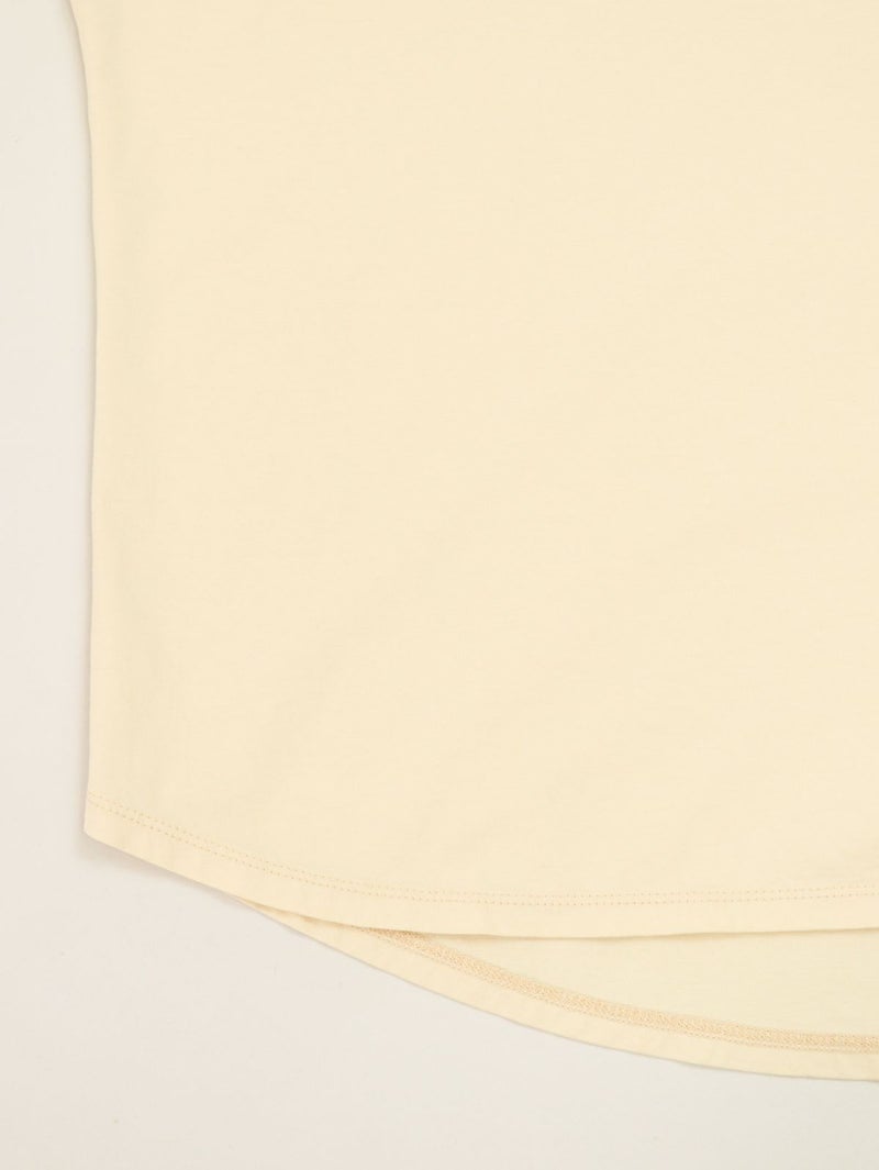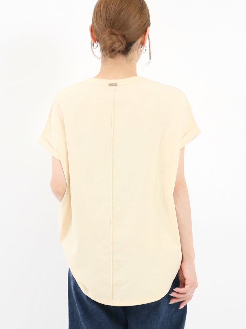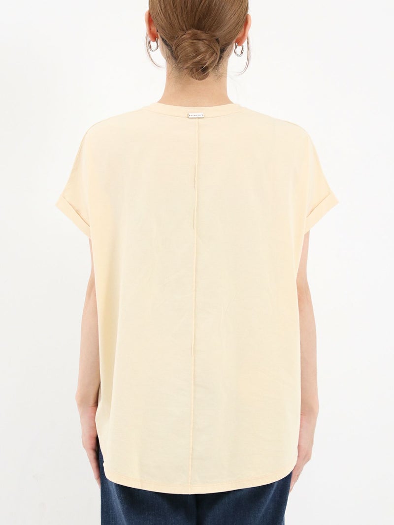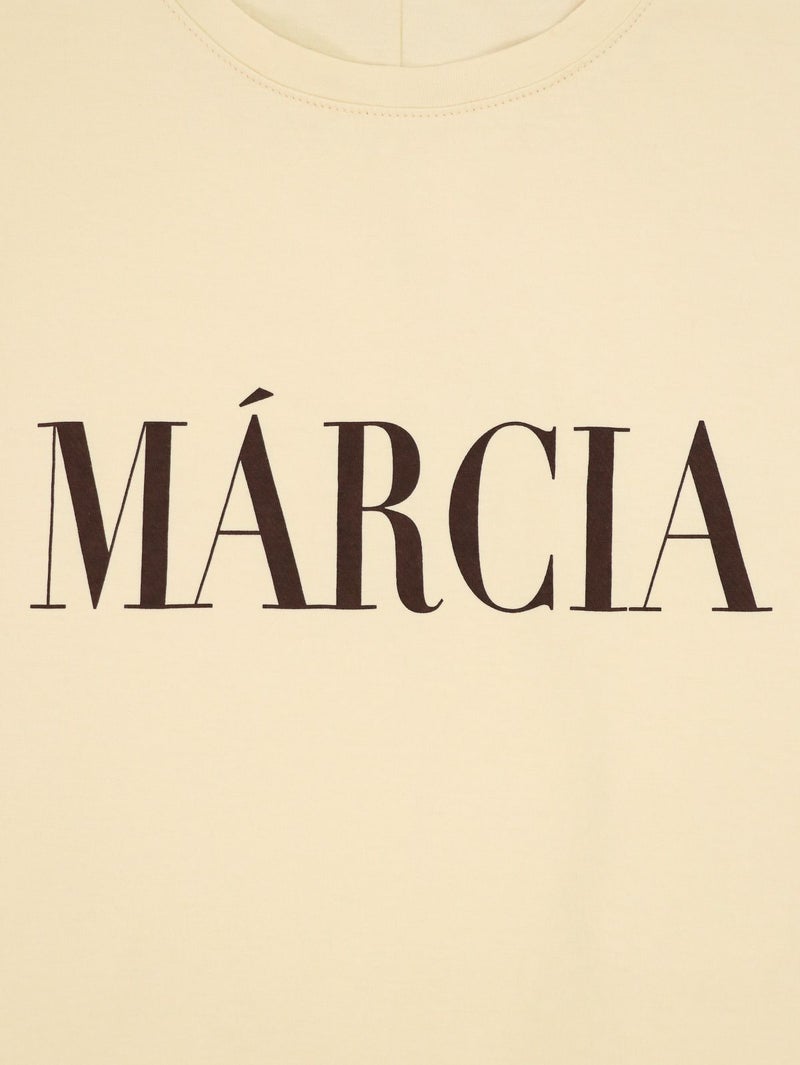 MICA人気のヘムラウンドTシャツ。 クリアな表面感が特徴の綿を使用。ロールアップした袖口やカーブしたヘムラインが1枚でもサマになります。今シーズンの雰囲気に合わせたカジュアル過ぎない印象で配色にもこだわった1枚です。 MARCIA(マーシャ)=人物の名前
