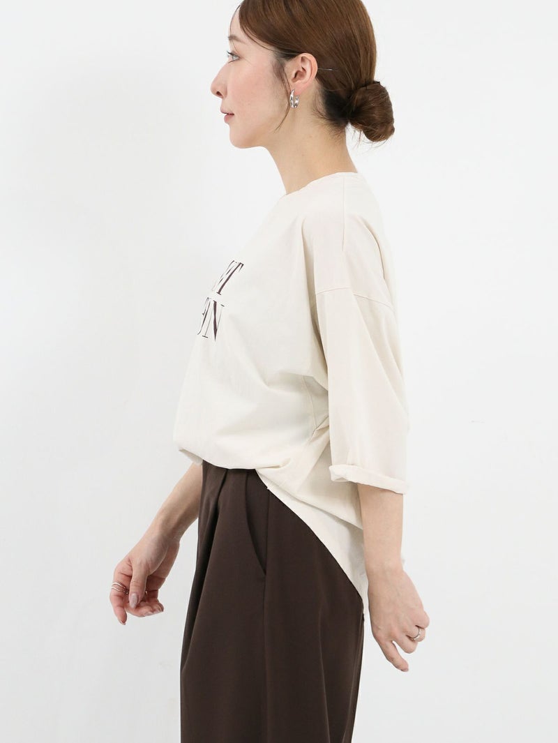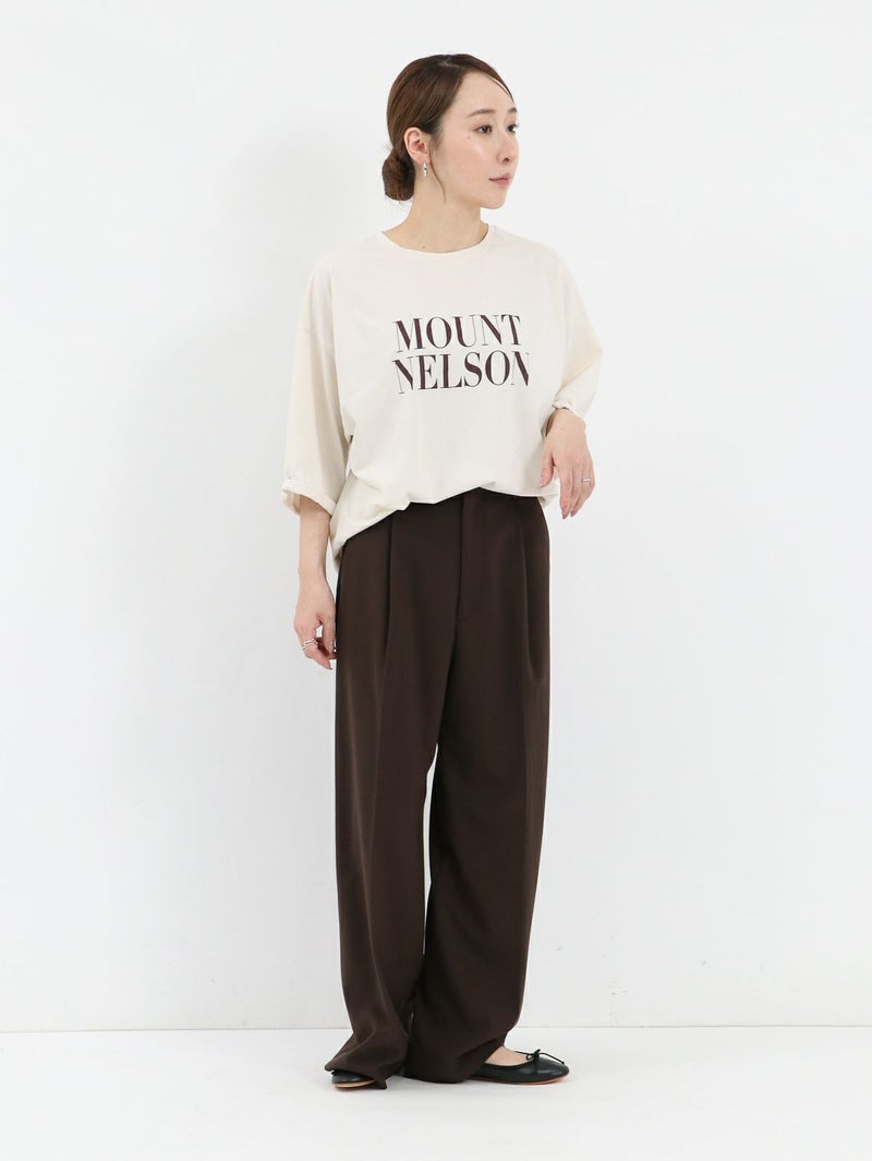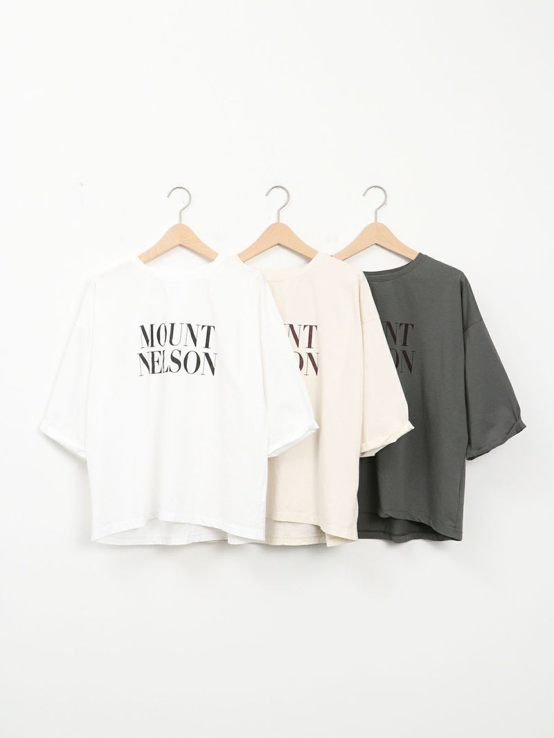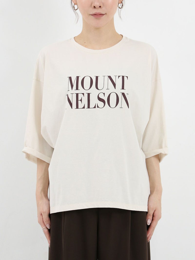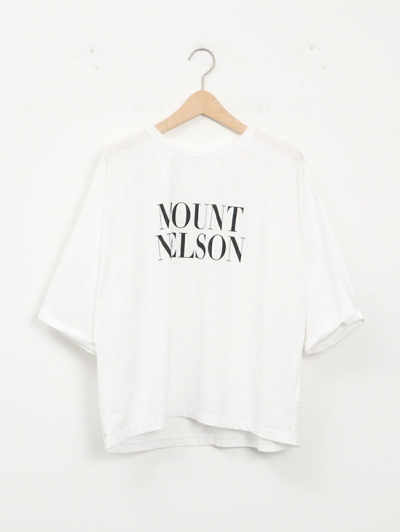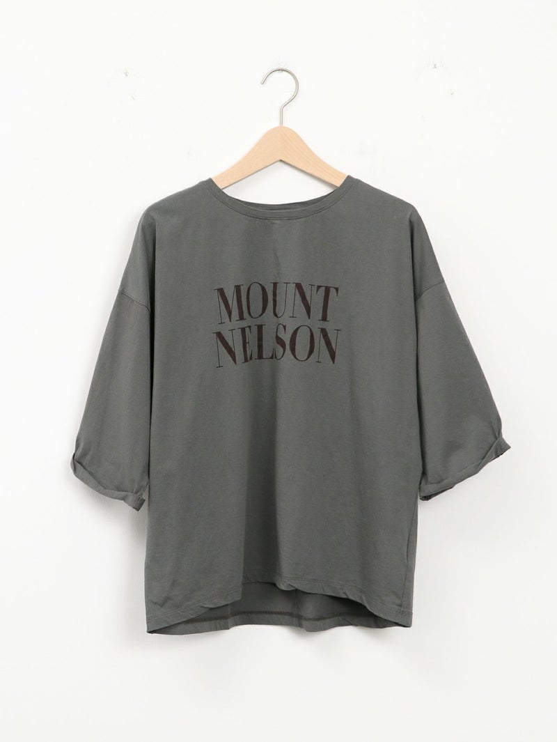 季節の変わり目に重宝する人気の5分袖ロゴプリントTシャツ。 大人の女性に着こなしやすい華奢なロゴデザイン。袖口がロールアップされたようなデザインでこなれ感があります。やや後ろ下がりのシルエットにすることで一枚で着ても様になります。 MOUNT NELSON(マウントネルソン)=オーストラリア タスマニアにある山