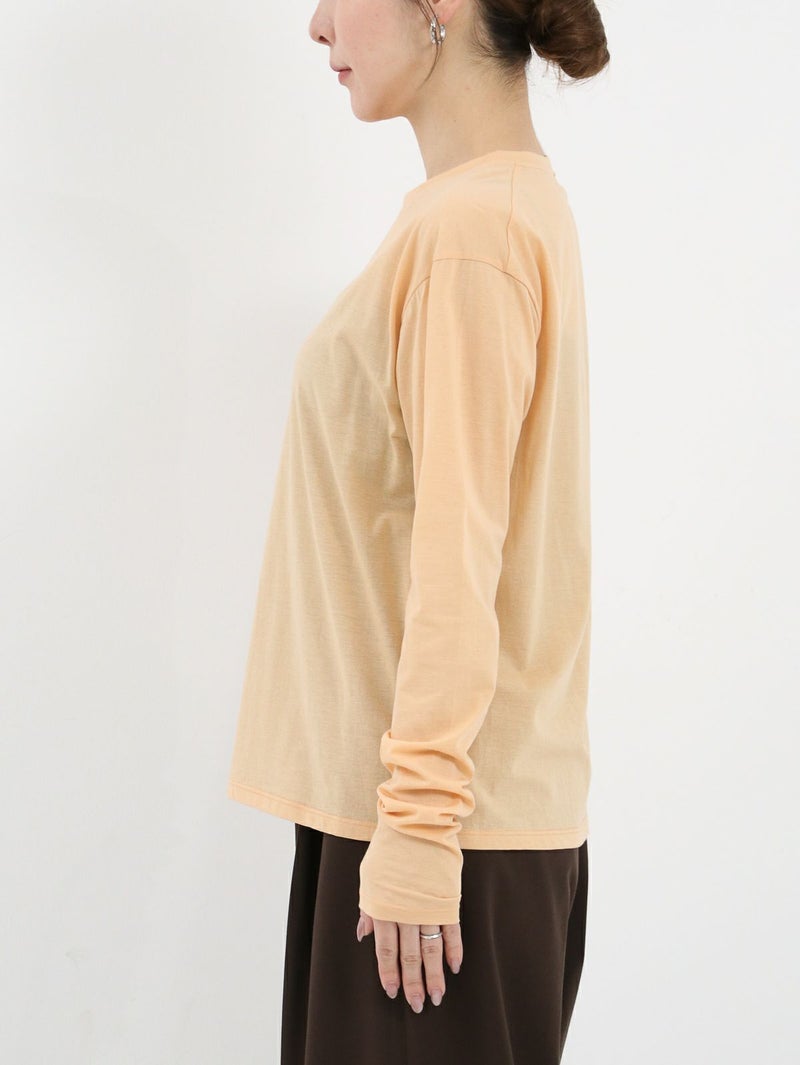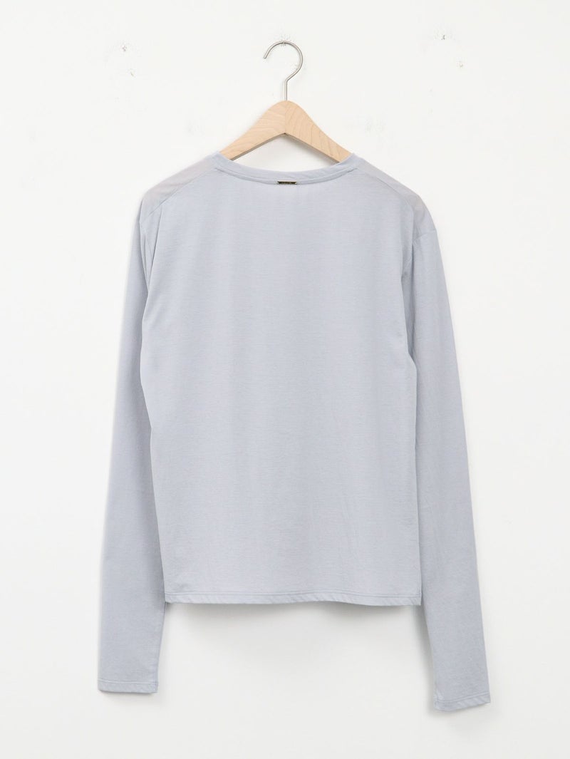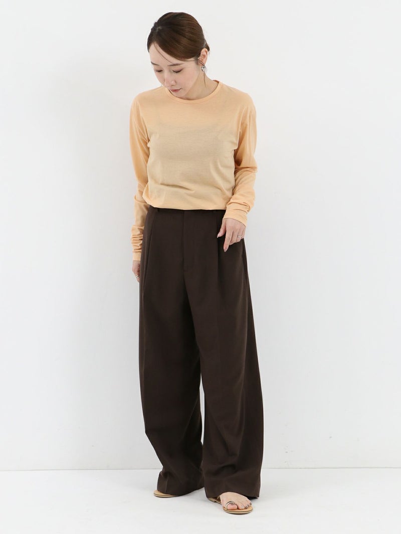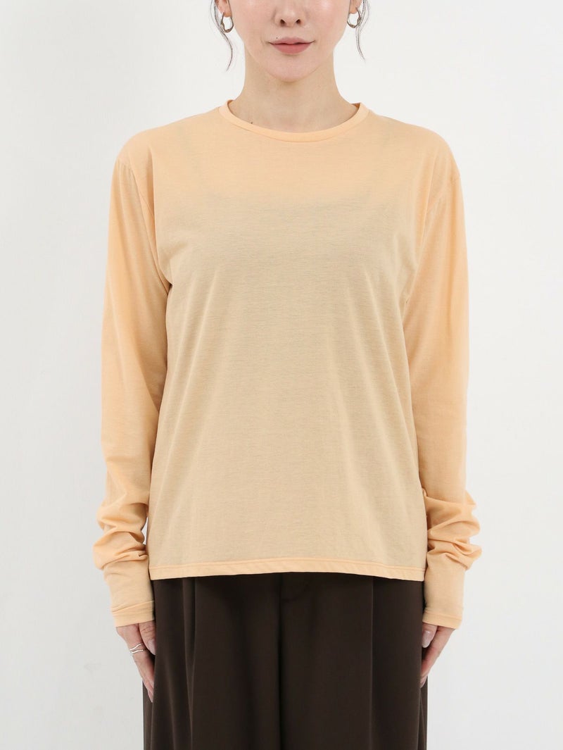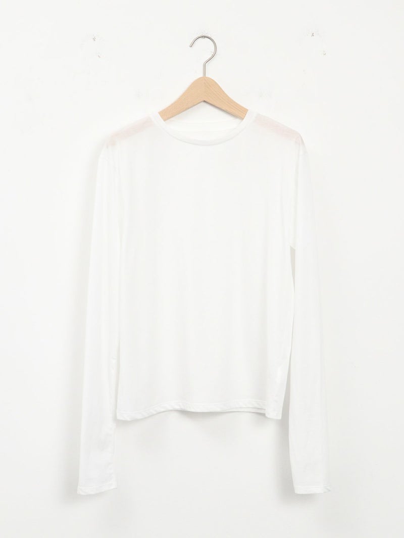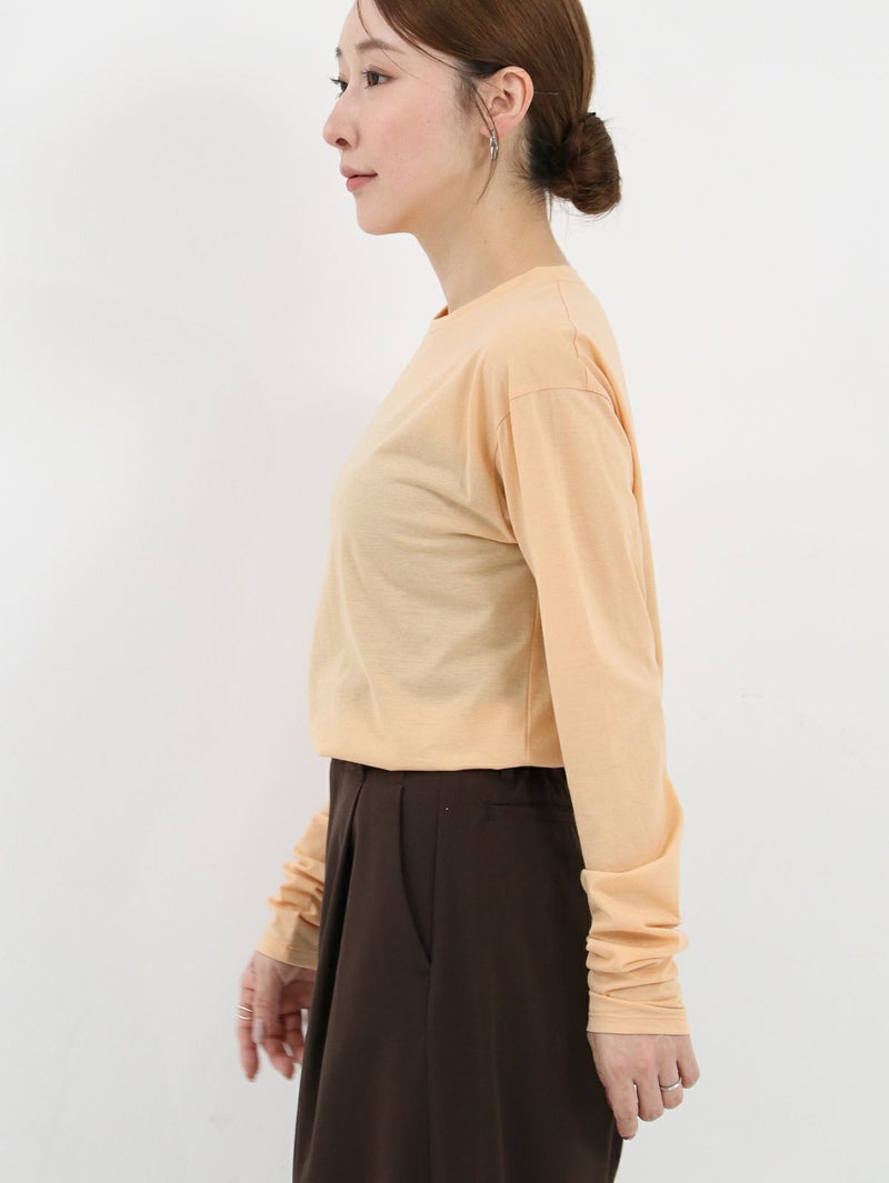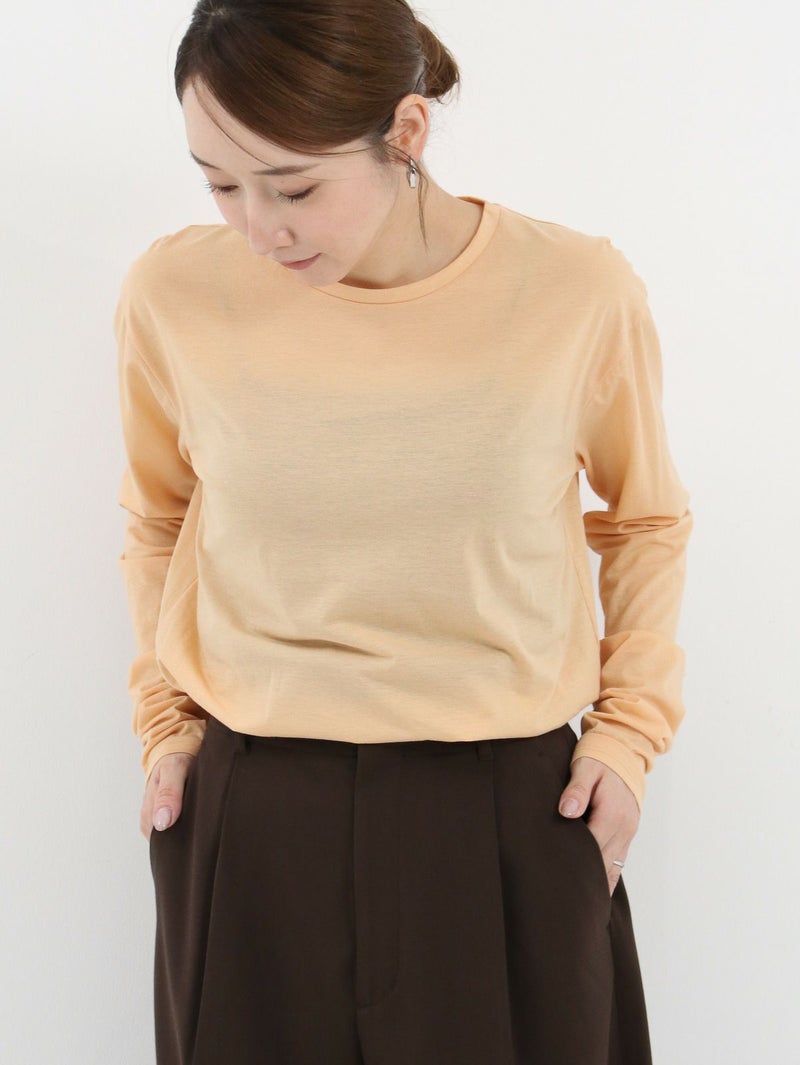 ワードローブに加えたい着回し力抜群のシンプルなシアーカットソー。 程よくゆとりのあるサイズ感が魅力で、インナーとしてはもちろん、一枚着でシアー感を楽しむ着こなしもおすすめ。長めの袖丈に仕上げているので、シャツ、スウェットやニットなど袖からチラ見せするレイヤードスタイルにも最適です。