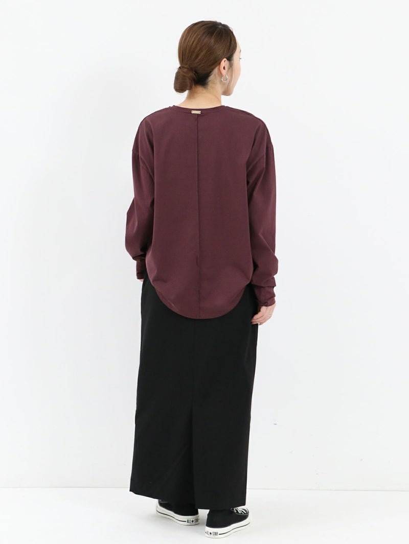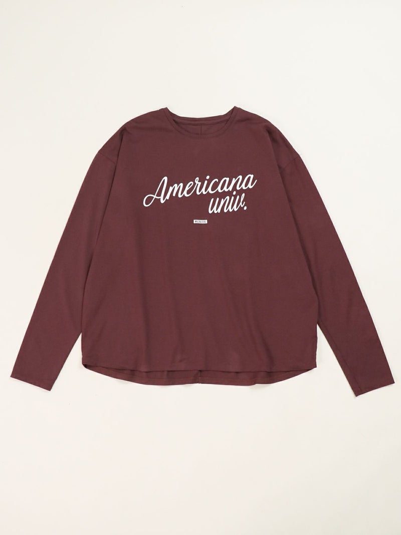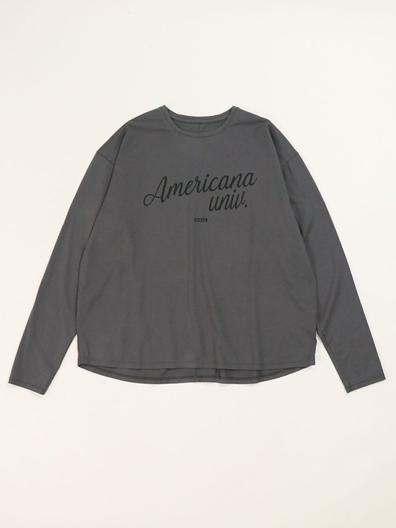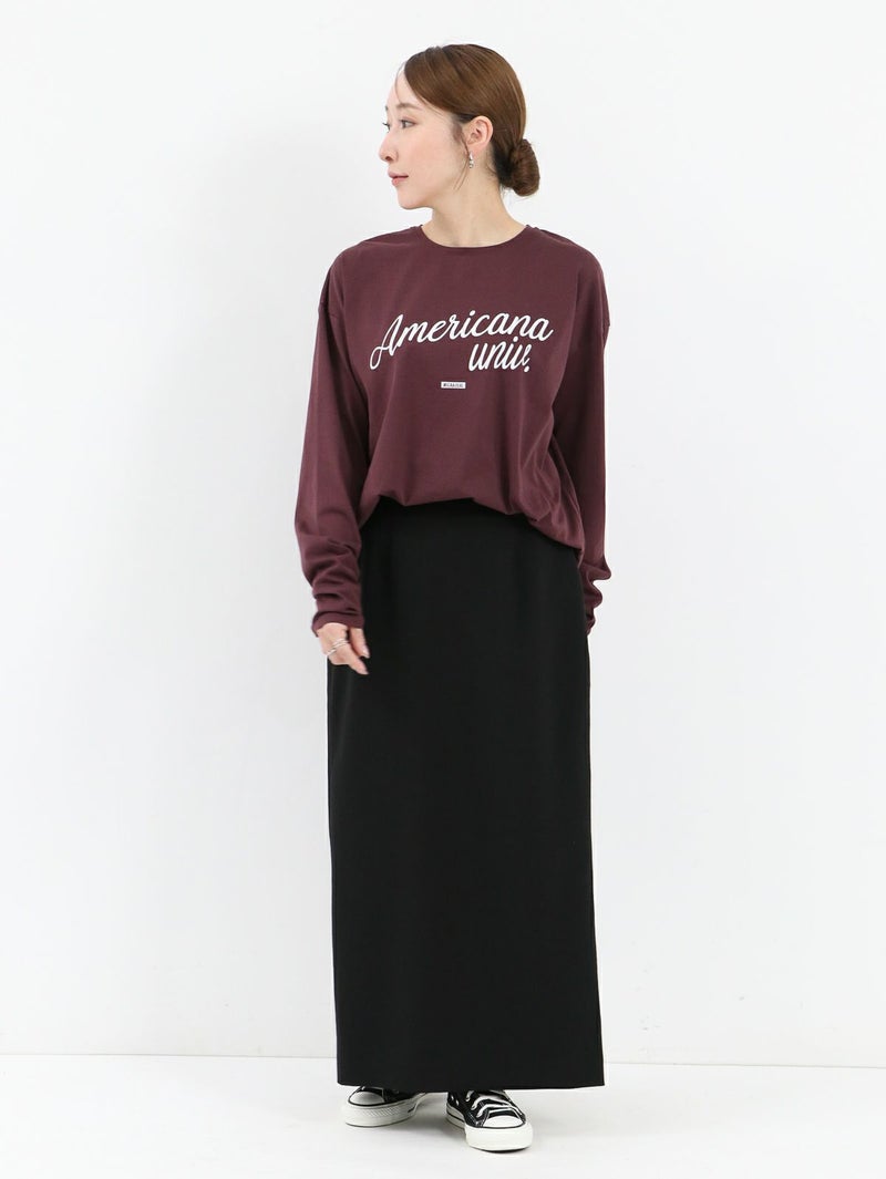 AMERICANA×MICA&DEALコラボレーションTシャツ。 MICA&DEAL定番のヘムラウンドロングTシャツにAMERICANAのロゴを胸元に施し、袖口には刺繍ロゴを入れてポイントに。カジュアルスタイルはもちろん、スカートと合わせてフェミニンに仕上げたり、アクセサリーなどと合わせてシックに着こなしていただくのもおすすめです。