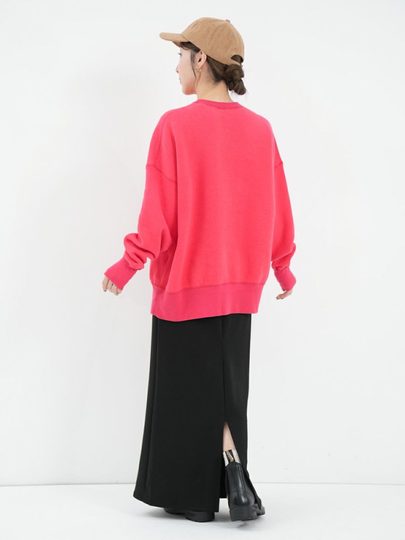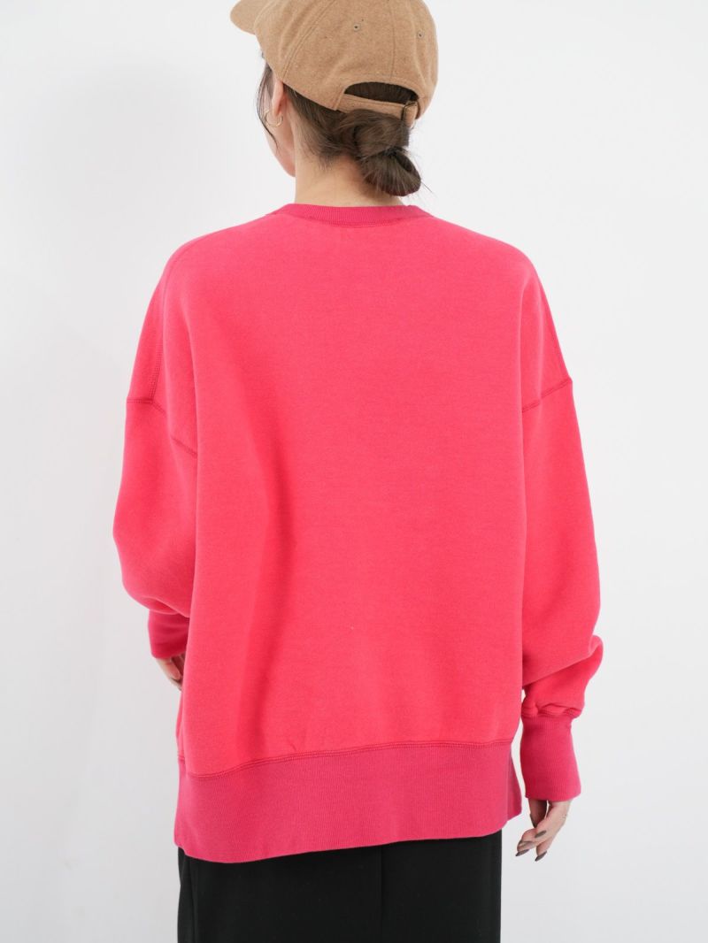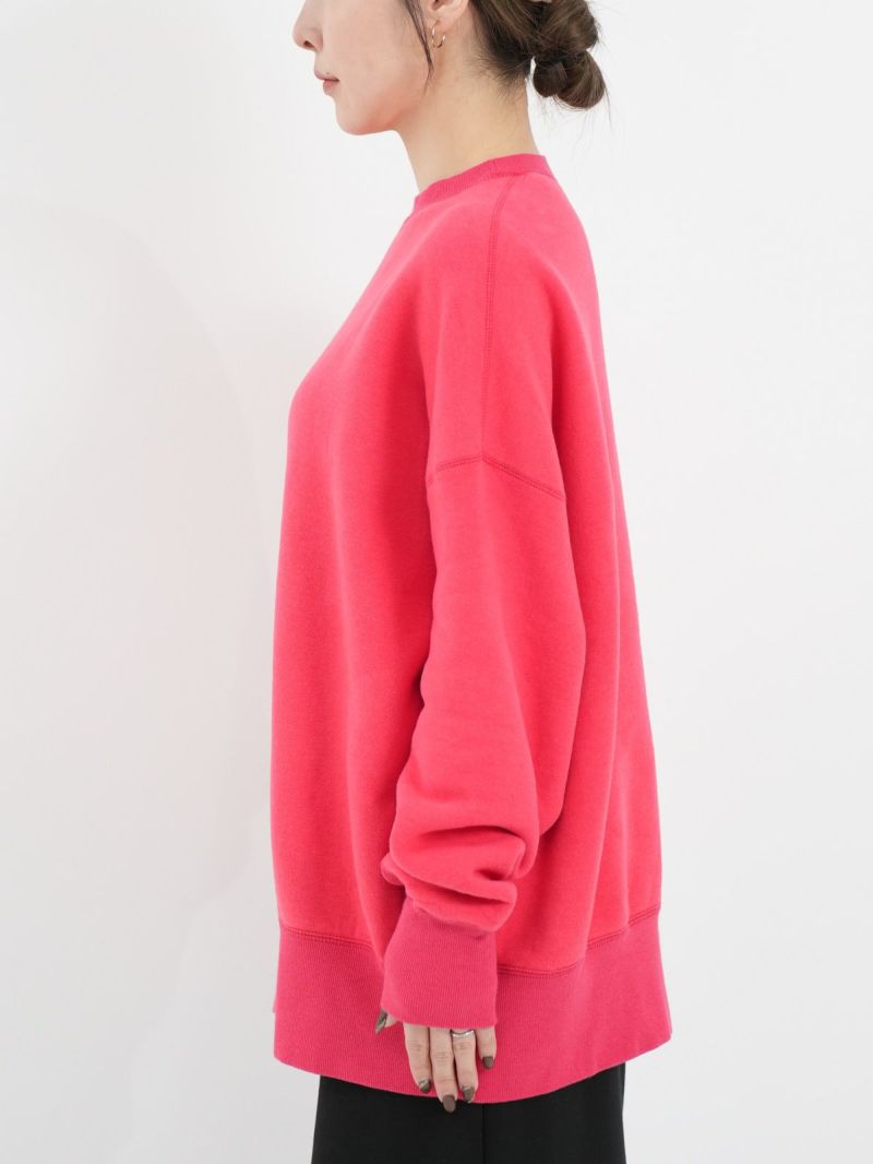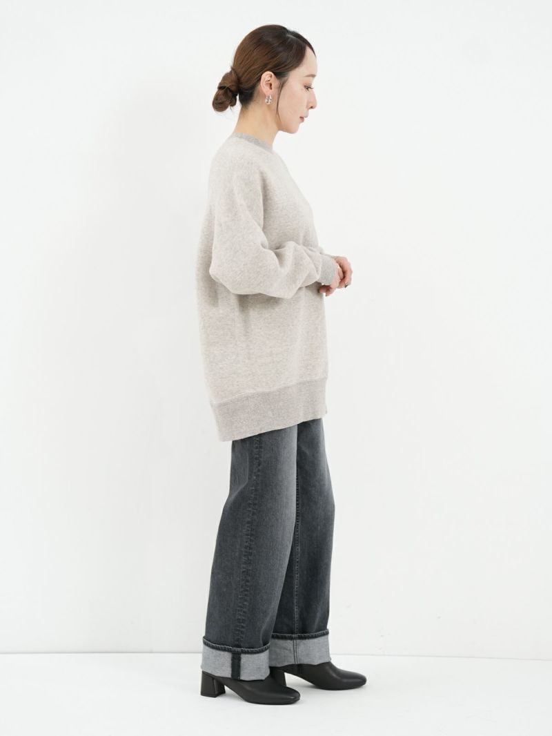 表も裏も両面起毛することで滑らかで優しさのある極上の肌触りのプルオーバー。 リヨセル素材(再生セルロース繊維で環境にも配慮した素材)とコットンの混紡糸を使用した裏毛は、特殊な編み立てにより、肉厚ながら固くならずふっくらとした風合いが魅力的です。 長めの着丈に仕上げ、ドレッシーなボトムスともスタイリングしやすいトップス。シンプルにデニムに合わせても大人っぽくなり、スカートにも合わせやすい一枚。