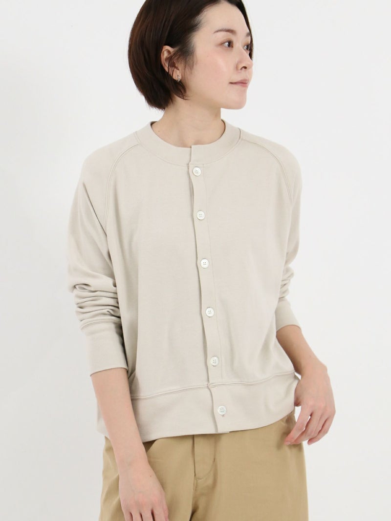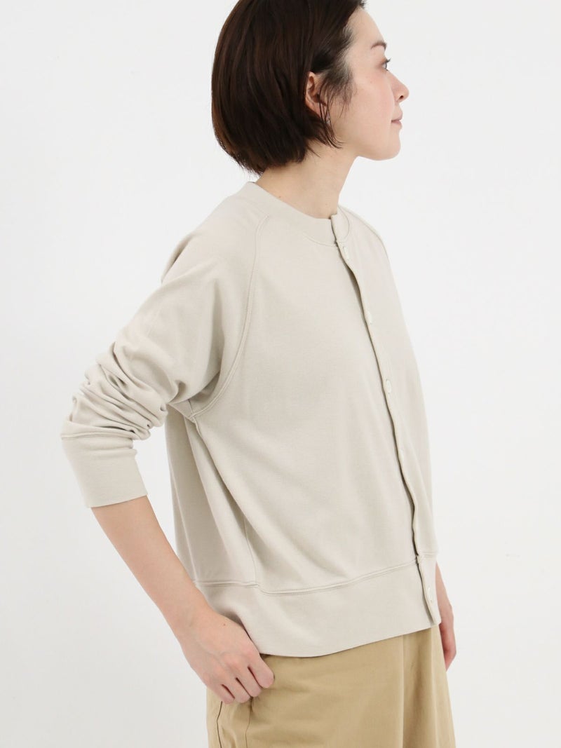 柔らかく着心地の良いトロワフライス生地のカーディガン。 スウェットより軽やかでリラックス感のある身頃は、動きやすくデイリー使いにぴったりの1枚です。ボタンの留め方次第で雰囲気の異なるスタイリングを楽しめます。