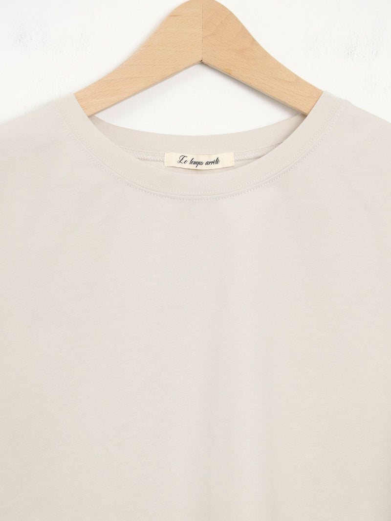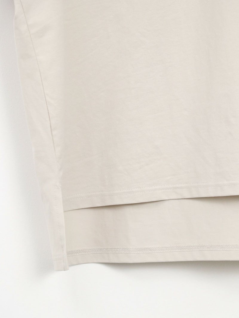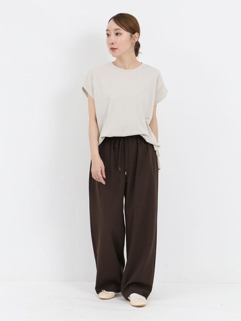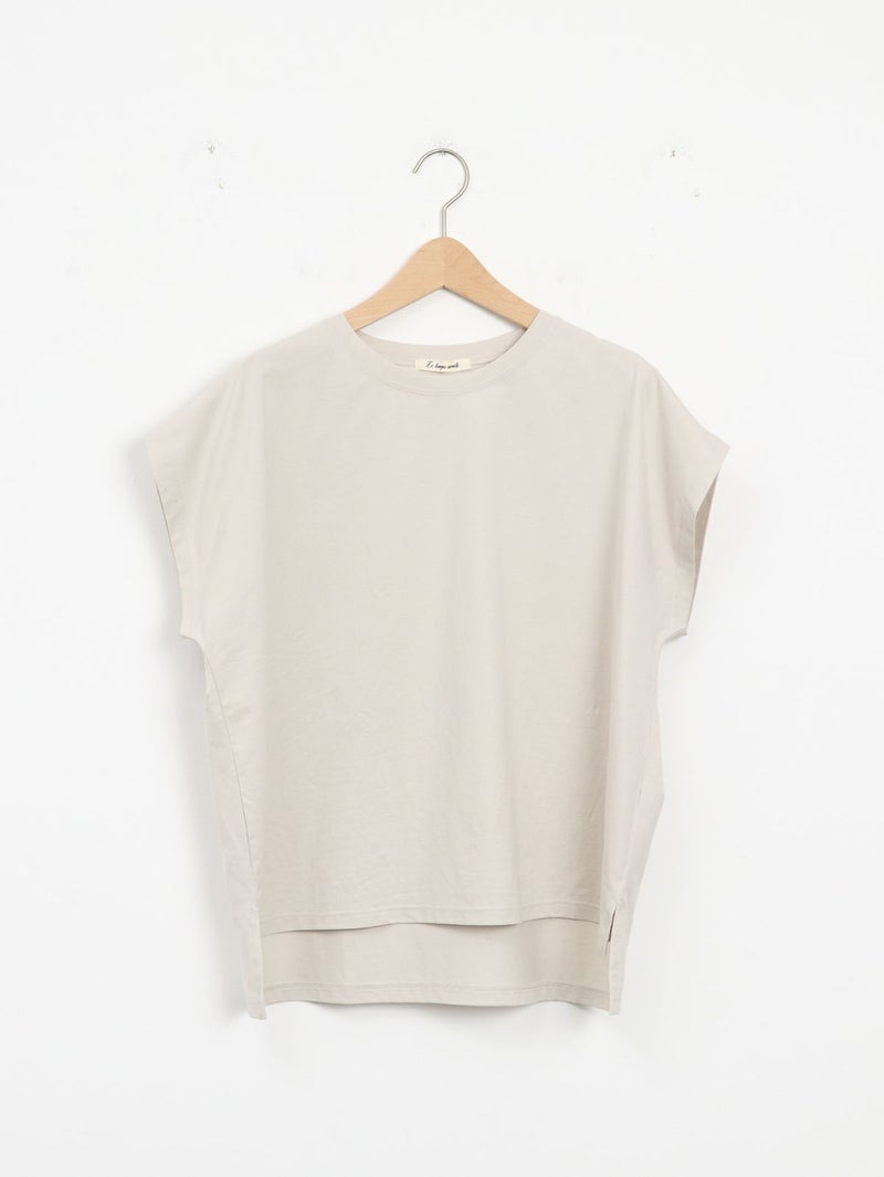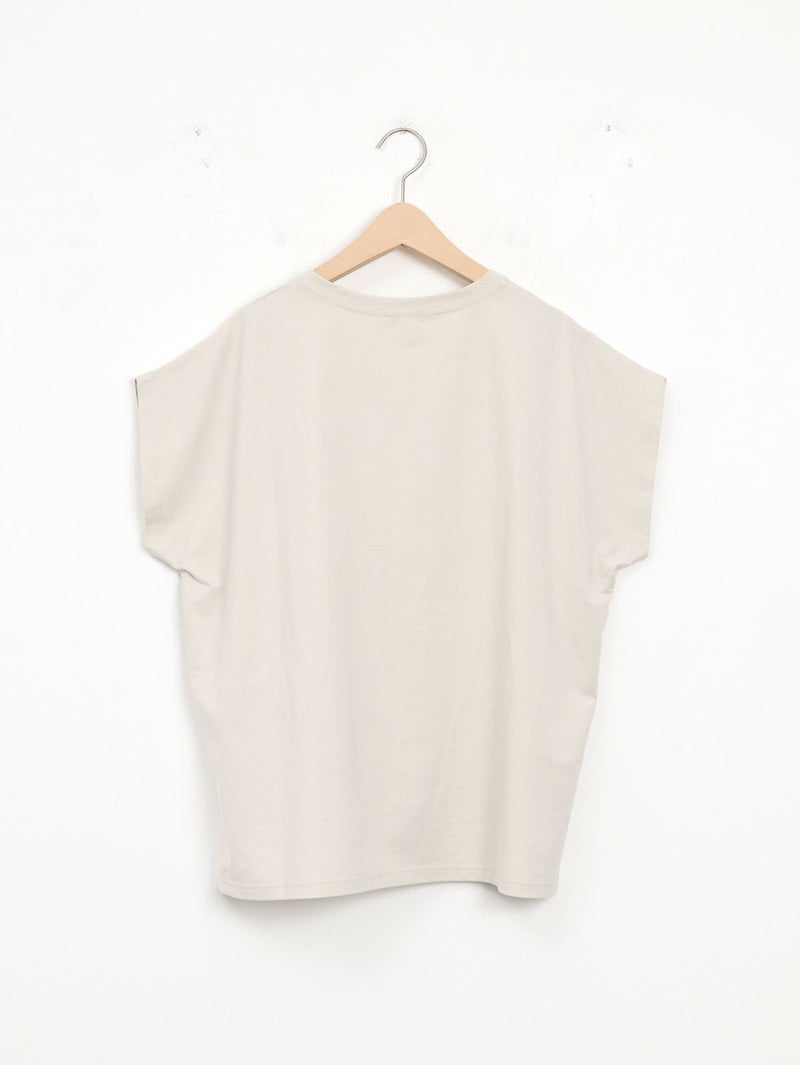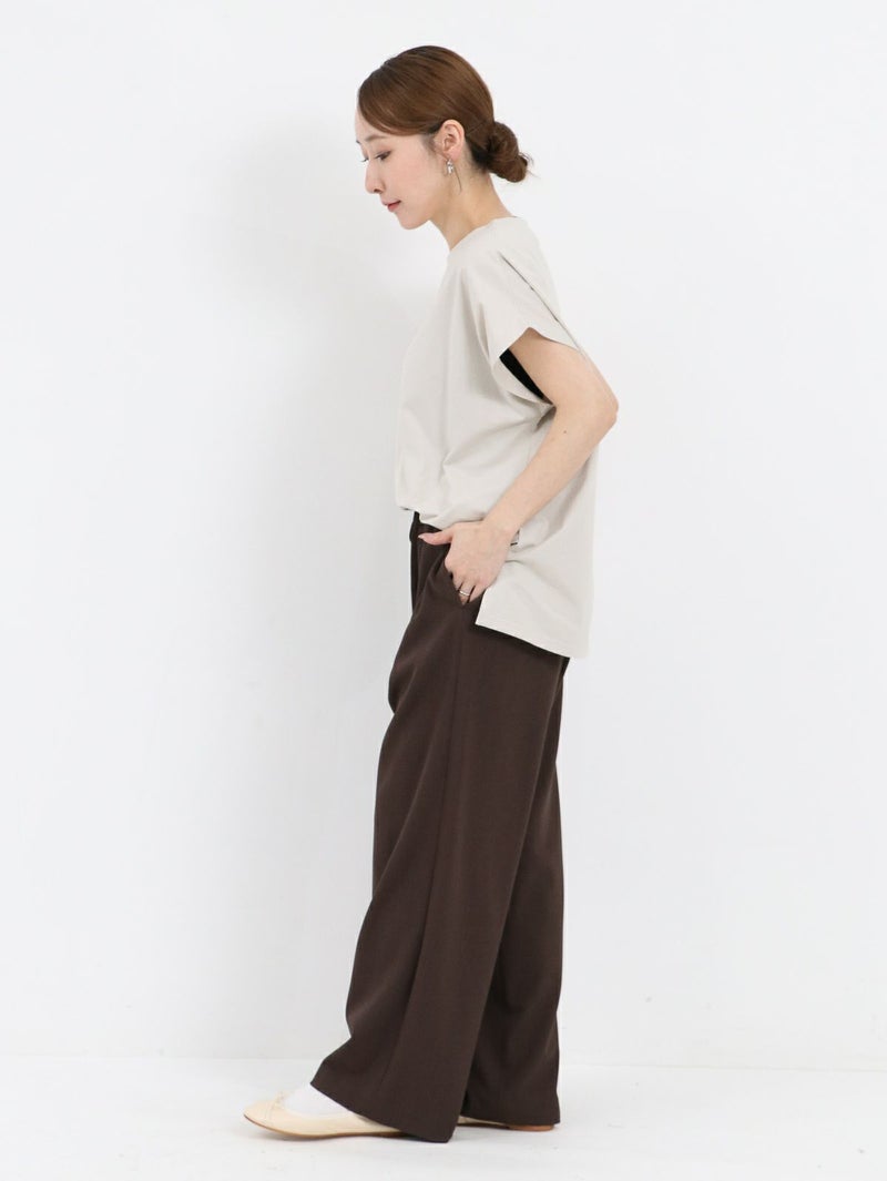 まだ暑いこの季節に気持ちの良い接触冷感機能素材。ゆったりとしたシルエットですが、これからのシーズン、シャツやカーディガンのインナーに活躍する一着です。