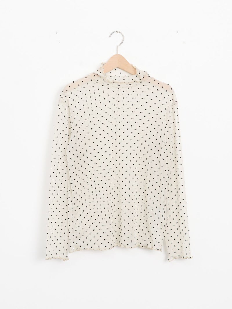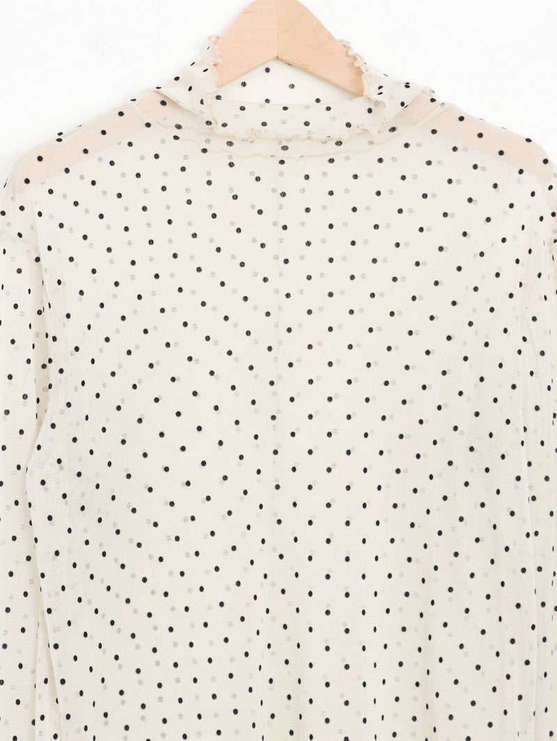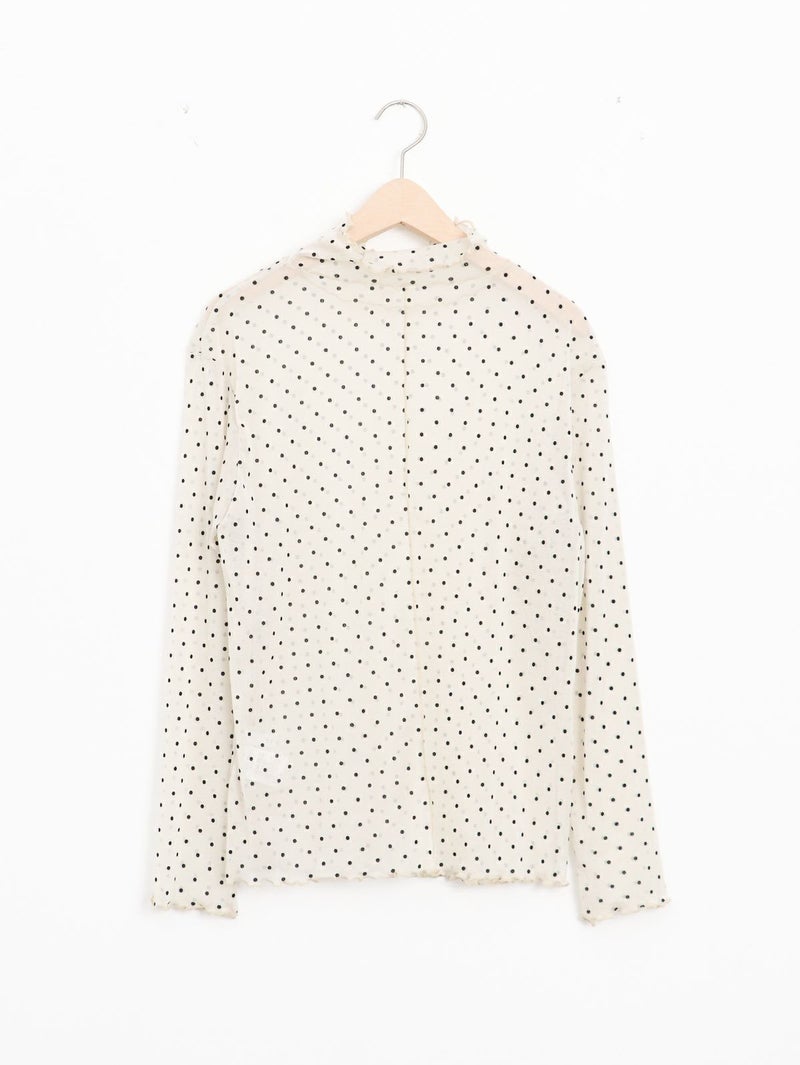 レイヤードにピッタリな透明感のあるドットシアートップス。 チュール使いで大人っぽく上品な印象になります。1枚あるとコーディネートの幅が広がる汎用性の高いインナーです。