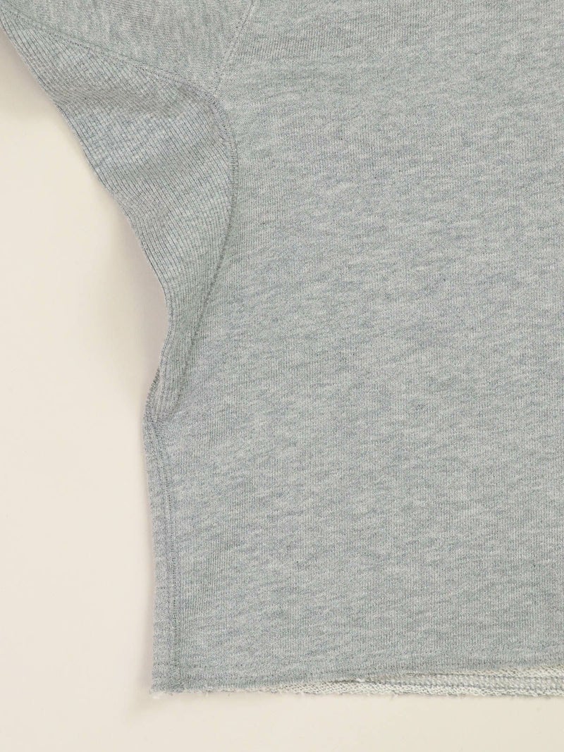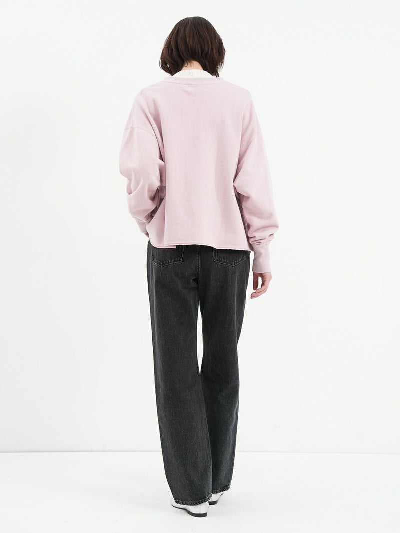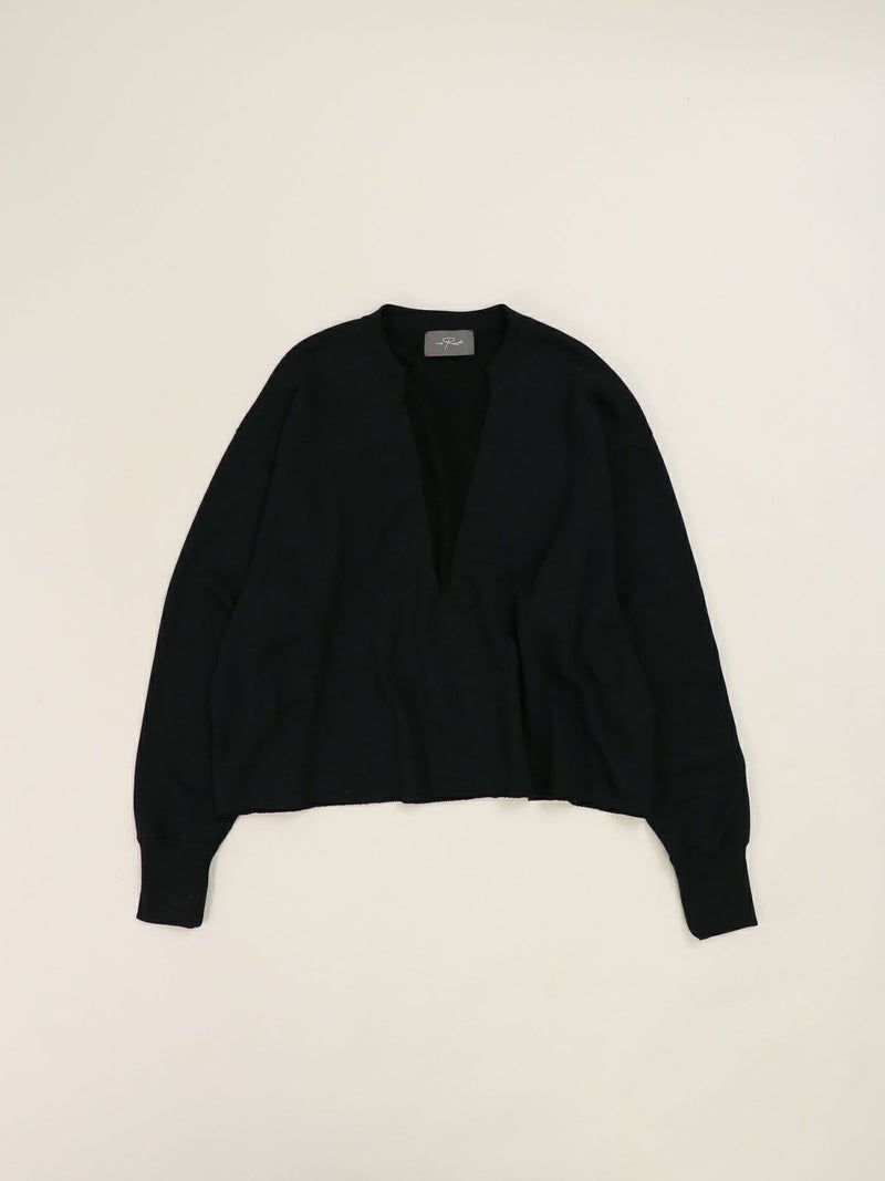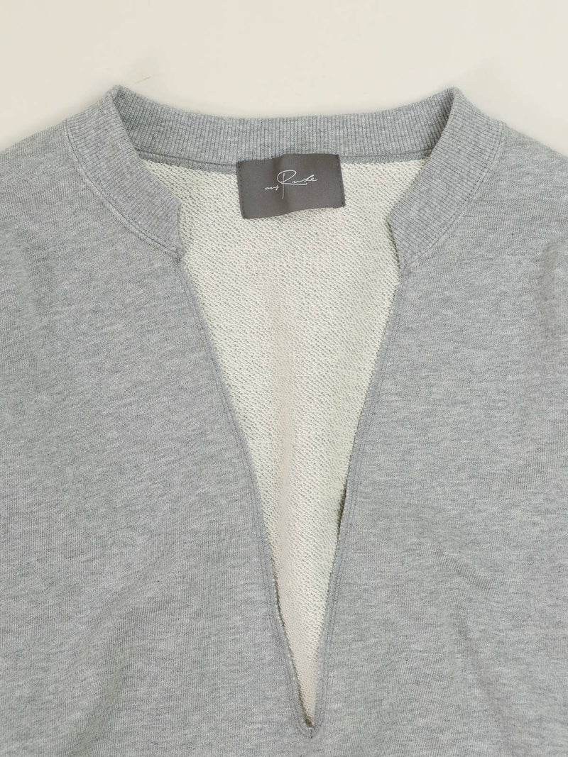 インナー次第で表情が変わる、深Vネックトップス。 大胆な深Vデザインで、合わせるインナーによって印象をアレンジできる1枚。クロップド丈を活かし、シャツやワンピースとのレイヤードも楽しめます。裾はカットオフ仕様で、さりげないこなれ感をプラス。タオルのようにパイル状に編み立てた柔らかな裏毛素材を使用し、適度な保温性と吸水性で蒸れにくく、快適な着心地です。