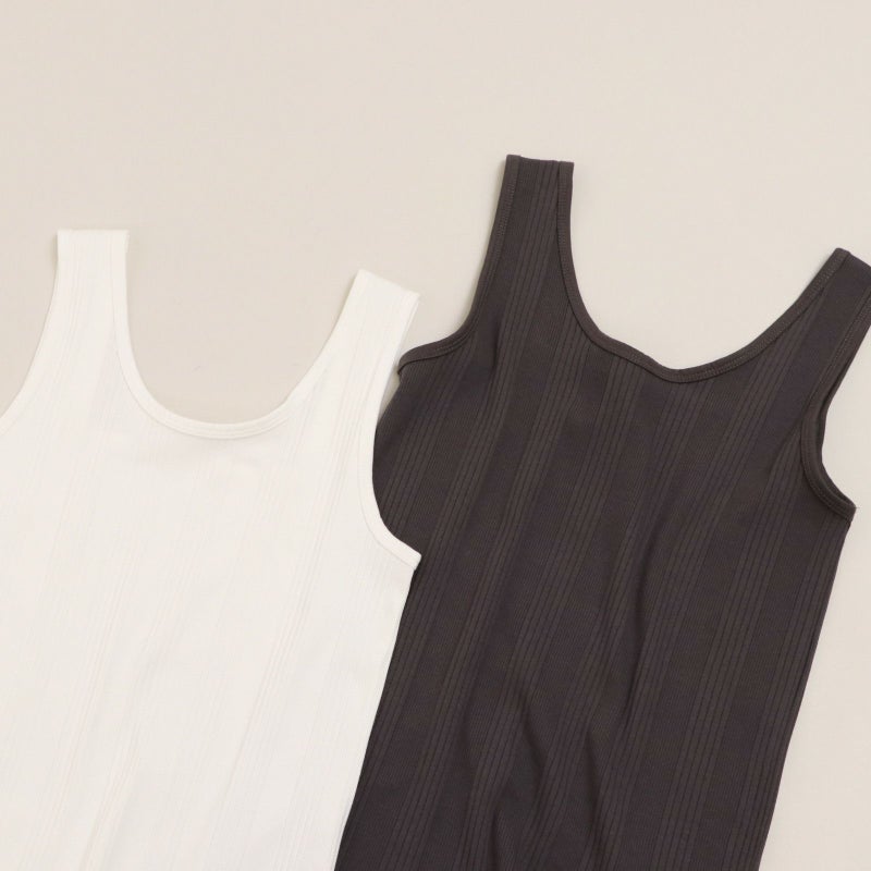 前後2WAYで着用可能なタンクトップ。 1枚でも、シアーなアイテムやシャツなどのインナーに活躍の幅が広いインナーとしておすすめです。
