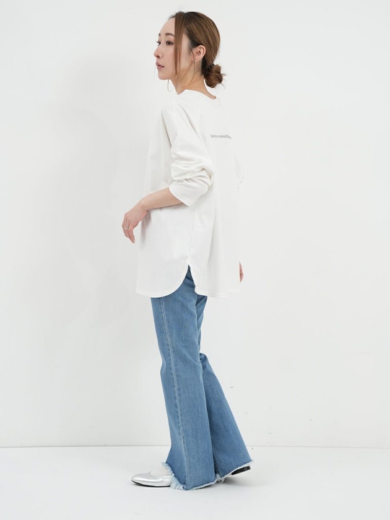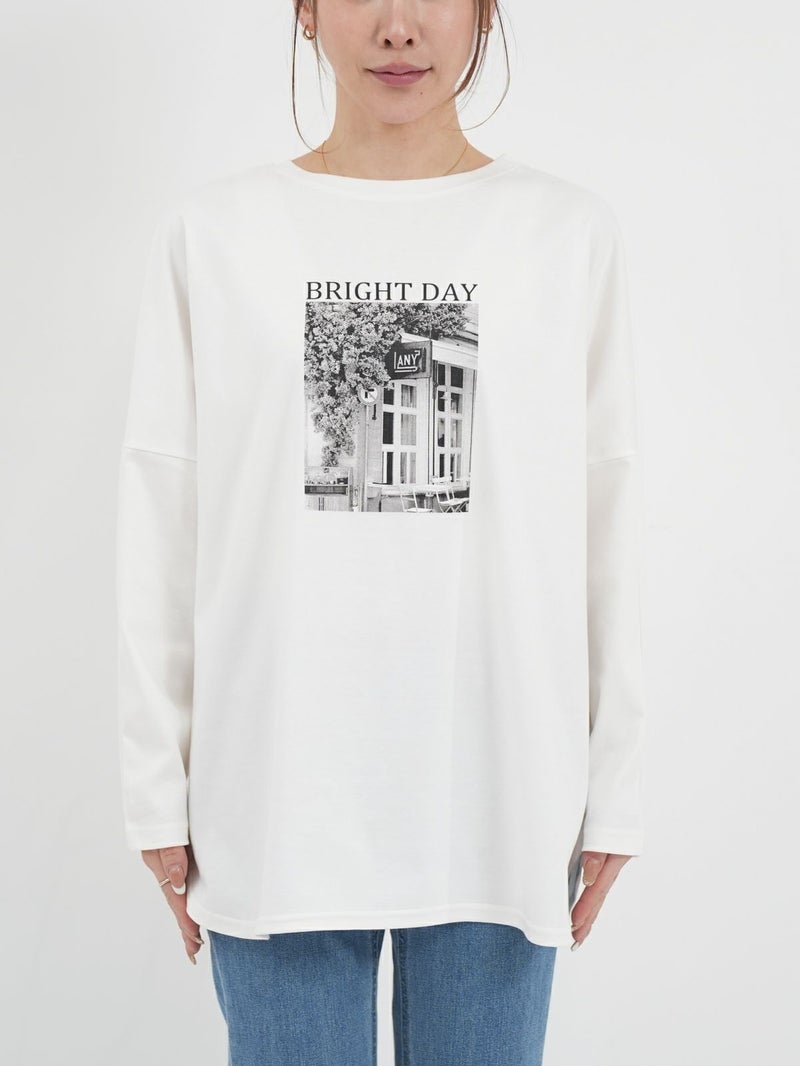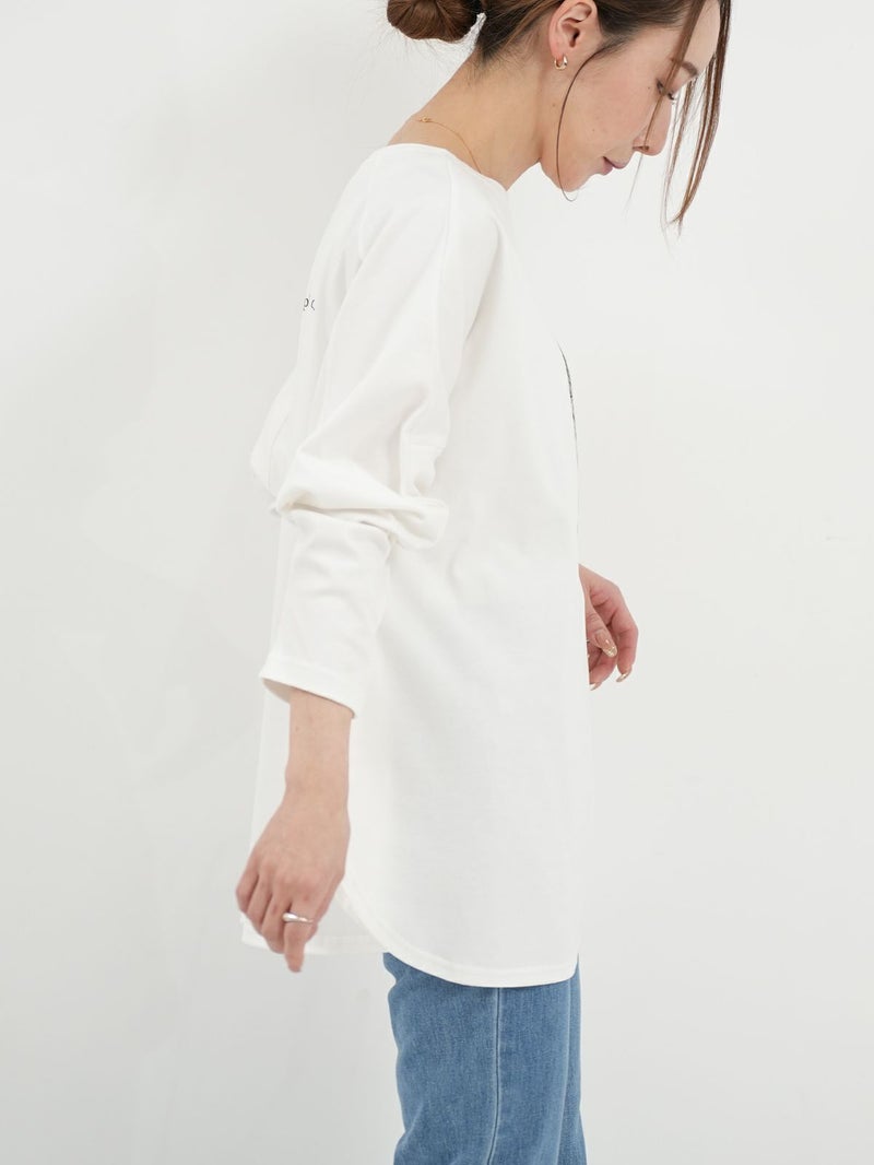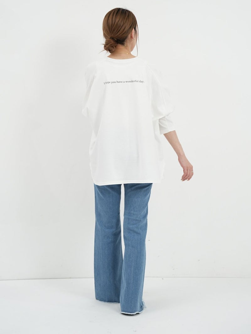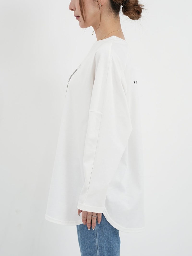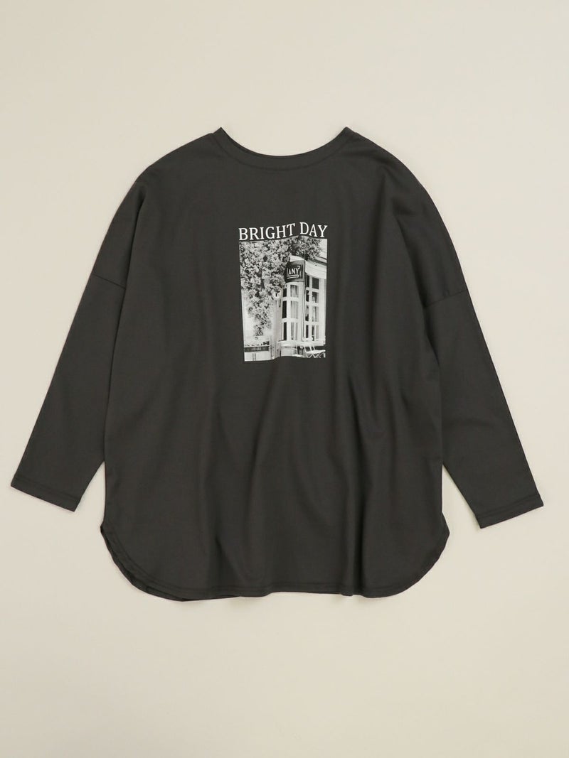 ゆったりリラックスフォルムのボディーを、フォトとレターの2WAYで着用できるカットソー。 フロントとバックを入れ替える事で、コーディネートに合わせて二つの雰囲気をチョイス出来る一着は、タックインもタックアウトも自在なシャツテールと、 一枚で着ても透け感が気になり難い、ジャージ素材の絶妙な厚さも特徴です。