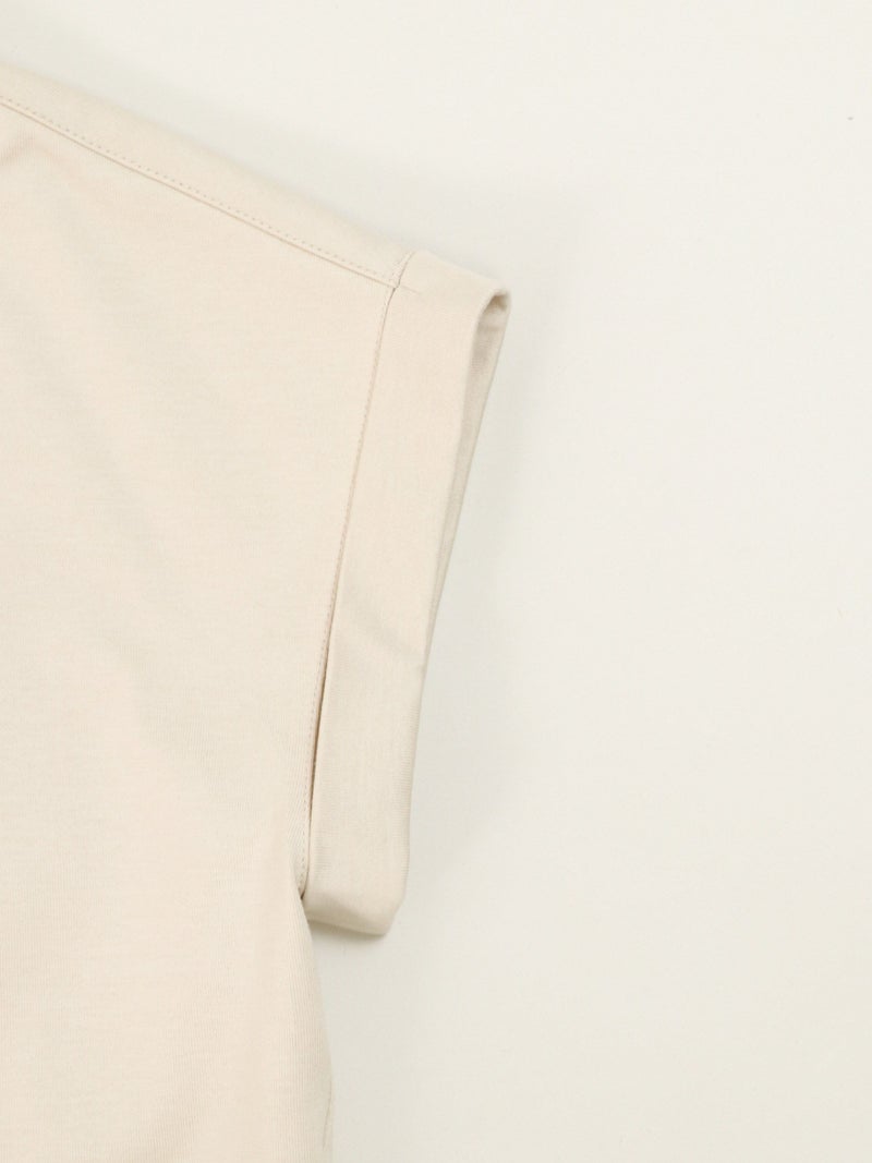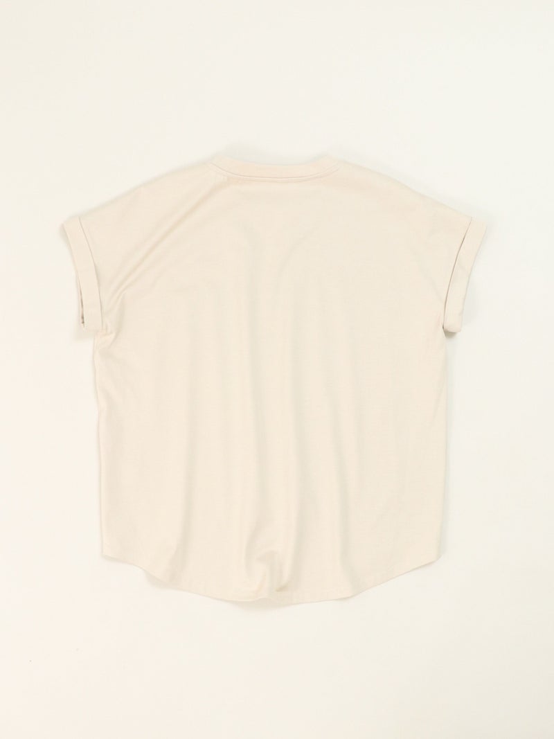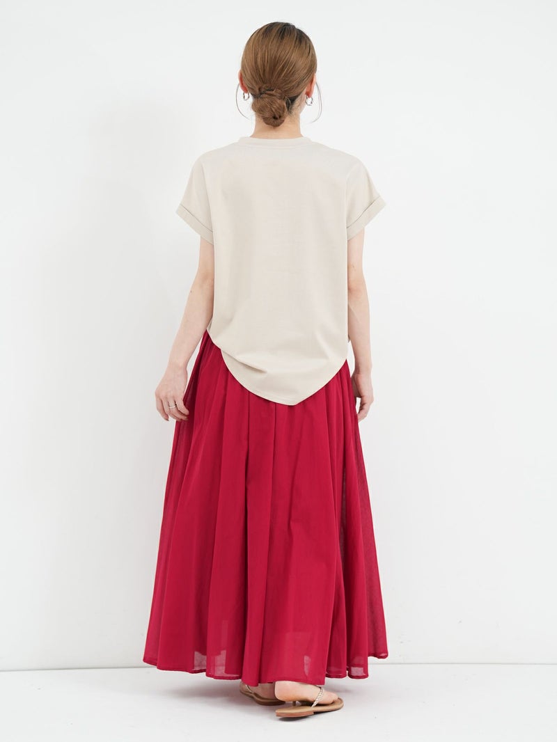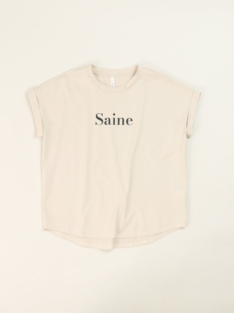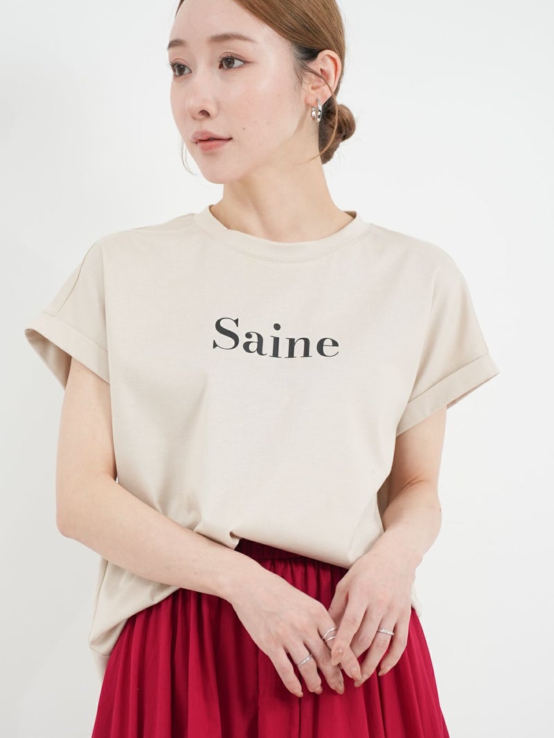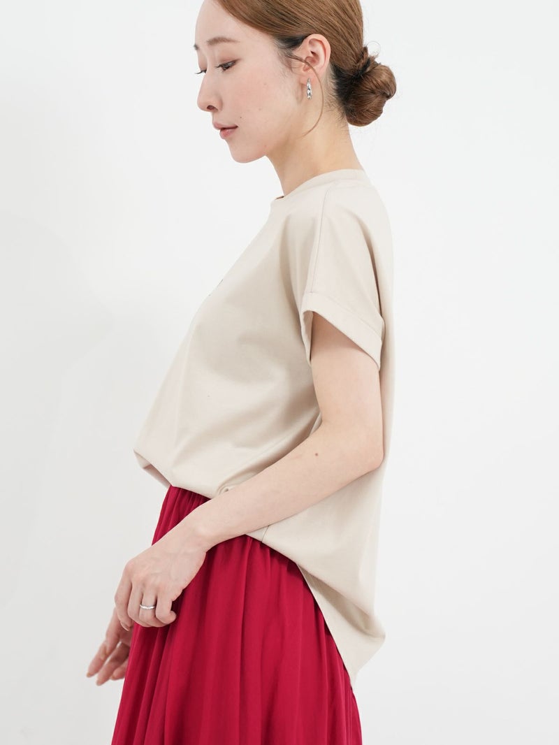 肩先を程良くカバーするフレンチスリーブがさりげなく女性らしいニュアンスをプラスしてくれるTシャツ。 胸元のロゴは主張しすぎずどんなスタイルにも馴染みやすいデザインでこれからの時期に活躍します。
