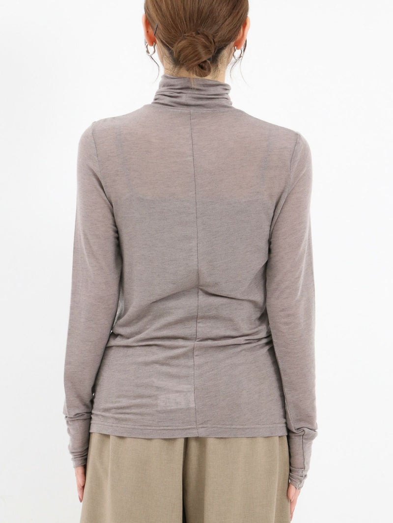 毎年好評のカシミアシルクタートルネック。 柔らかく滑らかな生地で薄手ながらも暖かく、伸縮性も優れているので程良いフィット感があります。袖口のメロウもポイントです。