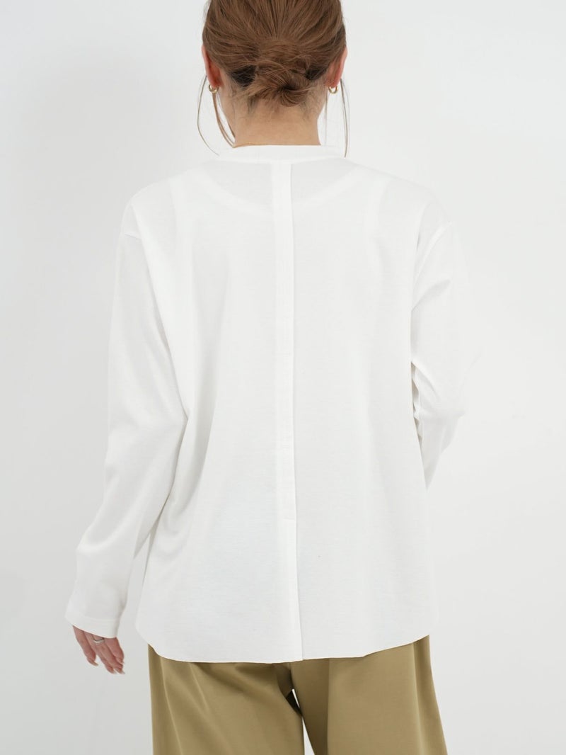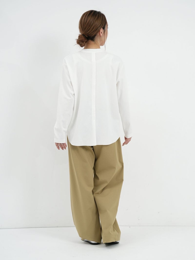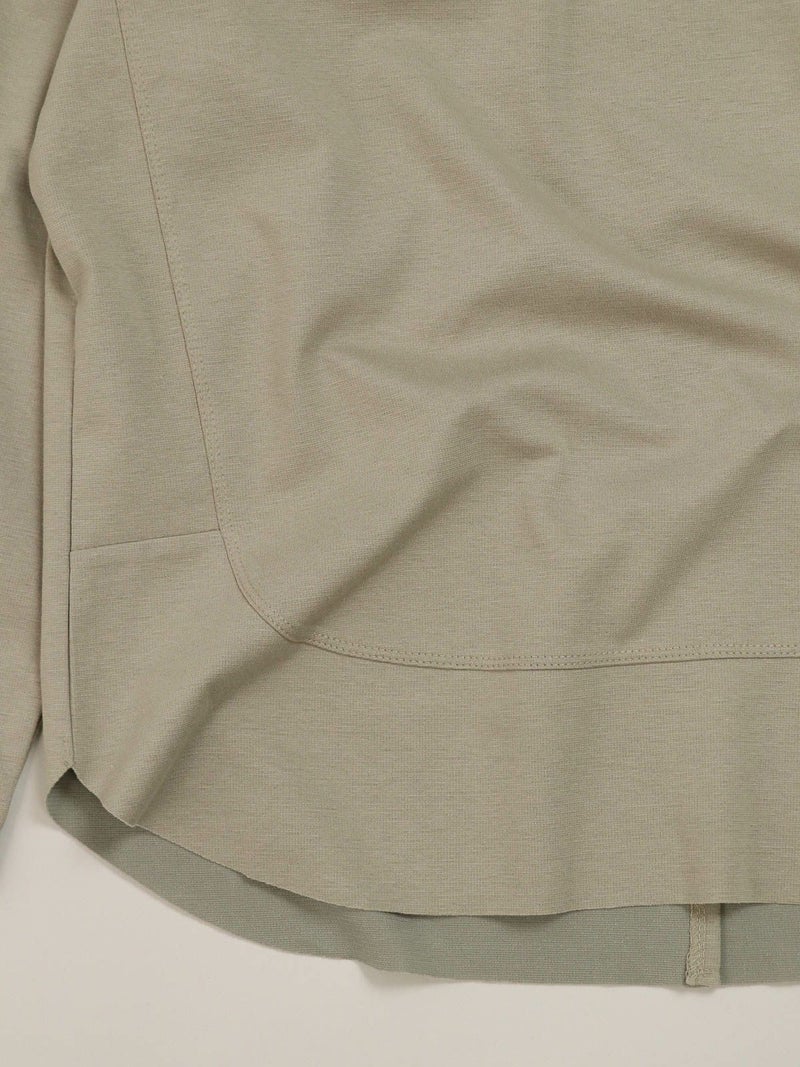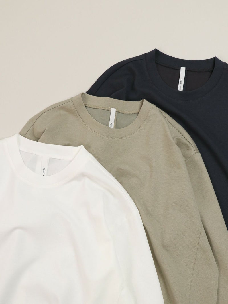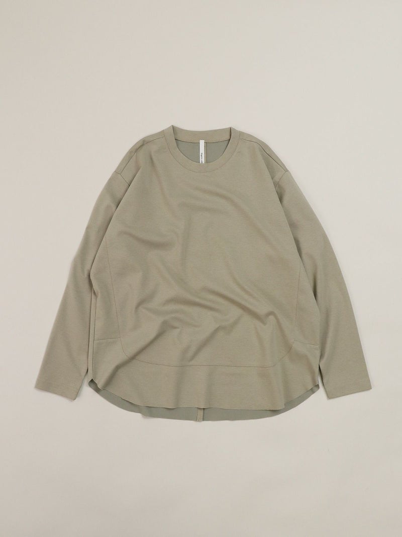 シンプルながらも表面感があり、カジュアル過ぎない大人の定番カットソー。 程よいストレッチの効いた素材は、肌触りも滑らかで着心地も抜群。バックスタイルに浅めのスリット入りで、1枚で着ても活躍します。