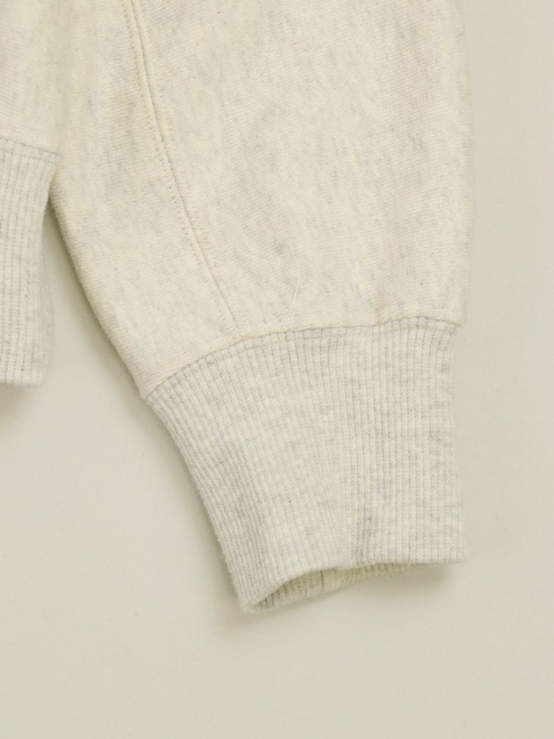 肌触り柔らかなスウェットプルオーバー。 ベビー裏毛で季節の変わり目に程よい生地感です。肩と袖に切り替えがあるのと、胸元のロゴがポイントです。