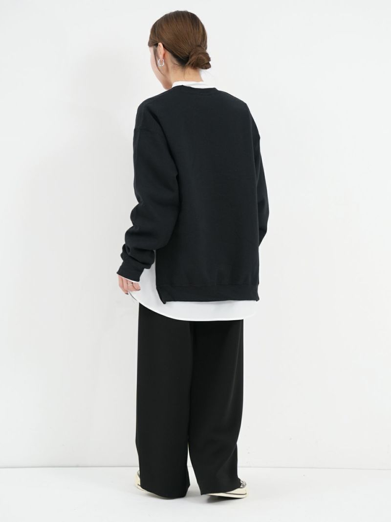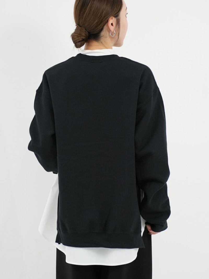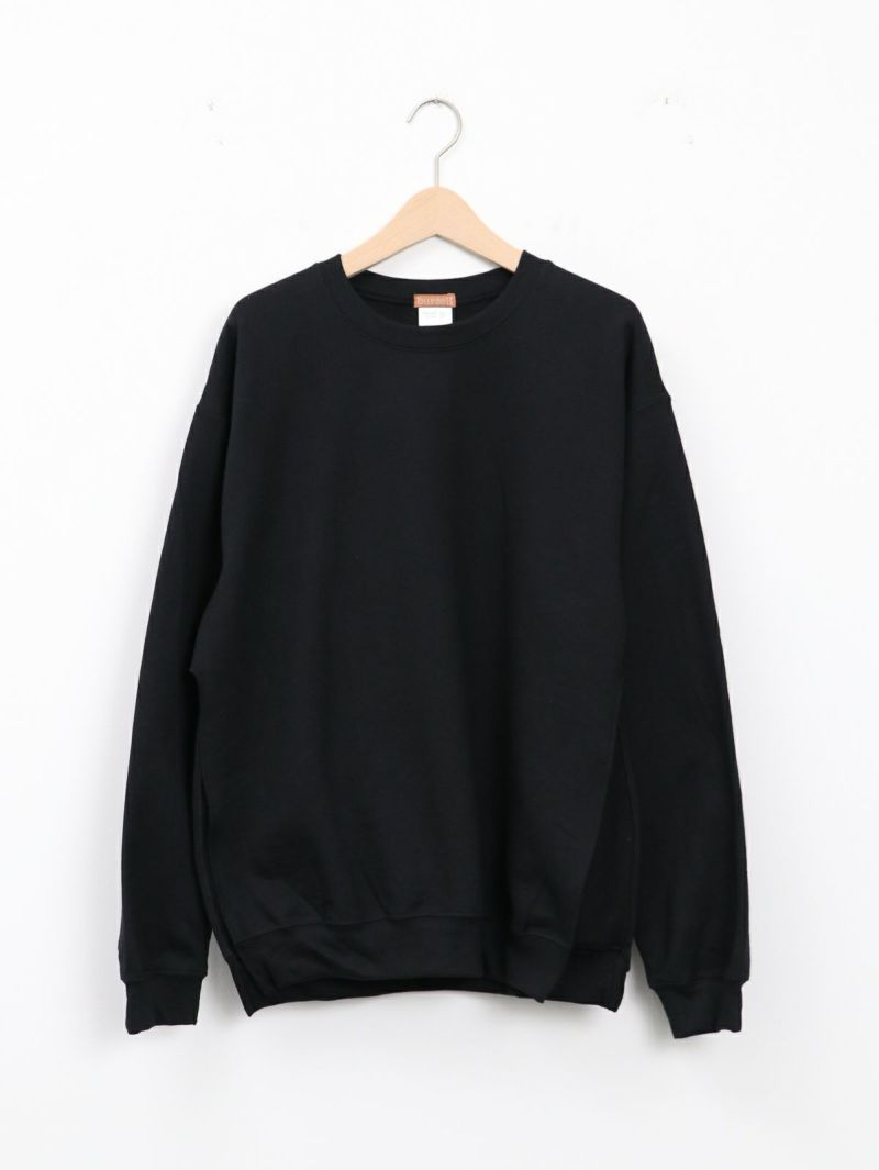 両サイドに深くスリットの入ったスウェットトップス。 コットン/ポリエステルの軽く暖かい裏起毛です。シャツやカットソーをレイヤードしたり、ワンピースの上に被って着たりと幅広いコーディネートに活躍します。