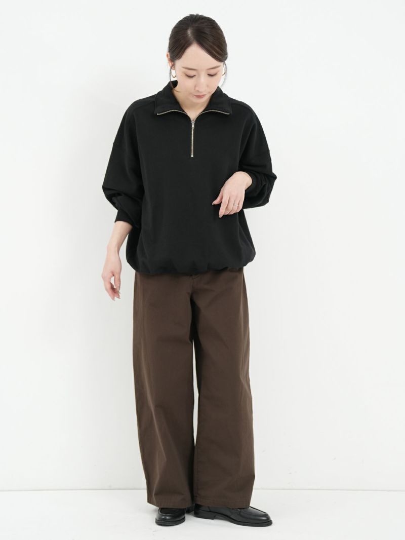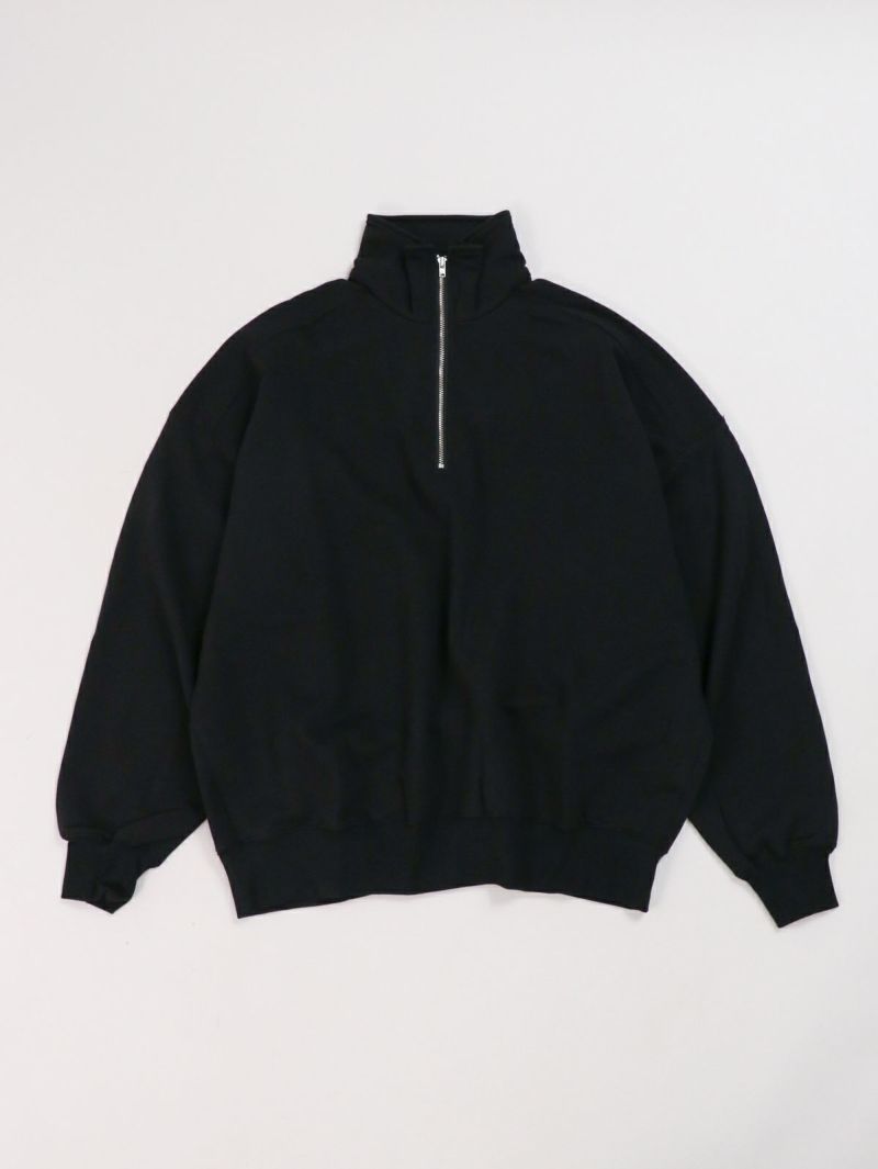 ユニセックスで着れるビックシルエットのハーフジップスウェット。 綿100%で弾力とストレッチ性を兼ね備えてます。また触り心地が良くふっくらとした仕上がりになっております。