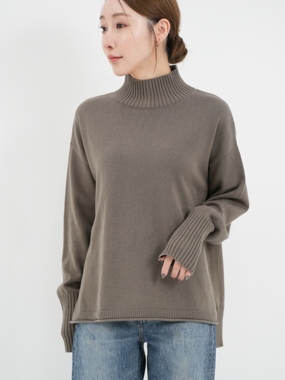 [ mao made / マオメイド ] 異ゲージリブハイネックプルオーバー