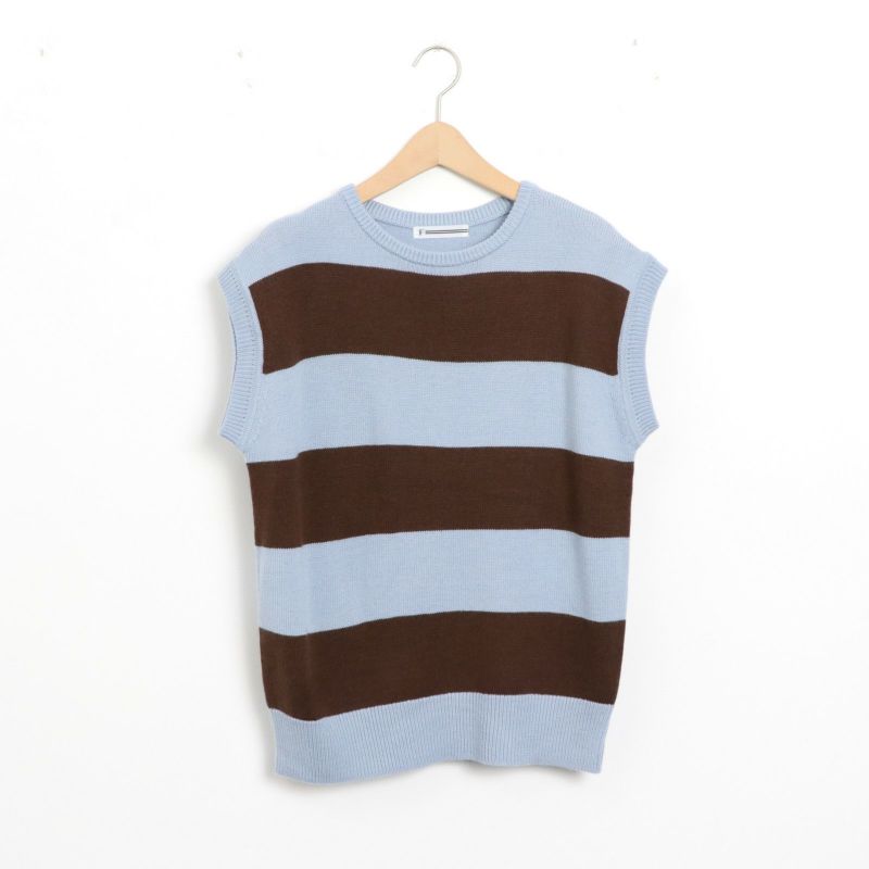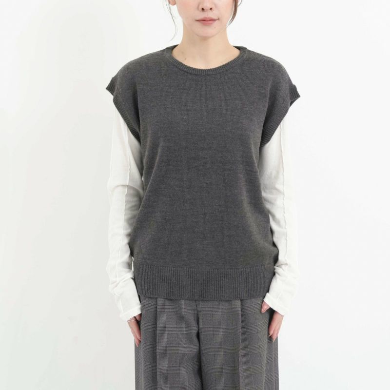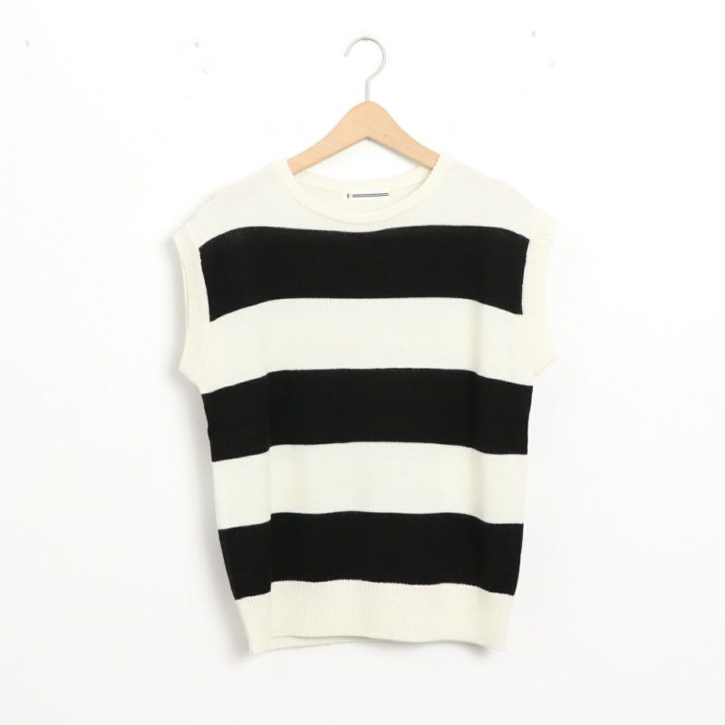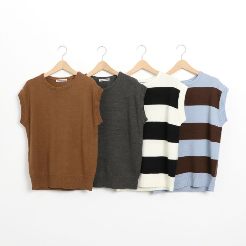 レイヤードスタイルが楽しめるベストとして新登場! 滑らかなタッチが特徴のメリノウール混ニット。さらっとした着心地で春先までご着用いただけます。 ベーシックカラーとコーディネートのポイントになる太ボーダーの4色展開です。
