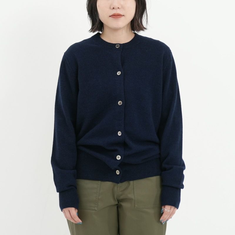 Gallery by ffs オリジナルのニットカーディガン。 軽く柔らかな風合いが特徴で、保温性・保湿性にも優れています。 ベーシックなデザインながら少し着丈が長く、体を綺麗に見せてくれるシルエットがポイント。 デイリー使いのアイテムでも上質感があり、上品なニットウェアに仕上げています。 高品質なエクストラファインラムズウールを使用し、国内のニット工場で一枚一枚丁寧に生産されています。 ボタンを3つ開けて、トップスを見せるスタイリングがおすすめ◎