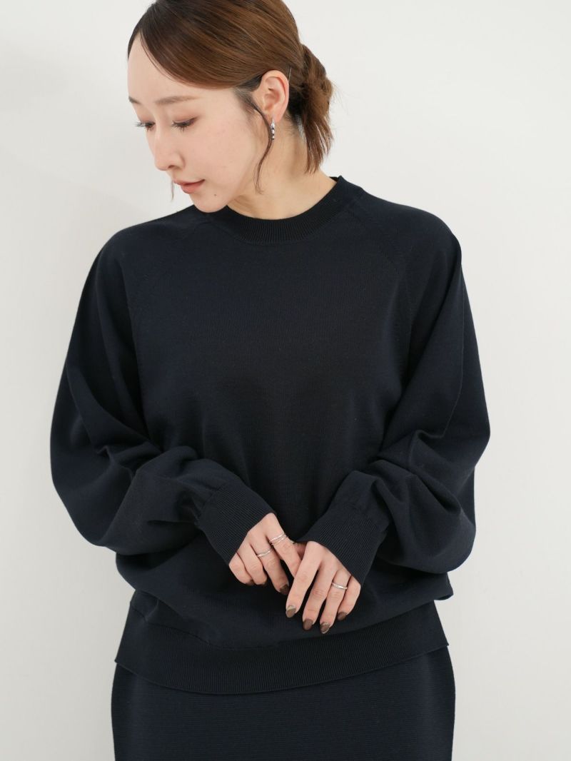 さらっとした表面感の天竺ホールガーメントプルオーバー。 詰まったネックシルエットがシックな印象に。万能に着まわしの効くデザインで、通勤にもおすすめ。同素材のスカートとセットアップでスタイリングできます。