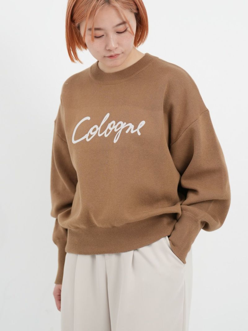 フロントロゴかポイントの春先に活躍するコットンニット。 ロングシーズン活躍し、コットンニットなので着心地も良くホームケア可能。パンツ、スカートスタイル、ボトムスを選ばずに合わせていただけます。