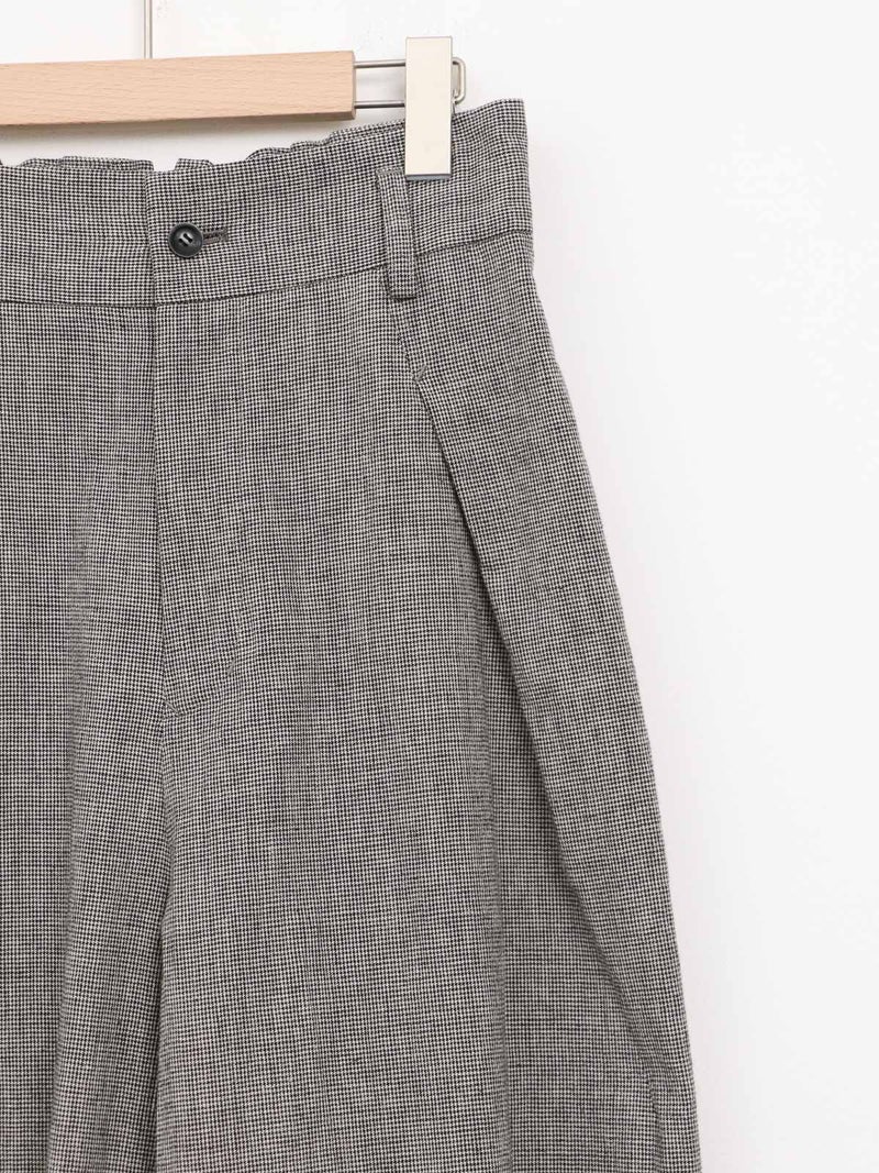 カーヴィーなシルエットが特徴のタックパンツ。 清涼感と通気性に優れたコットンリネン素材で、春夏らしい爽やかな穿き心地です。深いフロントタックがウエスト周りをすっきりと見せ、タックインや、旬の短丈トップスと合わせれば脚長効果も。同生地のLY61-204 千鳥ジャケットとセットアップ着用可能です。
