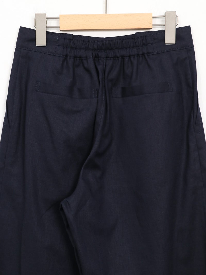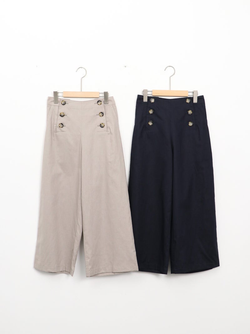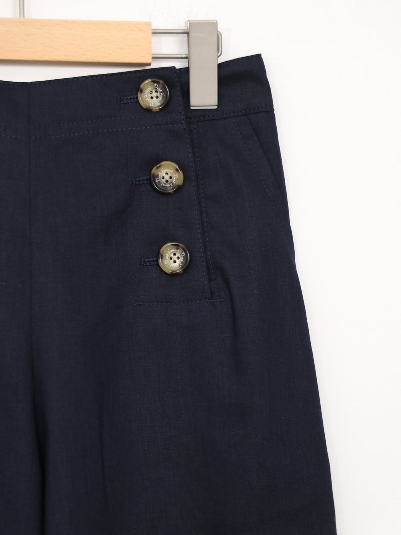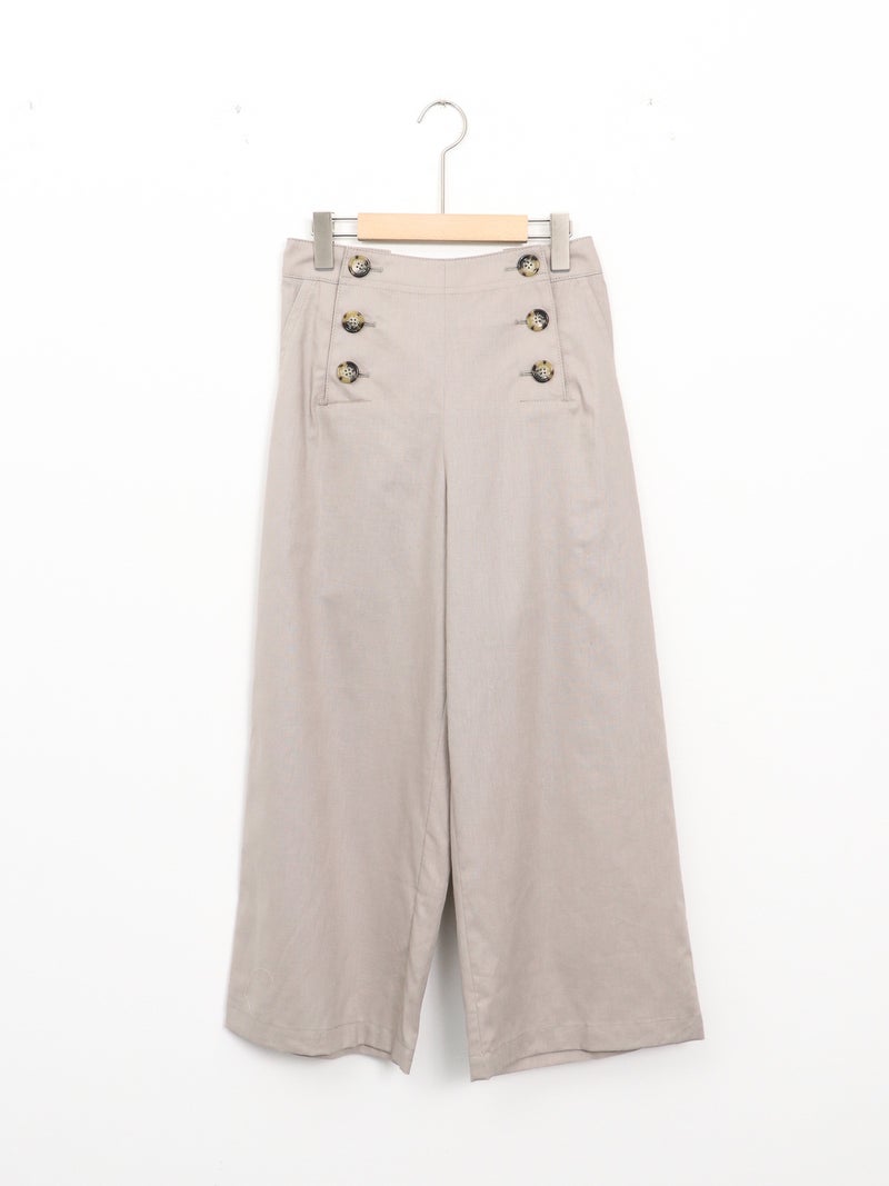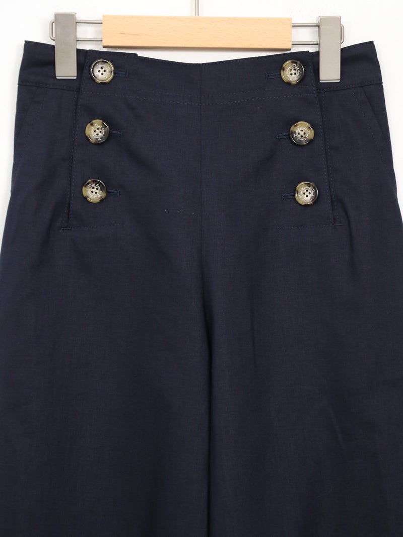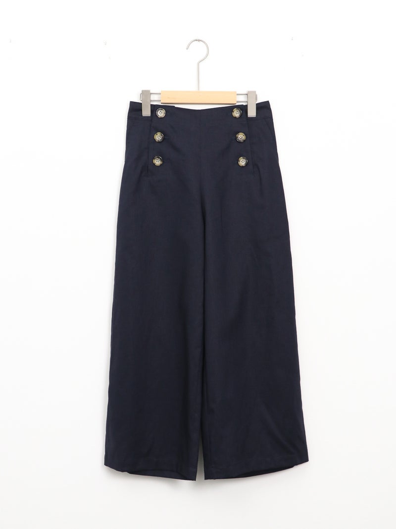 快適な穿き心地が魅力の綿麻マリンパンツ。 軽やかな綿麻素材で涼しく、夏にぴったりの一本。フロントボタンがアクセントになり、ハイウエストでタックインもバランスよく決まります。後ろゴム仕様で楽な穿き心地に加え、くるぶし丈のストレートシルエットですっきりとした印象に。カジュアルからきれいめまで幅広く活躍します。