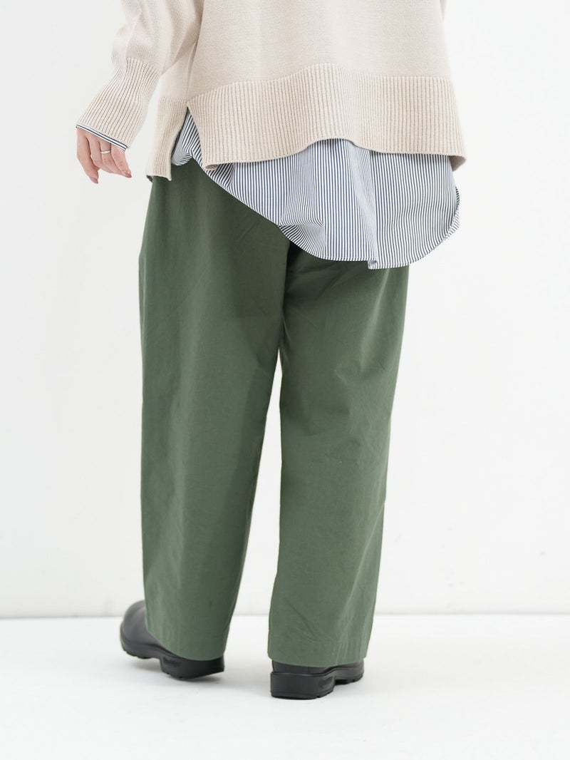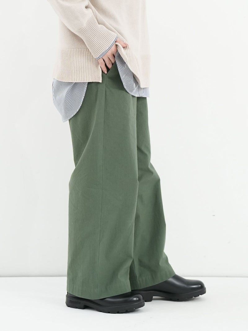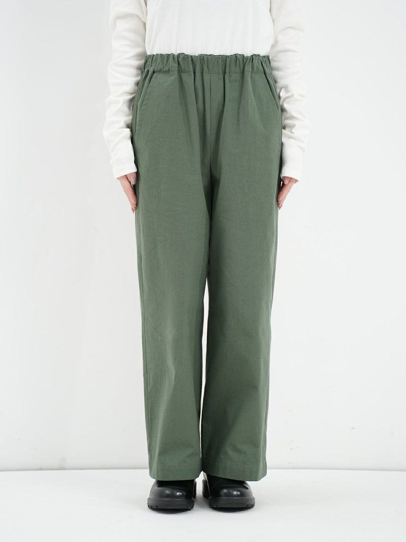 定番人気の馬布パンツ。 あえて荒々しい原糸を使用することでヴィンテージ感のある風合いを生む馬布コットンで仕立てられています。ナチュラルなしわ感のほか、透け感が気にならない密度がつまった丈夫な厚みがあります。ウエストゴムでシルエットは程よくストレート。トップスを選ばずに合わせられるアイテムです。