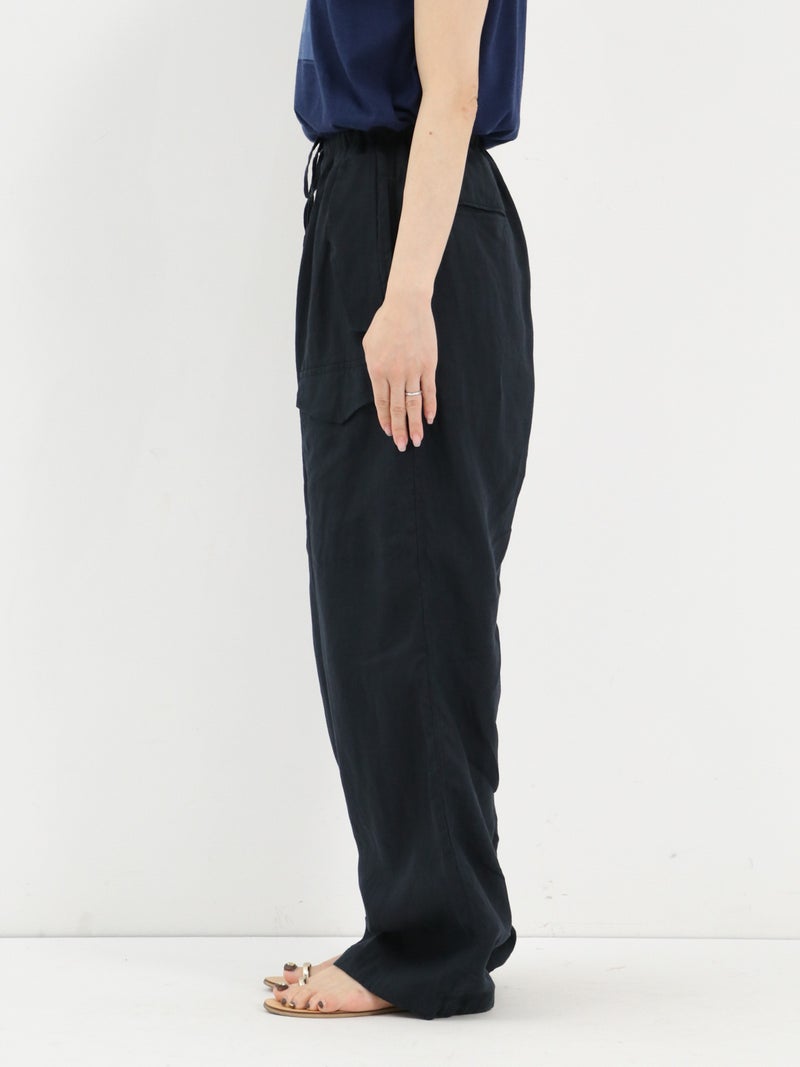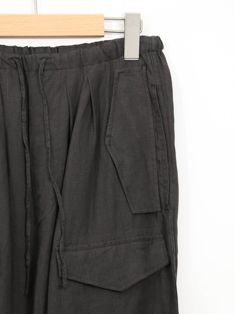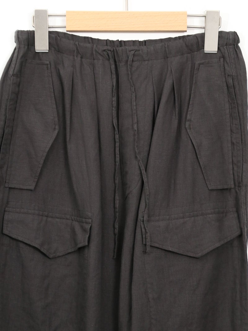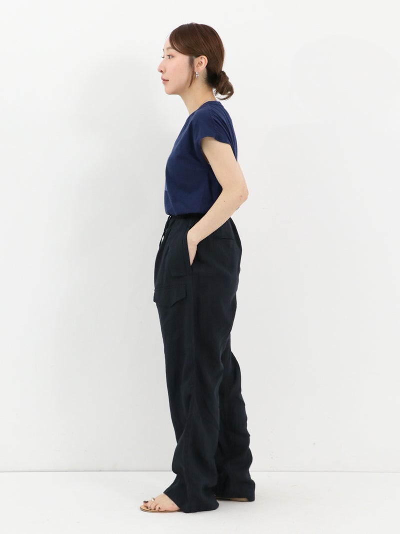 ハードな印象のカーゴパンツを、やわらかなリネン素材で上品に再構築した一本。今季はサイズ感を見直し、よりすっきりとしたシルエットにアップデートしました。リネンならではの涼しくドライな肌触りで、暑い季節も快適に着用可能。カジュアルからクリーンな着こなしまで対応する、大人のための一本です。