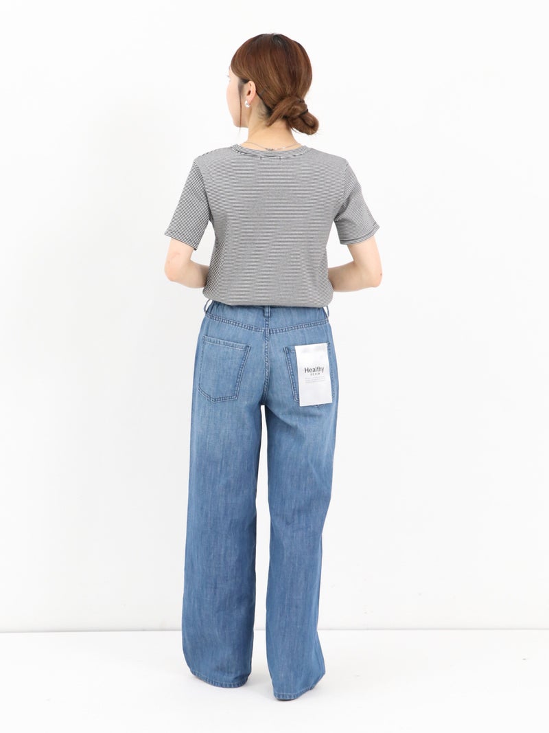 【 Healthy DENIM / ヘルシーデニム 】 日本国内でもトップクラスの加工技術を持つ岡山県の加工工場監修のデニムブランド。ライフスタイルや気持ちも"Healthy"になれるディリーベーシックウェアを提案。国内メーカーでの生地開発や、日本女性に合うよう計算されたこだわりのフィット、ヴィンテージ感のある表情をプラスしてくれるハイレベルな加工技術で商品づくりに取り組み、履き心地抜群の上質でコストパフォーマンスの良いデニムを取り揃えています。