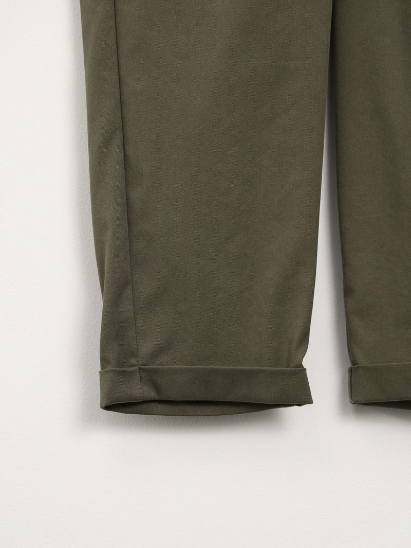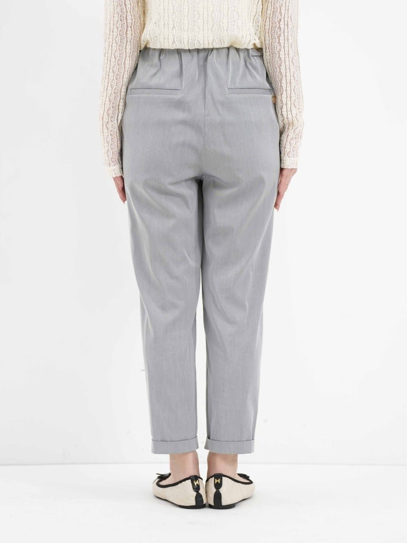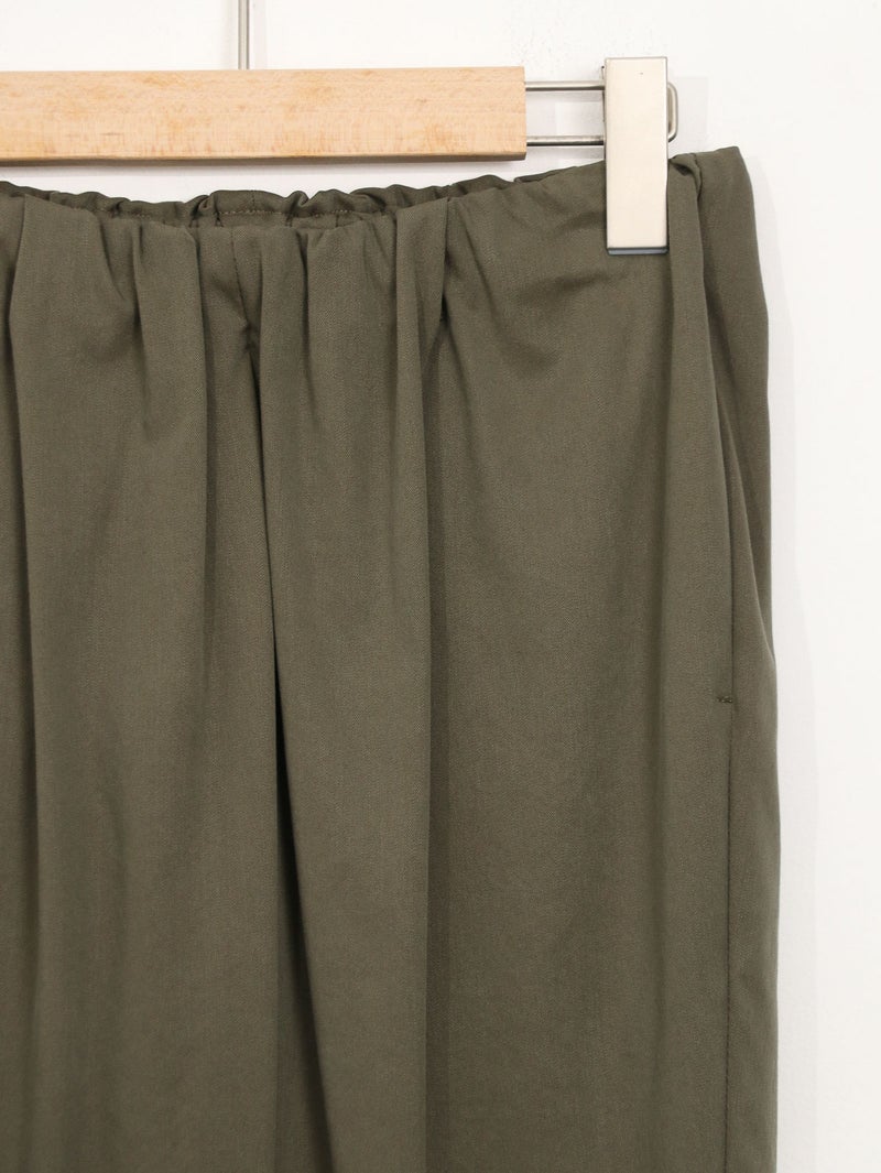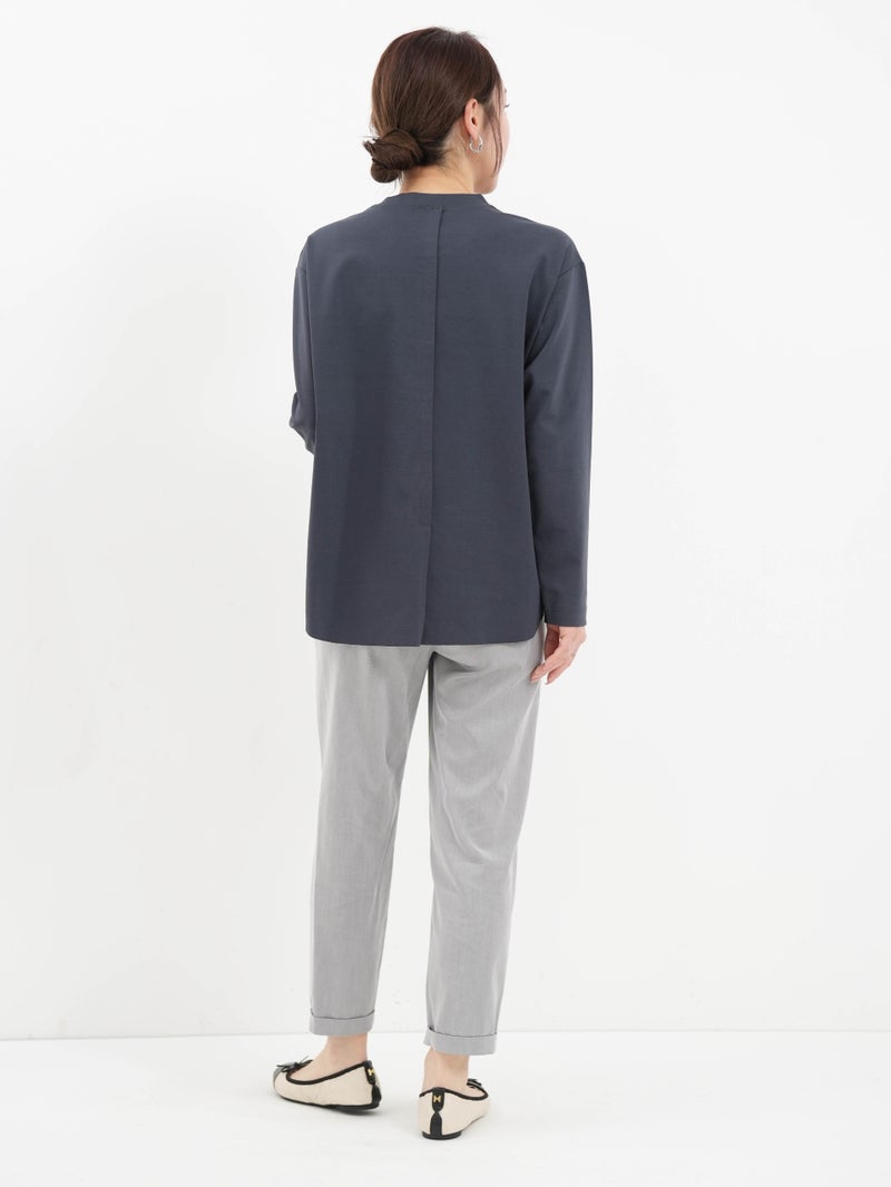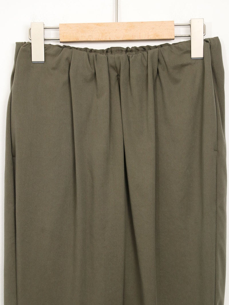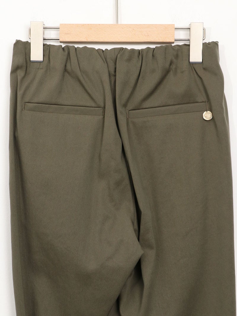 MARECHAL TERRE(マルシャル テル)定番のギャザーイージーパンツ。 ウエストは平ゴム仕様で、穿き心地はリラックス。両サイドにポケットを備え、デイリーに使いやすい一本です。足首がすっきり見えるクロップド丈に、ロールアップデザインが程よいアクセント。上品な光沢感と落ち感のある素材、きれいなテーパードラインが、イージーパンツながらきちんとした印象を演出します。カジュアルにもきれいめにも馴染み、オンオフ問わず活躍。一度穿くと手放せなくなる、バランスの取れた定番アイテムです。